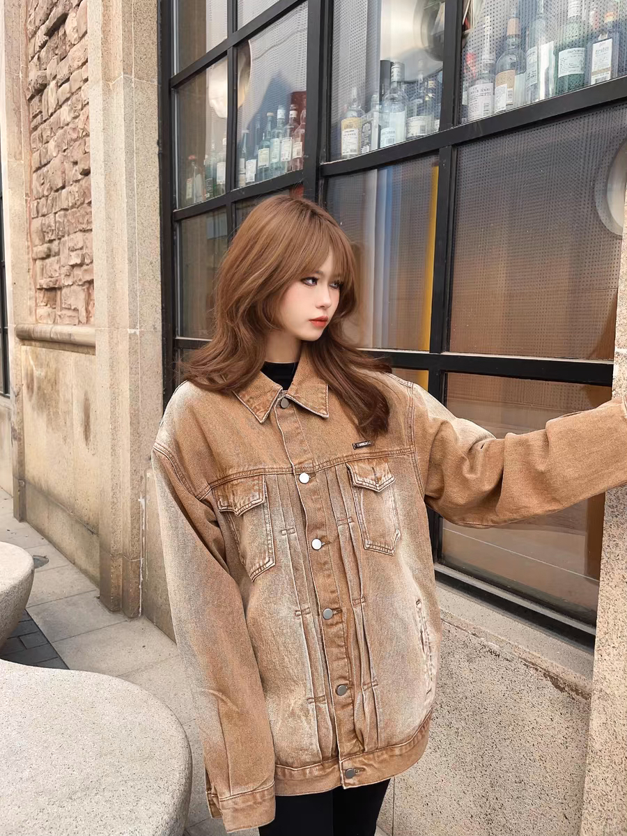 本篇笔记关联了DARKCIRCLE 欧美水洗做旧渐变翻领薄款牛仔夹克 男女同款 DARK-DK0017 咖等商品,为用户提供真实的使用体验和购买参考。