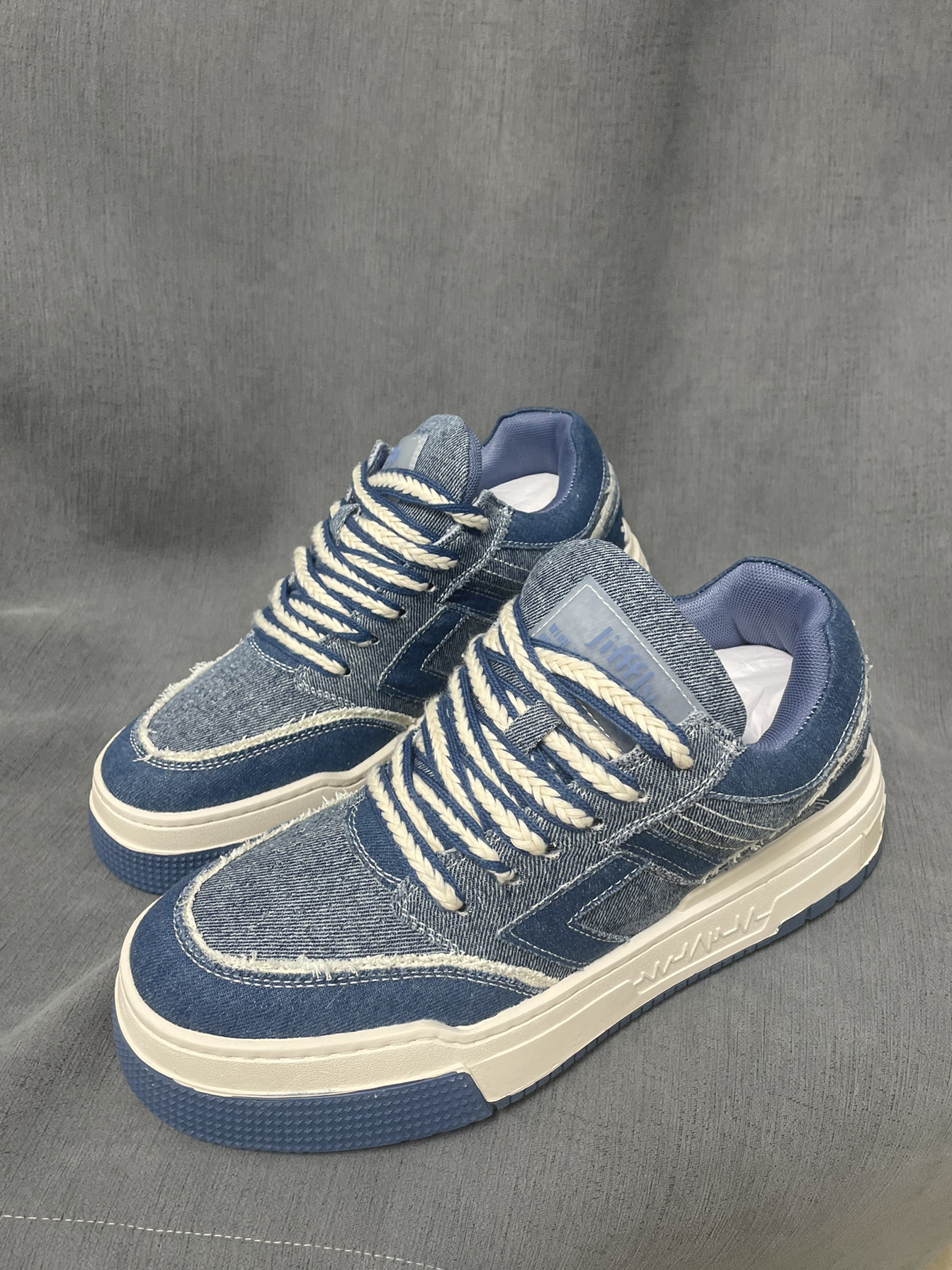 👟:Jifffly Air Cushion系列 面包鞋 复古内增高爆米花气垫牛仔低帮板鞋 男女同款 丹宁蓝 这双鞋子增高5cm不是梦! 百元平价好鞋来咯! 鞋子外观配色采用丹宁蓝配色进行打造,配色十分清新好看,给人不错的视觉感受! 鞋子设计方面,采用近几年比较流行的版型设计,双层加厚橡胶鞋底具备一定的增高效果,加宽的粗鞋带也给整体鞋型增添了些许大气,此款休闲百搭,舒适耐磨。 另外值得一提的是,鞋子...