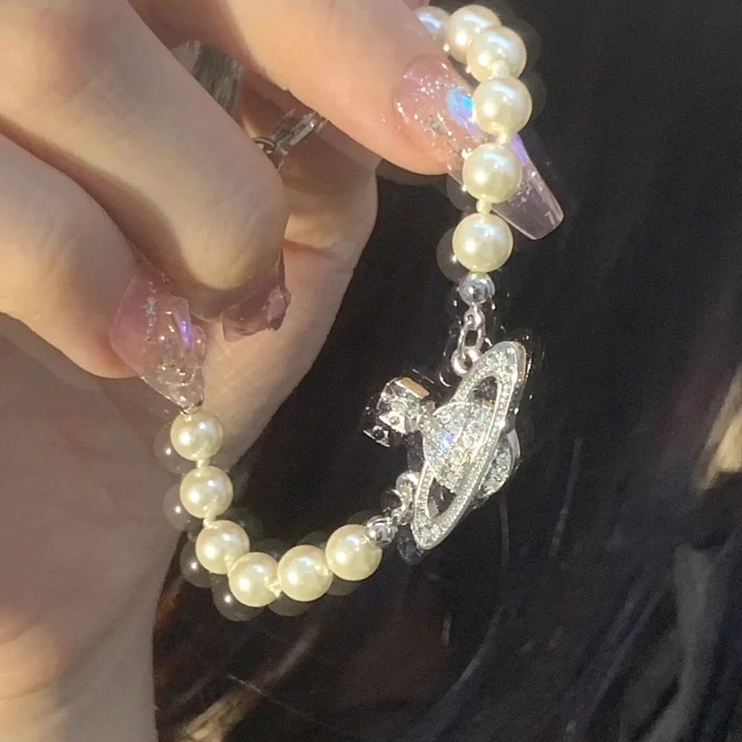 哇唔这珍珠手链质感也太绝了叭! 珍珠十满钻的土星🌟 独特的设计温柔又酷酷的! 质感杠杠的很有分量,👏还吼百搭! 建议通勤上班族人手一只!真的很好搭配衣服🐛 图源网络侵删