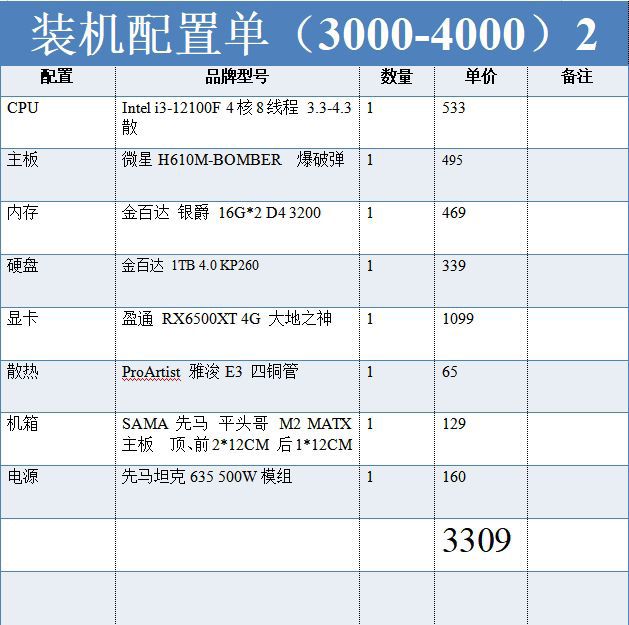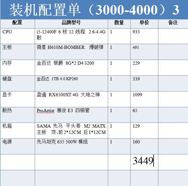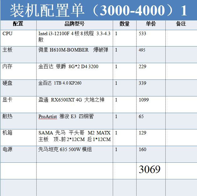 【腾讯文档】DIY电脑配置推荐:3000-4000价位性价比电脑推荐