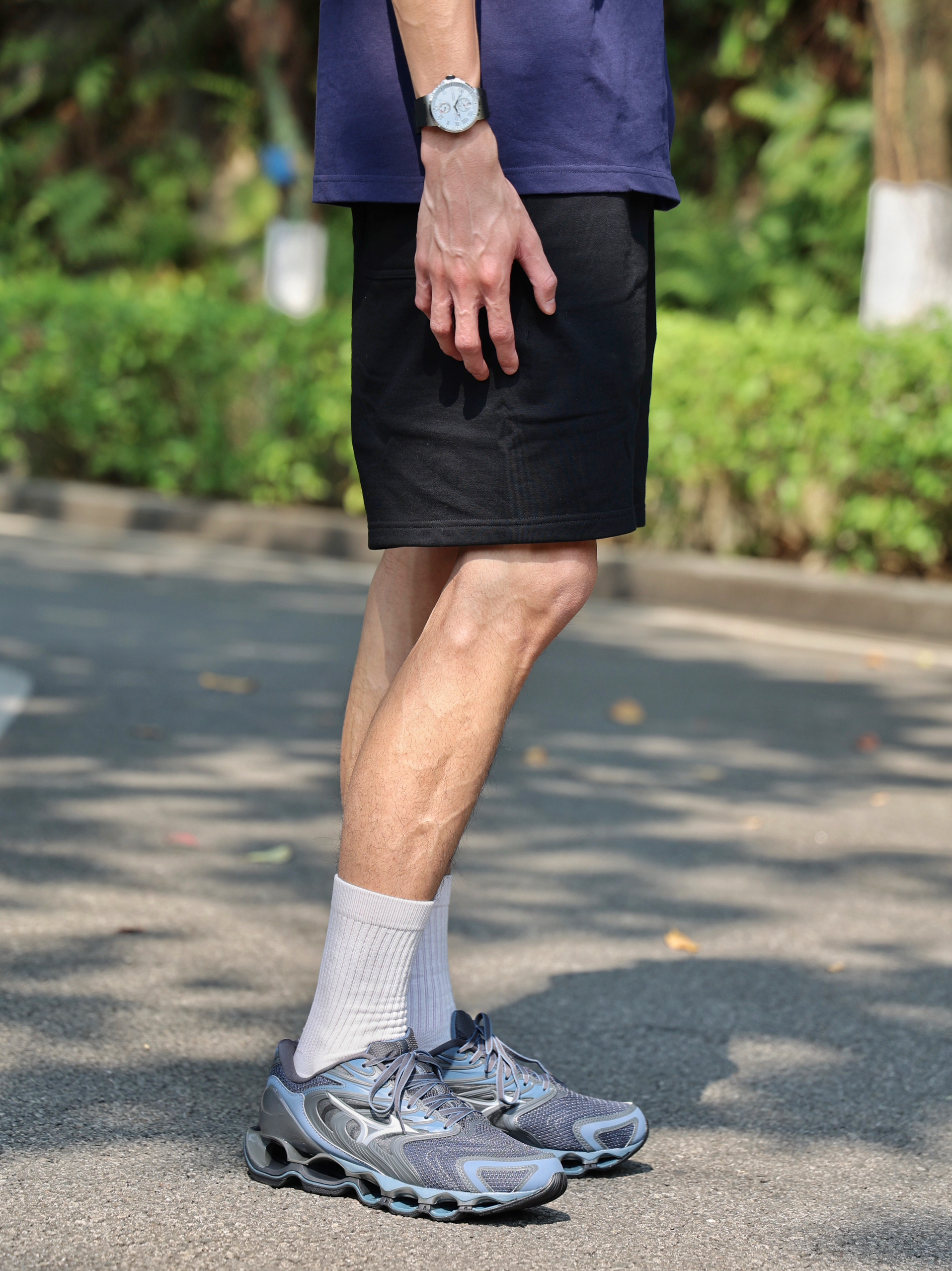 今天提前来预热一下夏季穿搭,主打的就是一个清凉。今天这套穿搭比较注重色系的呼应,首先衣服选择的是一件藏青色的T恤,搭配一条黑色短裤。 鞋子同样选择的是一双黑色和藏青色混色的跑步鞋,值得一提的是这双鞋子是一双来自品牌Mizuno美津浓的Wave Prophecy 12S系列专业跑鞋!美津浓是一个来自日本的百年老品牌了,创始人把匠心独具的精湛工艺延续到了各个领域。不仅是品牌经典的Infinit...