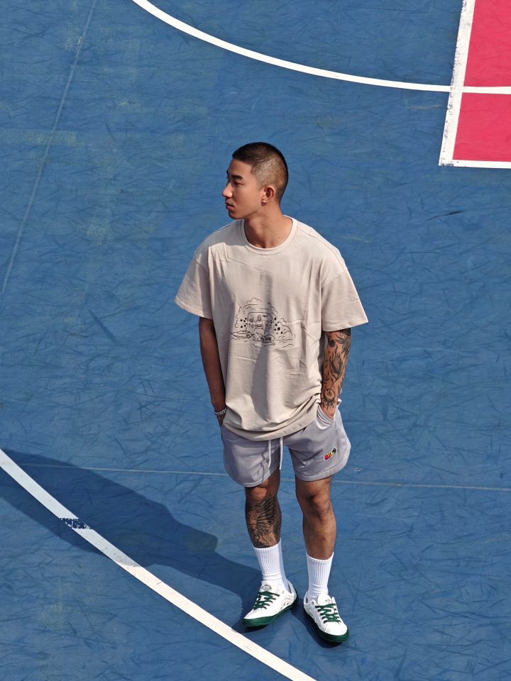 男生这样穿帅惨 简约美式穿搭 上衣印花也很有档次 因为上衣和裤子都不要太亮眼 肯定要黑皮来凑呀 瞬间感觉拉满啦 👔:CH4_Methane 🩳:UH