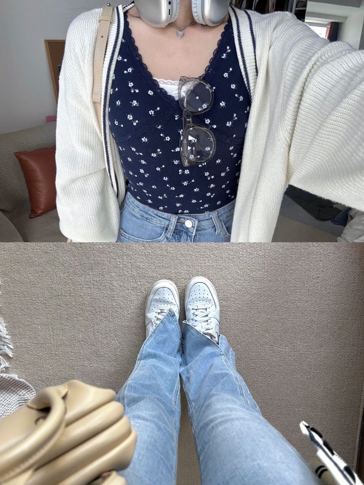 春天当然离不开小碎花! - look.1 薄荷蓝真的好显白!软软糯糯的一件针织开衫 里面碎花吊带很点睛 look.2 黑色和小碎花也是美得嘞 搭配粉色裤子 很少女的一套! look.3 海鸥的这件碎花我真的会一直夸 春夏都能穿的 look.4 藏蓝色的蕾丝碎花百搭减龄又显白 look.5 奶蓝色碎花超嫩的一件 叠穿单穿都好看 嘻嘻