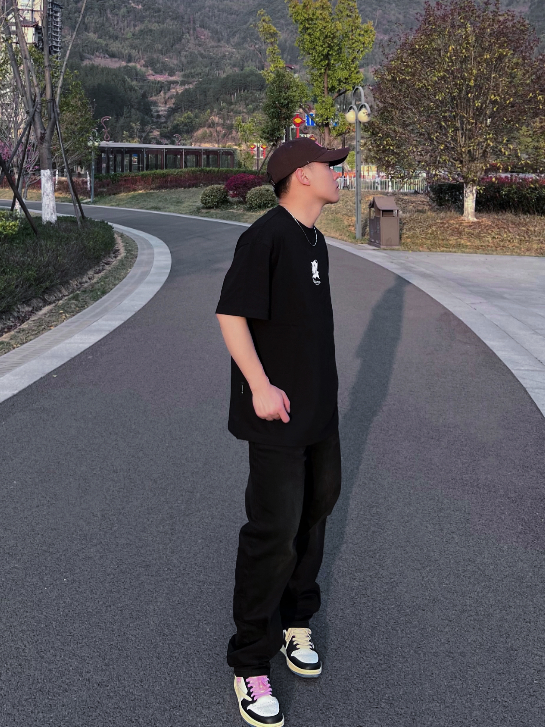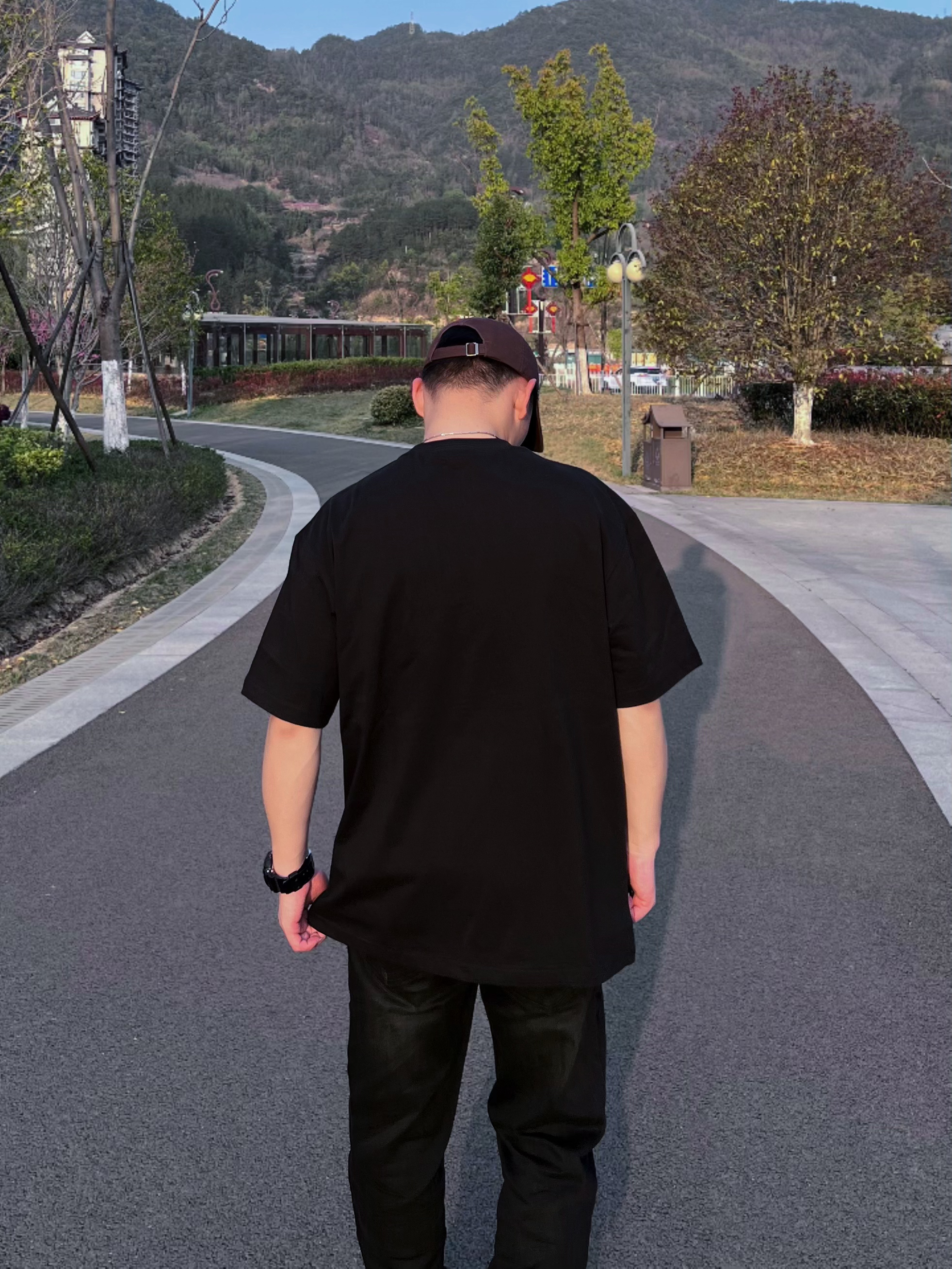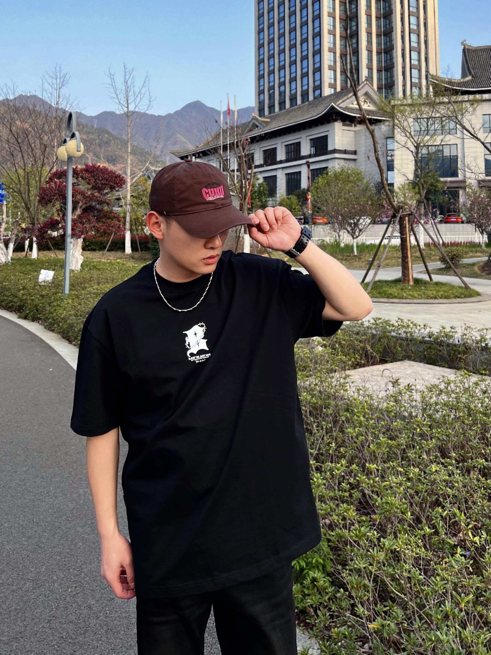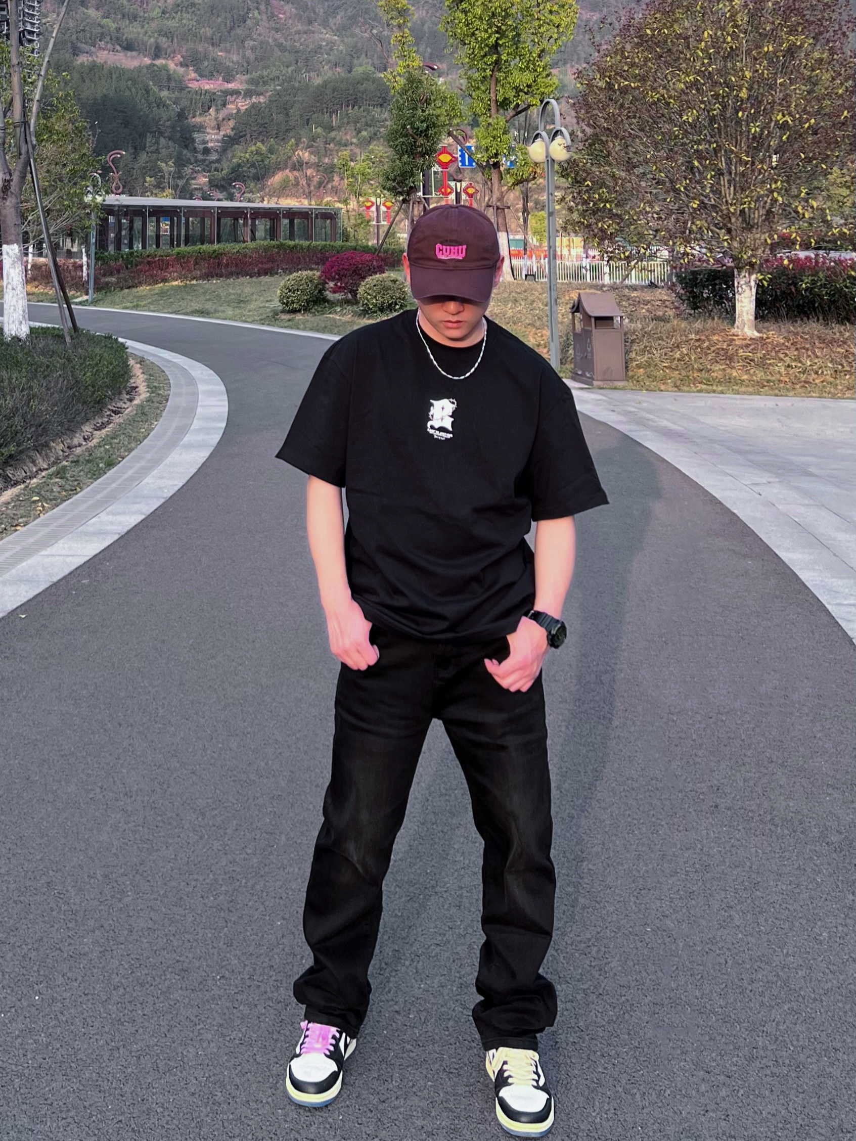 哈喽,兄弟们黑色系有时候很酷,今天带来的是高街风格的穿搭分享,一起康康👀吧! 😎搭配颜色/单品:黑色短袖/黑色牛仔/板鞋/简单项链一条/帽子🧢,这套一眼看去就是高街风格。 😎特点:短袖版型属于宽松的,这种重磅材质的短袖会显肩宽头小,裤子显瘦。 👔: BJHG 😎参考尺码:173/66kg L 😎风格建议:高街/休闲/黑色系