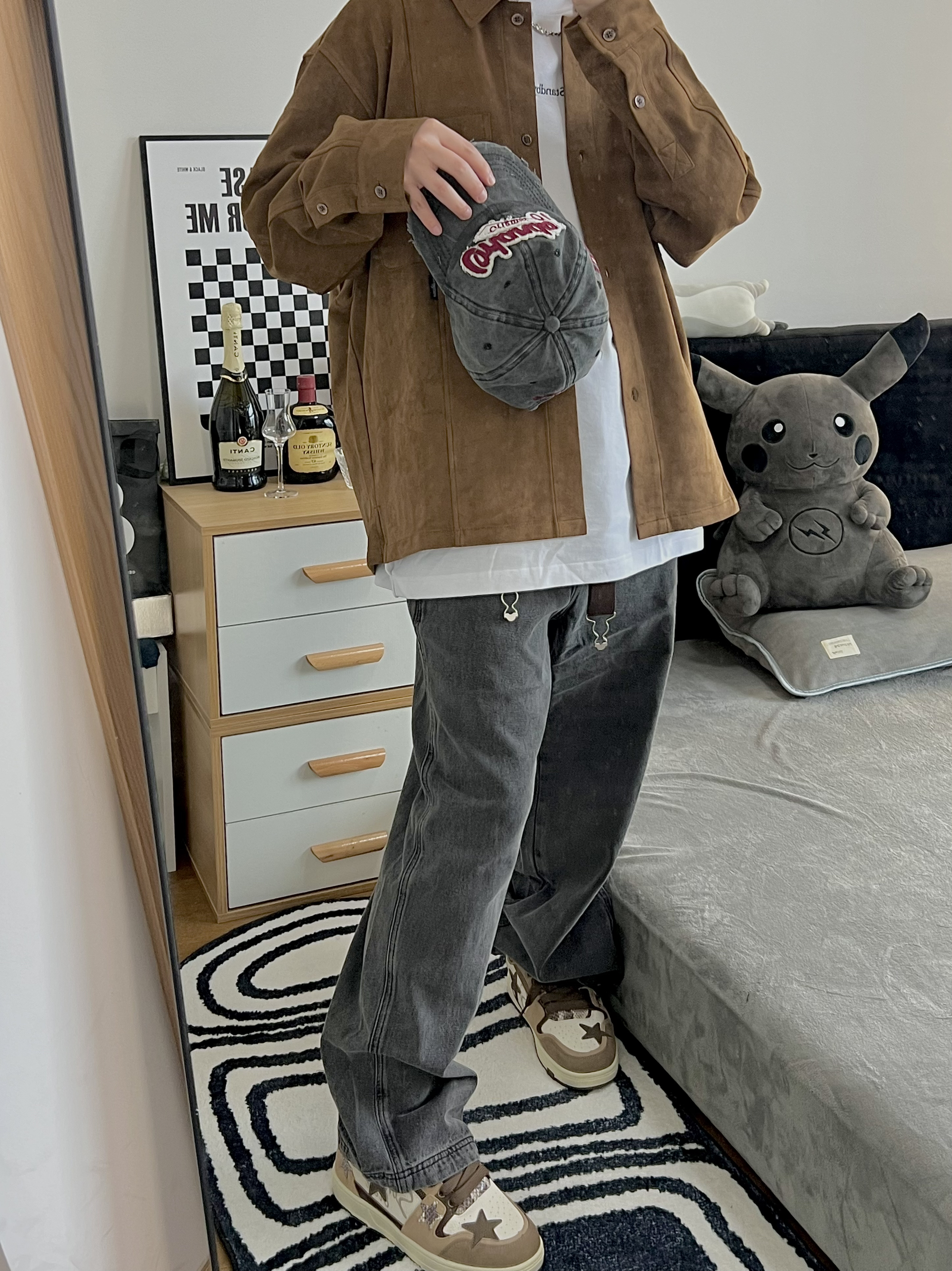 🔅我是小新,每天给你分享不一样的穿搭! 白色内搭T加上一件麂皮绒的薄外套 一顶做旧复古牛仔鸭舌帽🧢 春天就这样子出门 很清爽 很干净 搭配一条做旧水洗的牛仔背带裤 但是我把它当堆堆裤来穿 前面挂着两条背带绳 更🈶️风味 我的生活灵感库 再配上一双棕的星星鞋✨ 小众设计感好鞋 上下呼应 这身搭配不挑性别 喜欢的都可以去尝试一下哦! 👕白T:INXX 👕外套:PSO Brand 👖PSO Bran...
