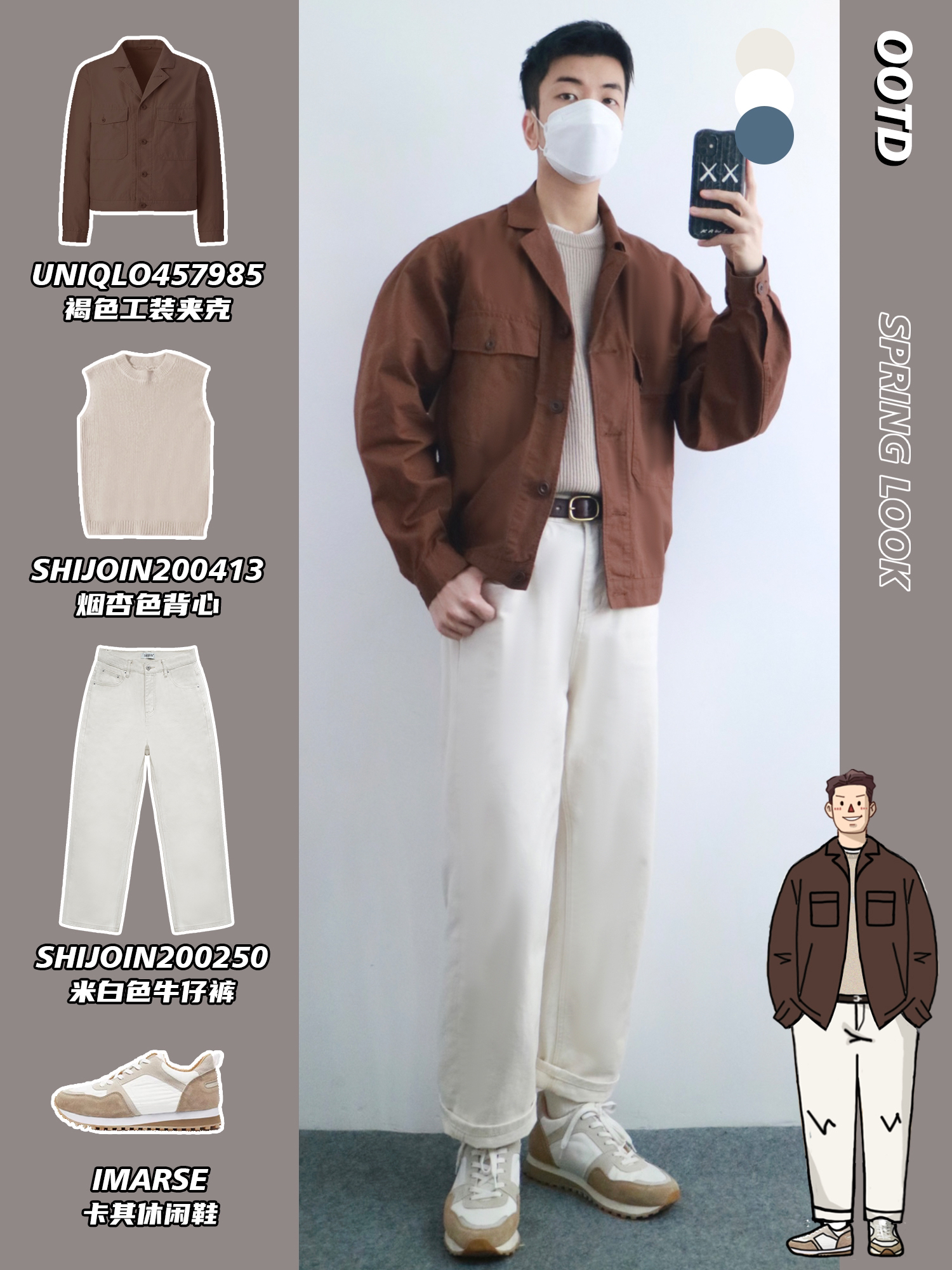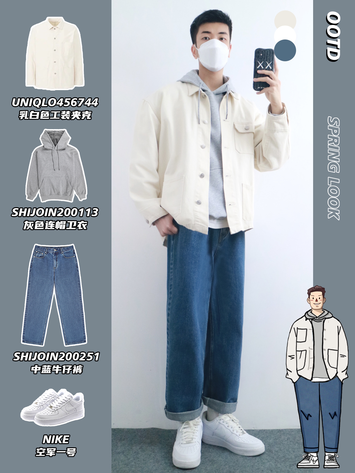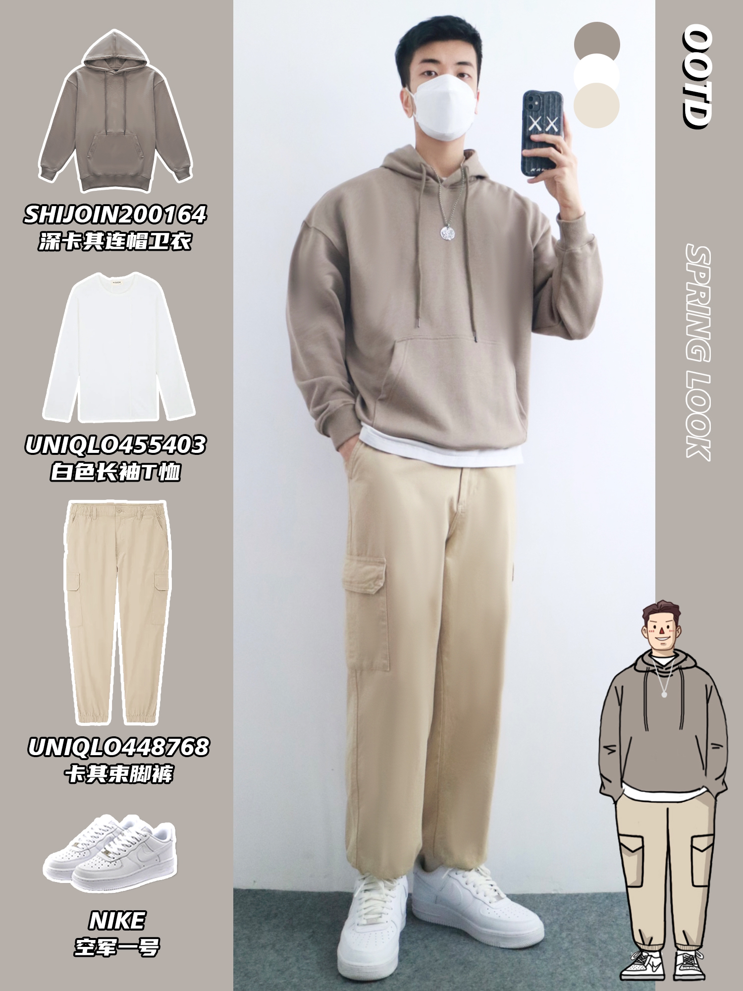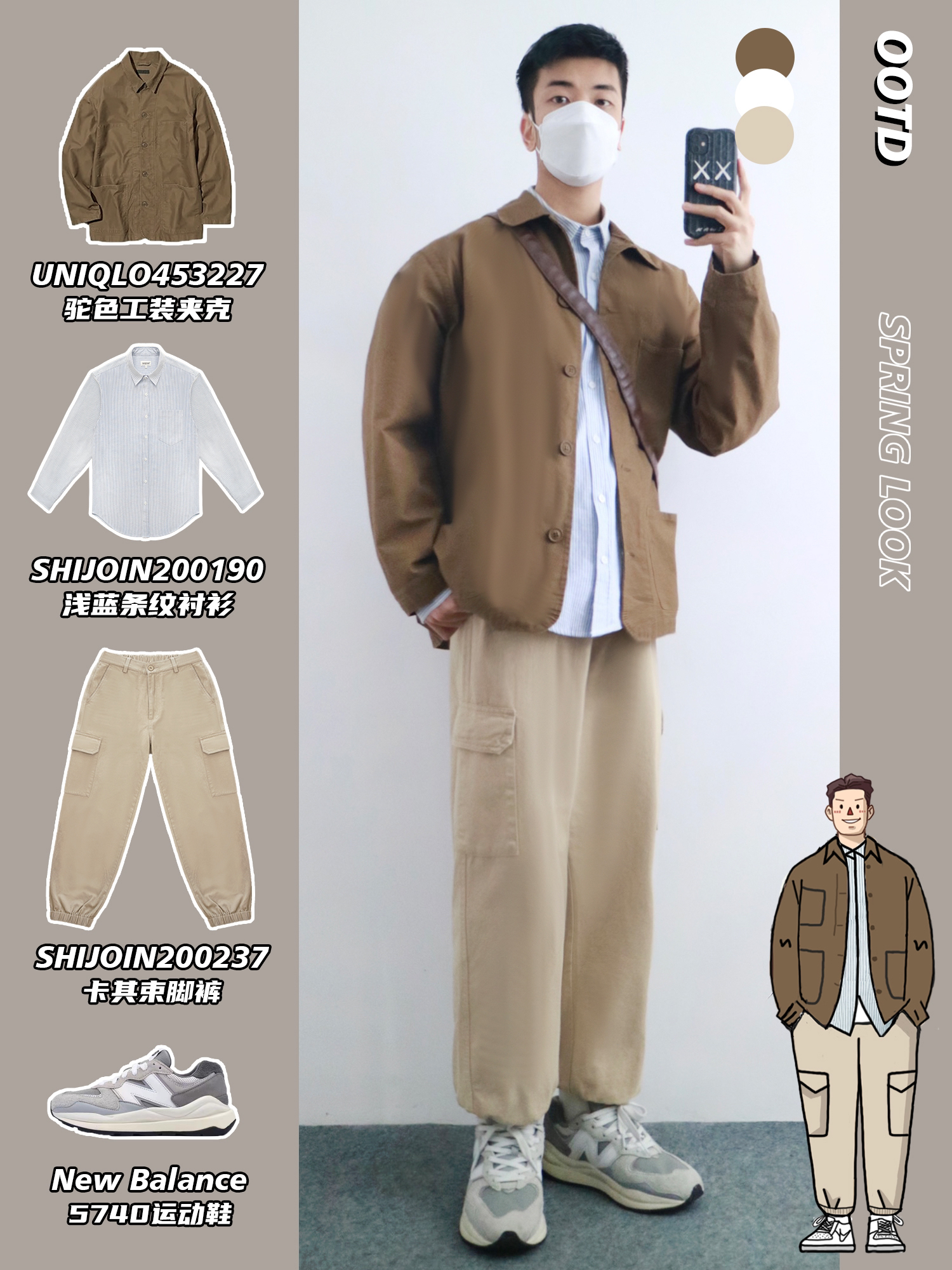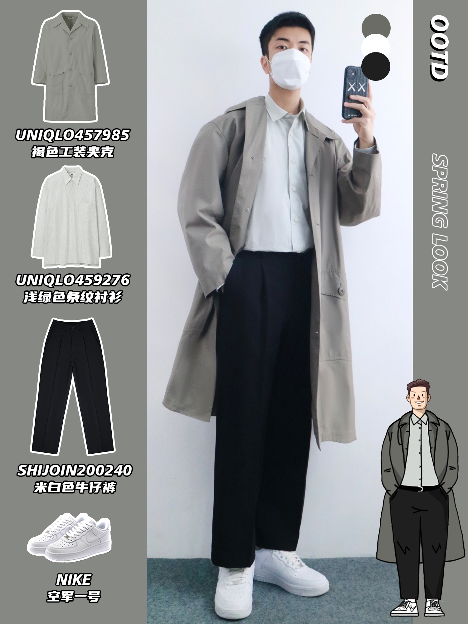 hello,穿衣显瘦脱衣有赘肉的小梁🙋来了! 春季的穿搭就要干干净净🧼,让你好感倍增 清爽不油腻的搭配给人舒服的感觉🫧 本期小梁分享5️⃣套优衣库工装穿搭 干净帅气的男生谁不爱呢⁉️ - look1️⃣ 深卡其连帽卫衣+白色T恤+卡其束脚裤 look2️⃣ 乳白色工装夹克+灰色连帽卫衣+中蓝牛仔裤 look3️⃣ 黑色休闲夹克+烟杏色背心+白色牛仔裤 look4️⃣ 铅灰色风衣+浅绿色条纹衬衫+黑...