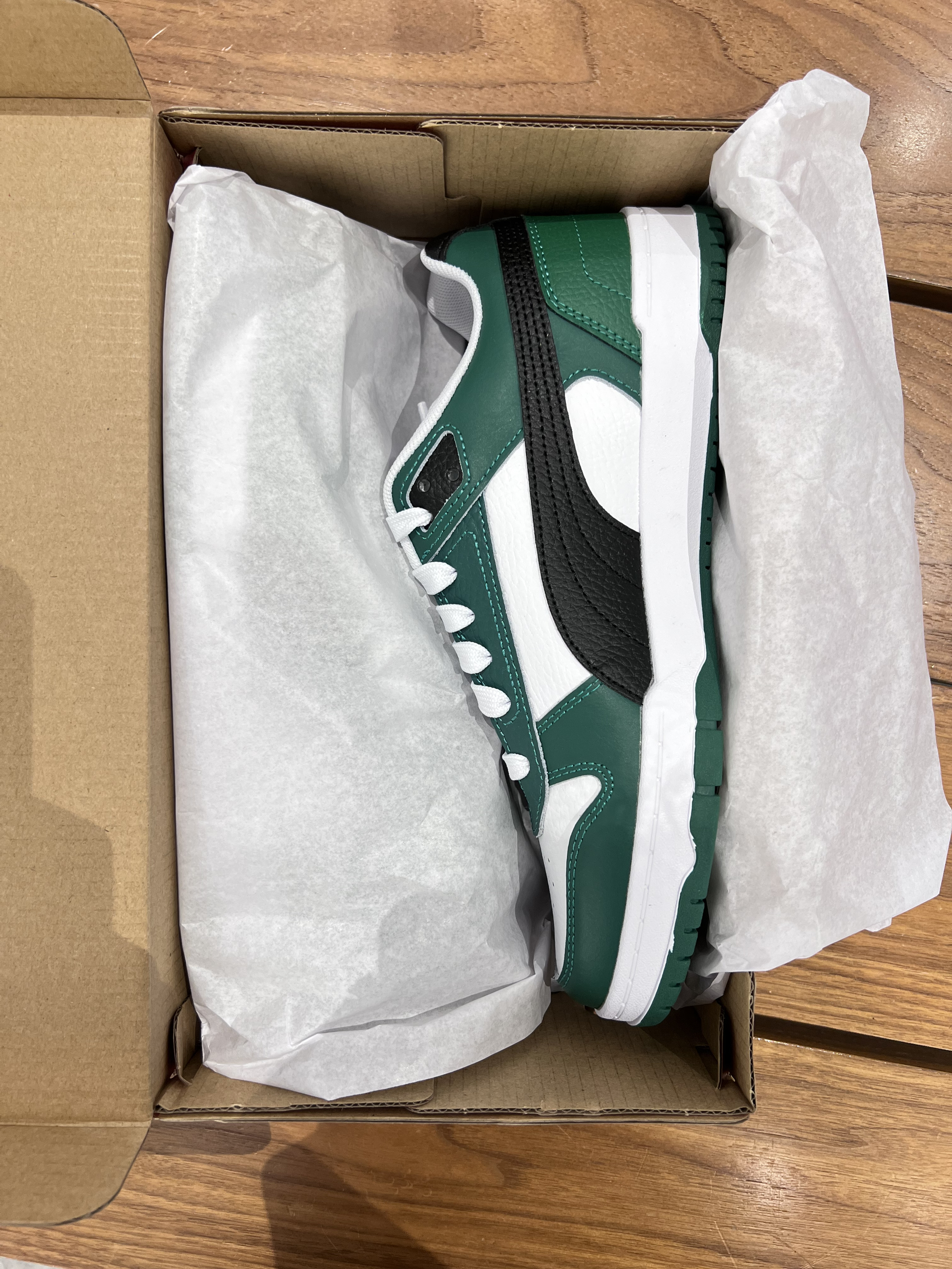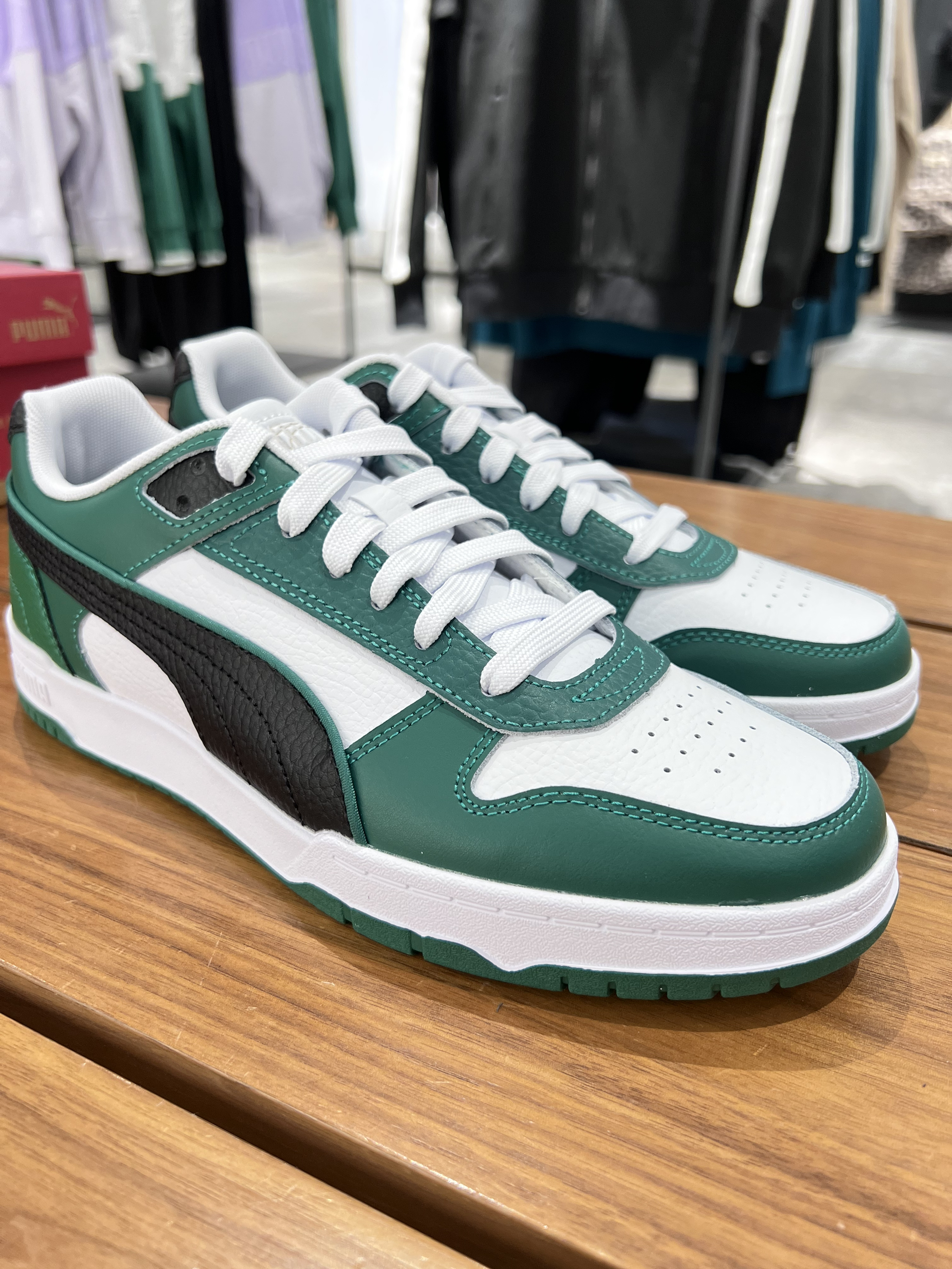 今日份好鞋分享🎉 Puma RBD Game绿白黑 作为Puma熊猫dunk新款配色真的无可挑剔的好看 整体的绿白黑,简单又不失设计关键细节满分💯 这个清新脱俗的颜色很适合这个春天还有夏天❗️ 鞋面没个颜色部位皮脂都不同,鞋底也有白蓝颜色 脚感舒服鞋款好看而且还是未被发现的颜值好鞋 趁现在这个价格还阔以还不快冲吗? 这里是伤心黑灯的挖掘宝藏鞋款✌️
