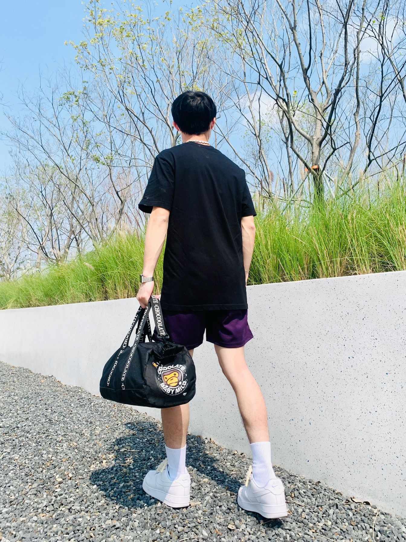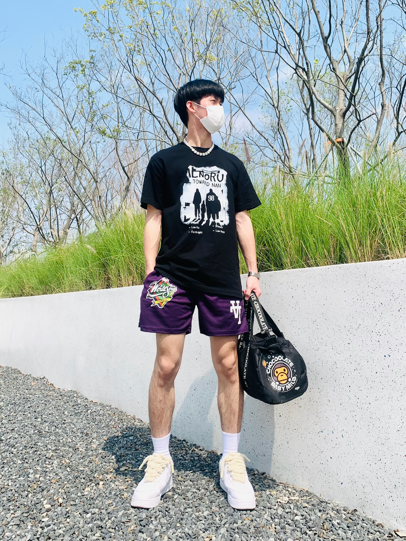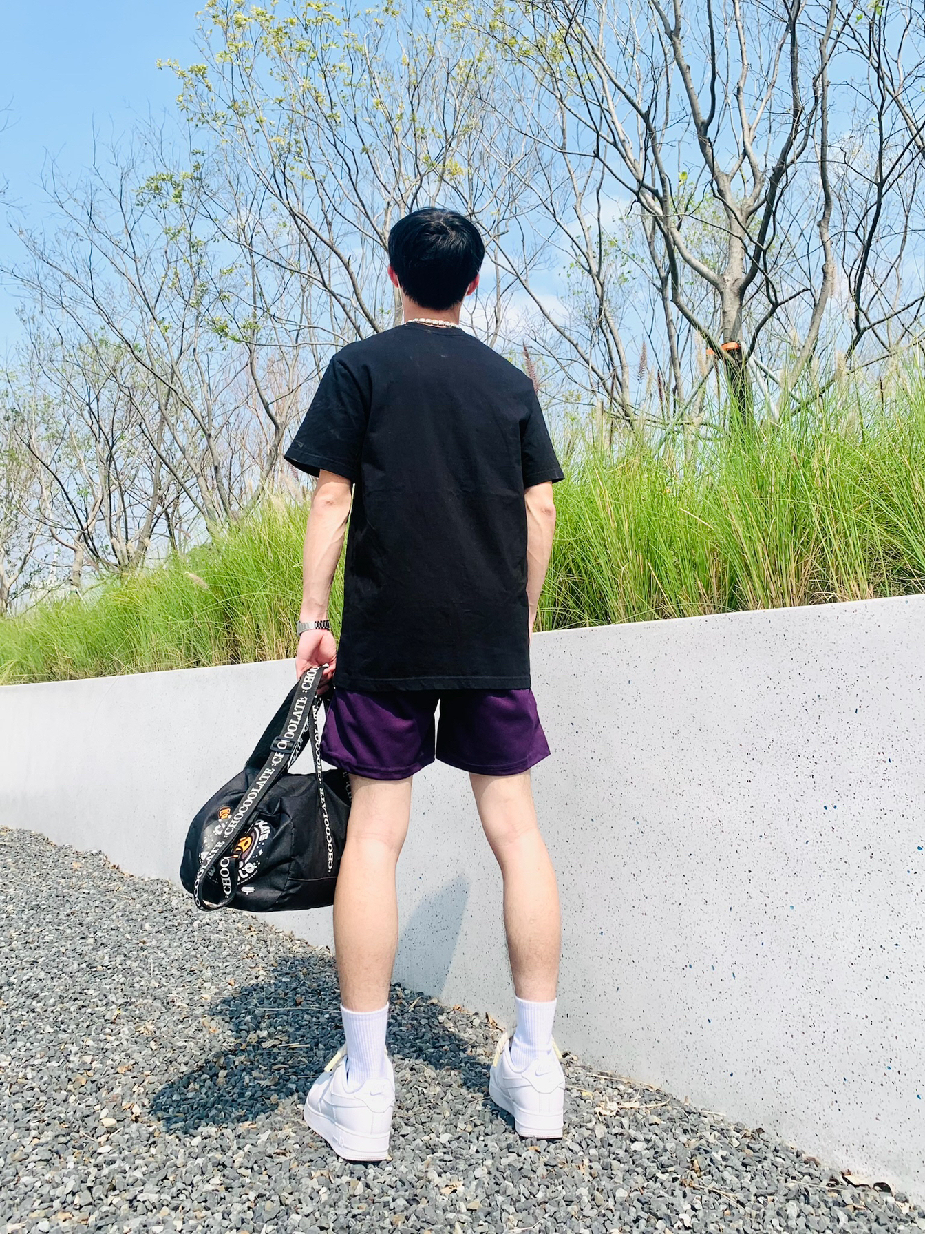 今天穿搭分享⬆️ 背影印花短袖➕⬇️字母印花美式短裤➕⚪️空军纯白搭配简直是夏天的首选,短袖我来先来穿 👕: 朝南工作室 🩳: IMA硬汉➡️tb🔍 👟:Nike Air Force 1 ⌚️:Casio