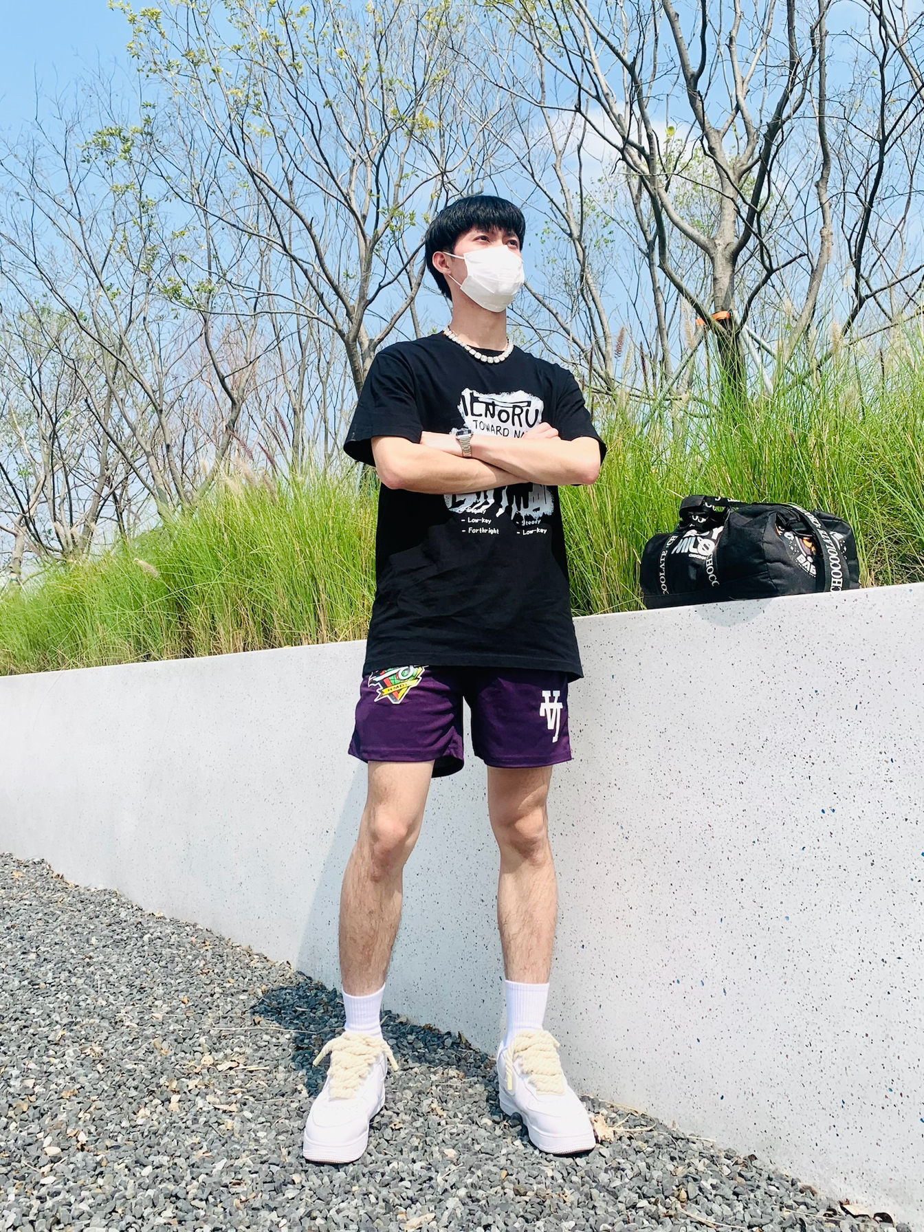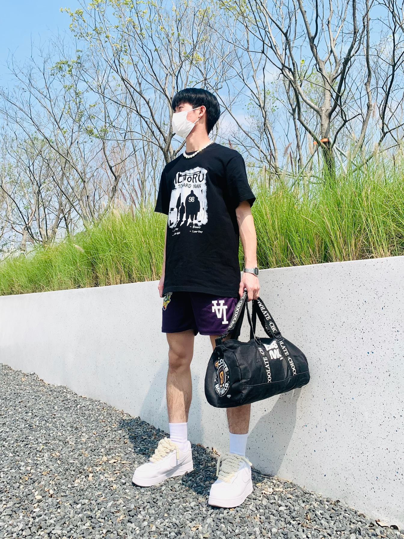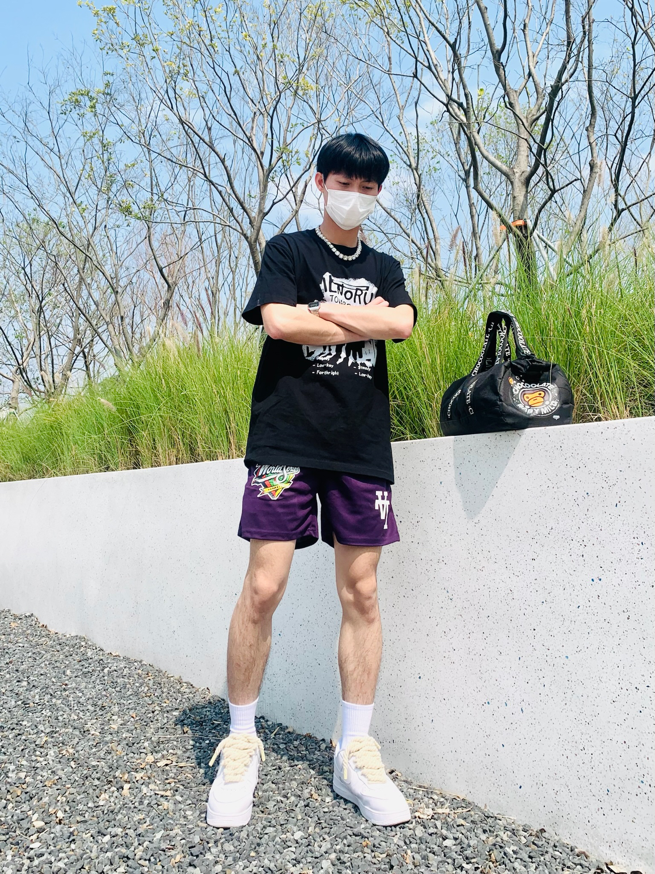 今天穿搭分享⬆️ 背影印花短袖➕⬇️字母印花美式短裤➕⚪️空军纯白搭配简直是夏天的首选,短袖我来先来穿 👕: 朝南工作室 🩳: IMA硬汉➡️tb🔍 👟:Nike Air Force 1 ⌚️:Casio
