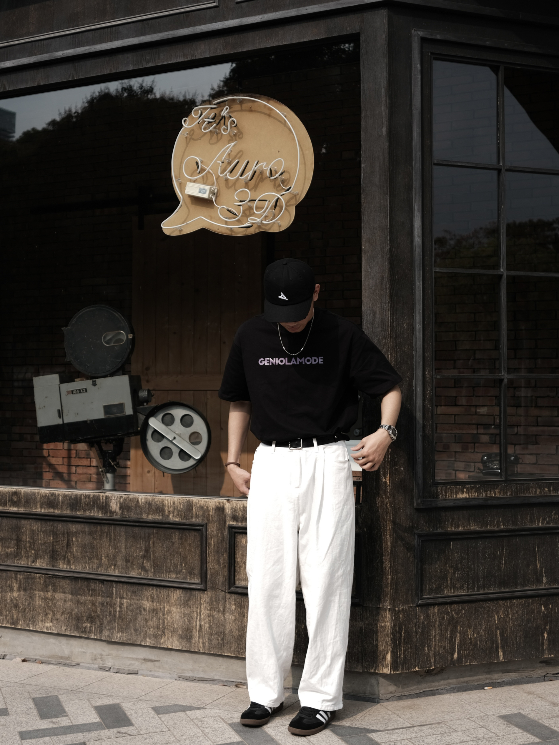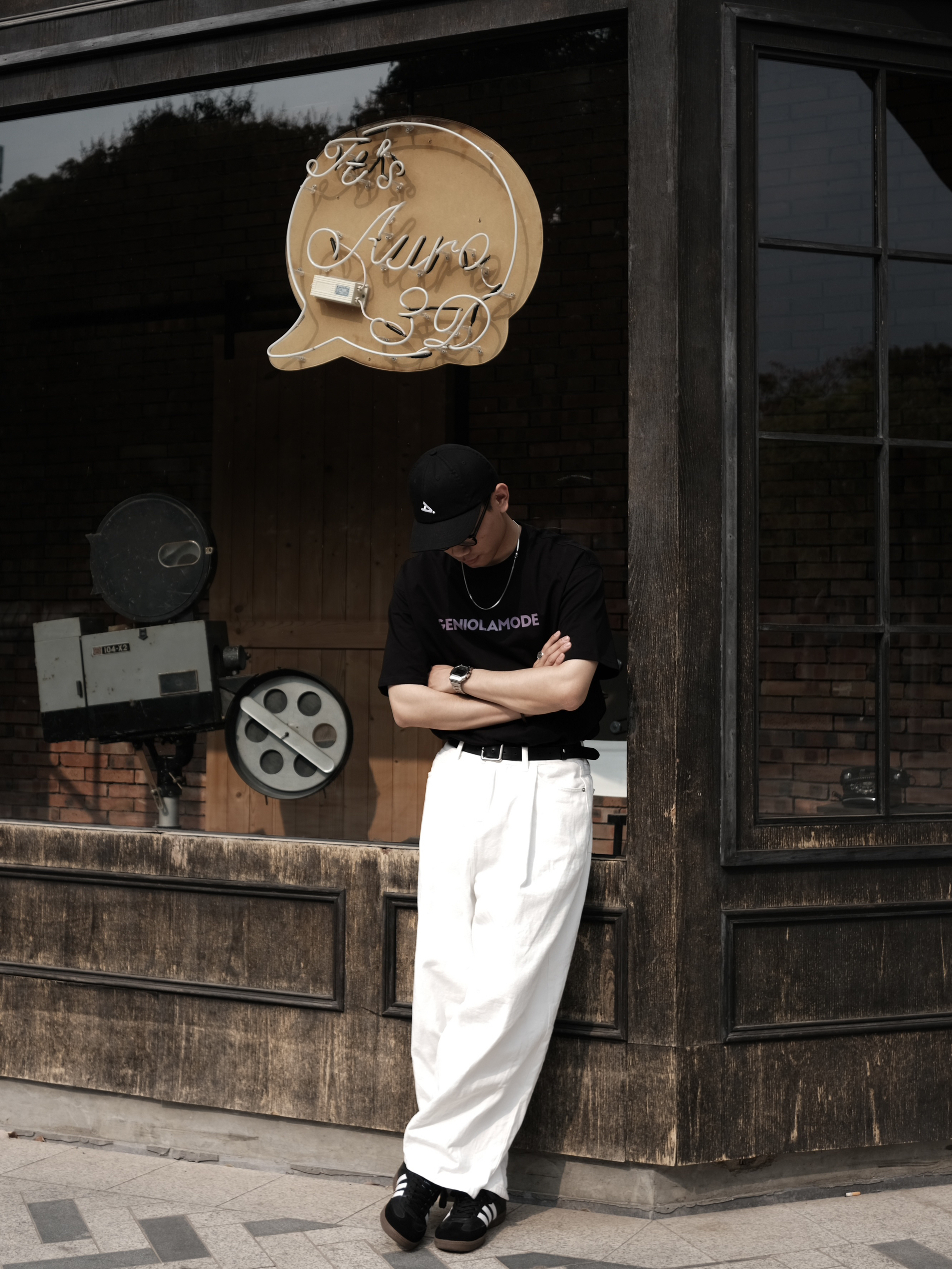 简单清爽的一套春夏搭配look 上身基础宽松的字母印花T 柔软舒适耐穿 -