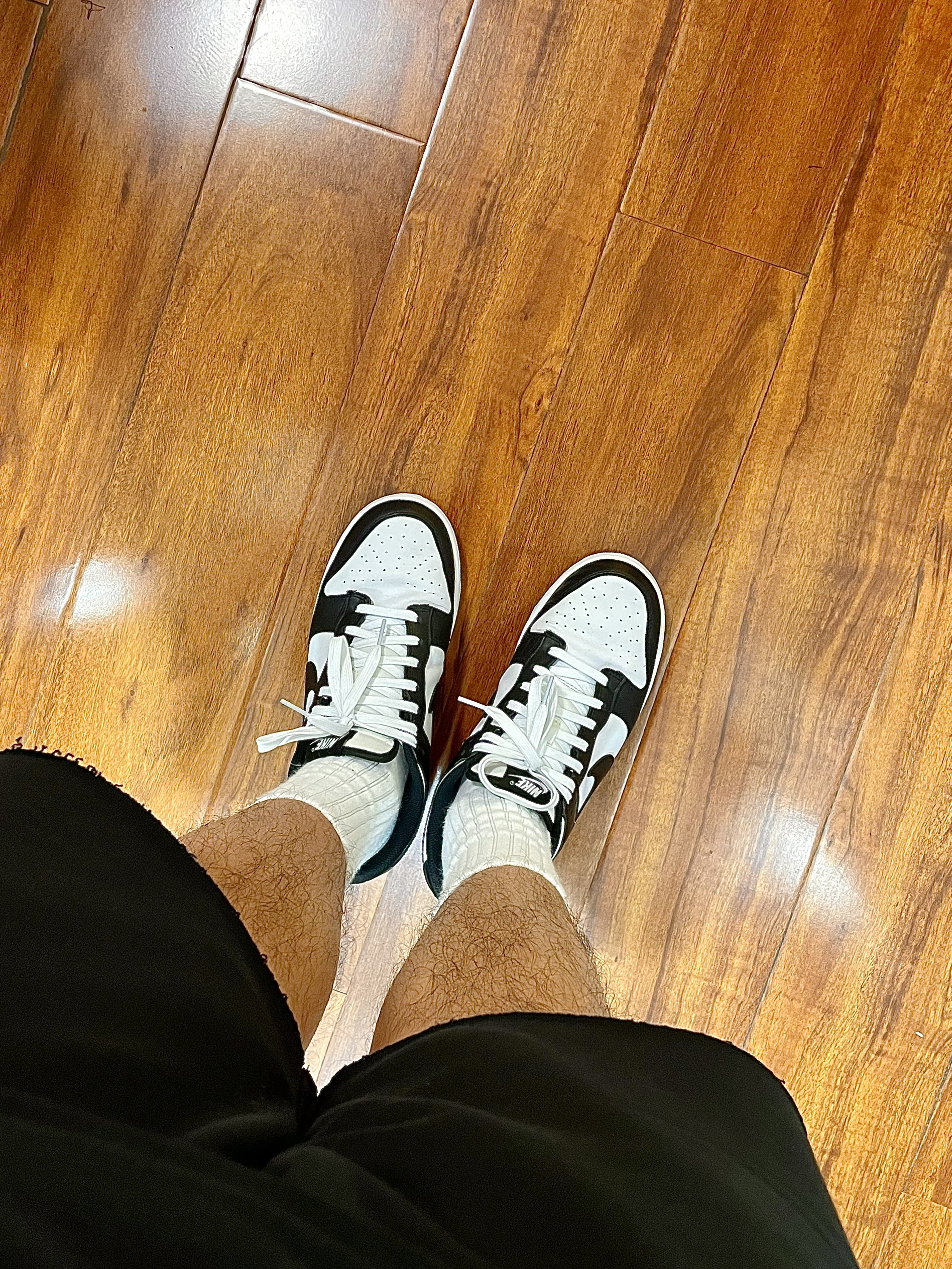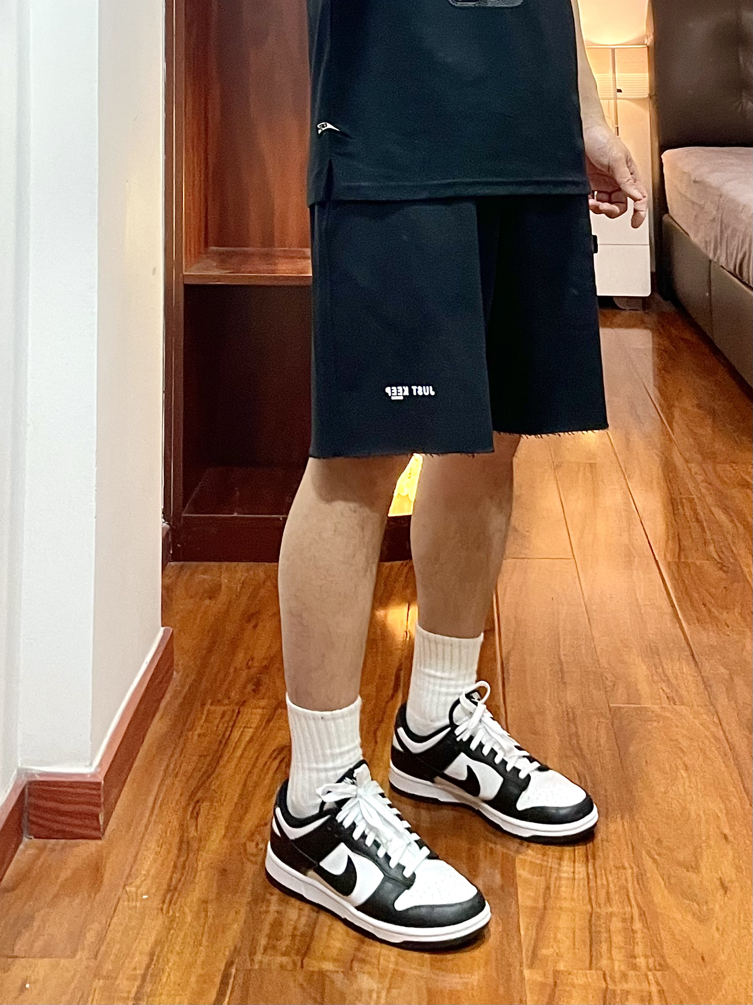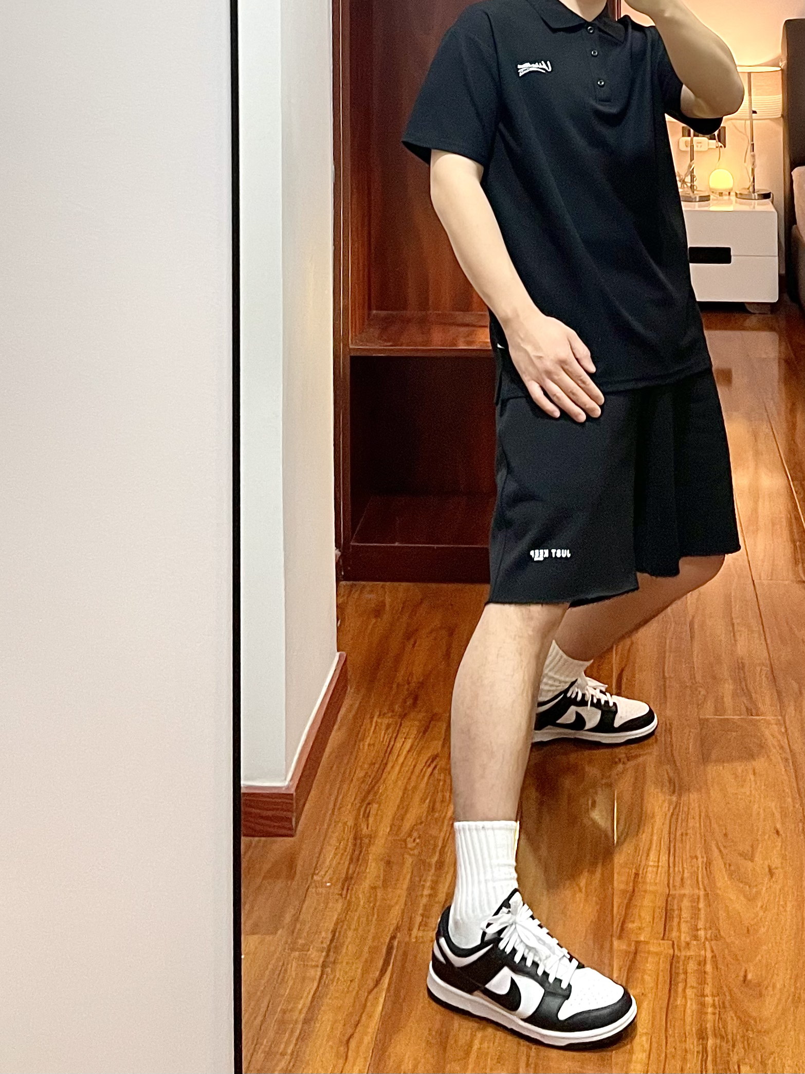 170cm/67kg 一个普通人的穿搭分享 👕:鹿家门 Polo衫 L码 黑色的Polo衫,版型合适宽松,衣服的设计在正面有切割线整体版型立体。 👖:鹿家门 短裤 L码 黑色休闲风的短裤,日常出门健身运动穿都合适,裤脚边做了磨毛破坏处理整个裤子更有特色。 👟:Nike dunk 日常穿着的黑白熊猫,换了白色鞋带。