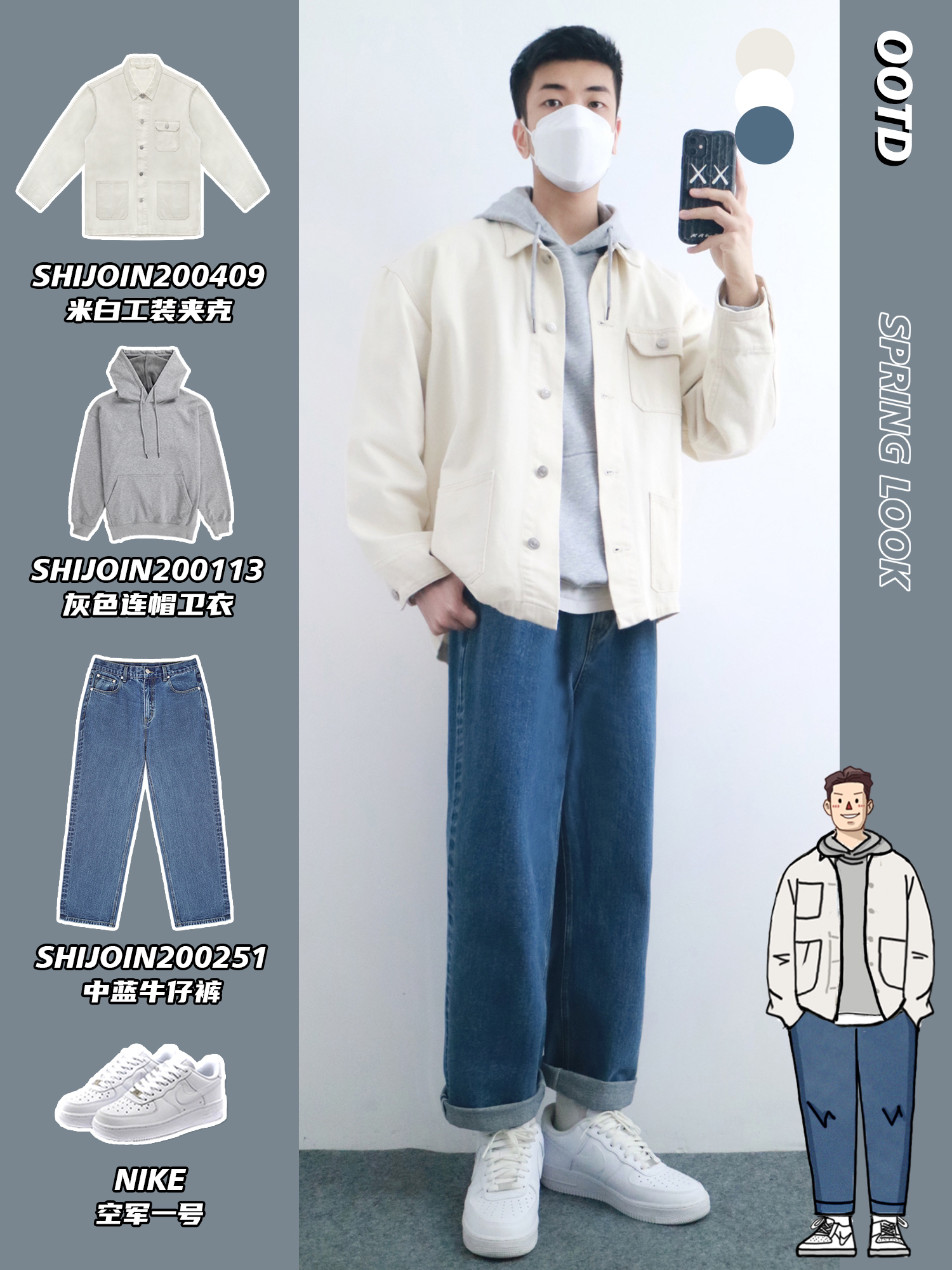 hello,穿衣显瘦脱衣有赘肉的小梁🙋来了! 很多小伙伴都说春季不知道应该穿什么颜色的衣服👔 不妨试试干净清爽的配色🌐 以低保和度⚪️的基础配色为主 简约单品也可以搭出cleanfit那味儿🔅 - look1️⃣ 浅杏色+深蓝色 look2️⃣ 军绿色+卡其色 look3️⃣ 深蓝色+深棕色 look4️⃣ 花灰色+中蓝色 - 我们下期见~
