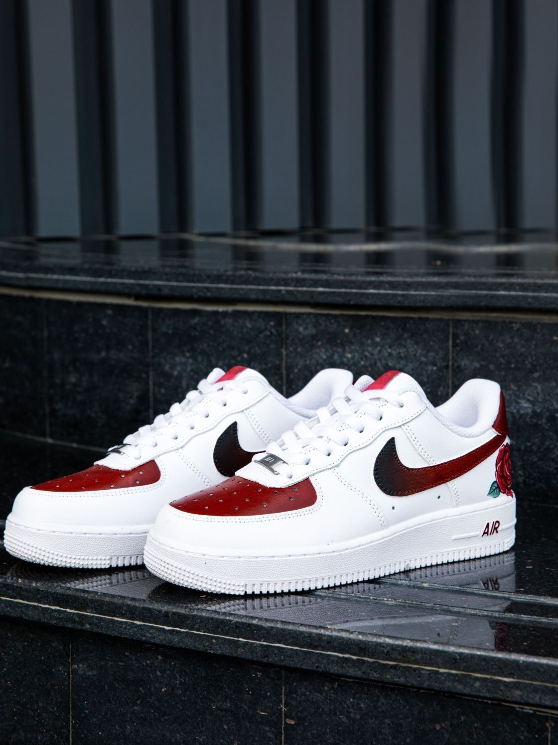 ⛏ 💎 这个diy配色太顶了吧!作为一个资深的罗斯球迷,玫瑰花元素一直都是一种信仰般的存在,而空军一号又是日常出街必备单品,这二者啪的一结合起来💣 那不就是我的私人订制了吗!渐变色的Nike钩子配红白相间,配上一条束腿运动裤颜值直接拉满🎈