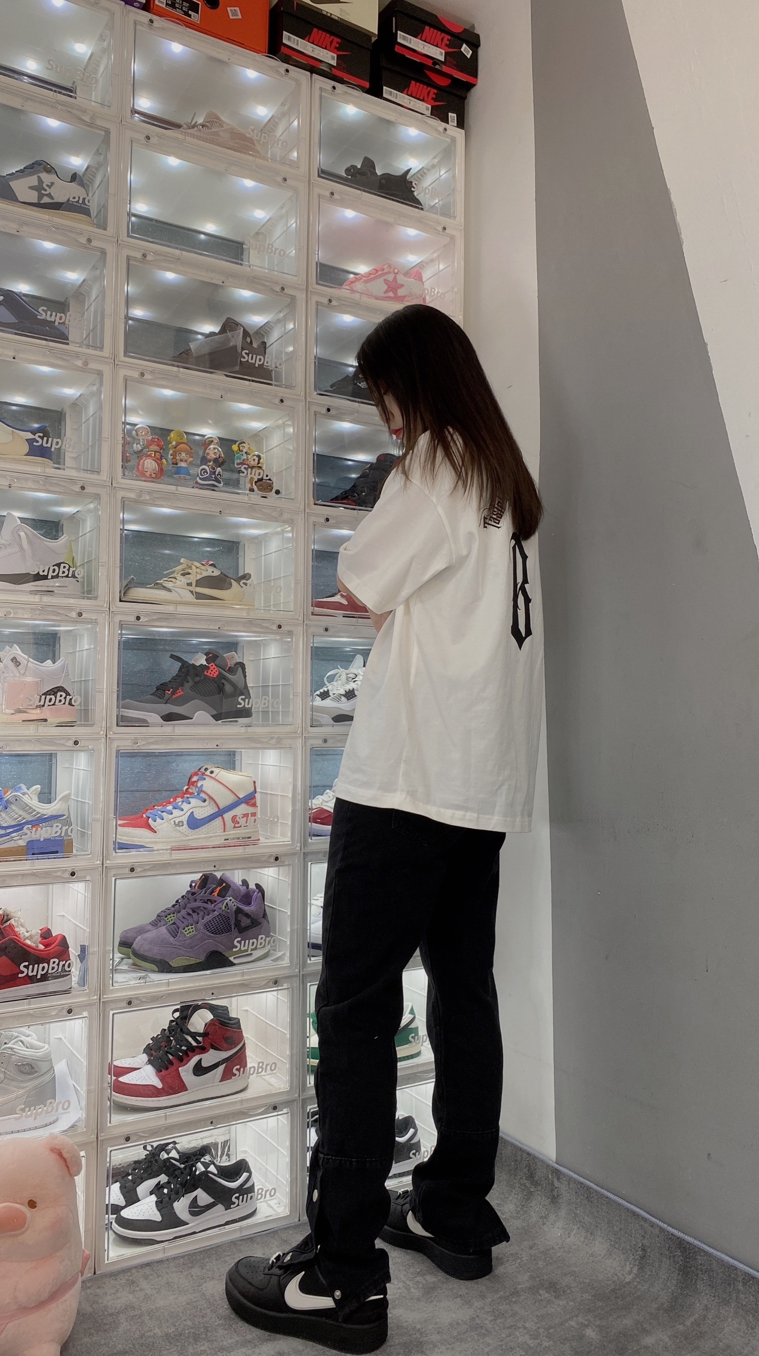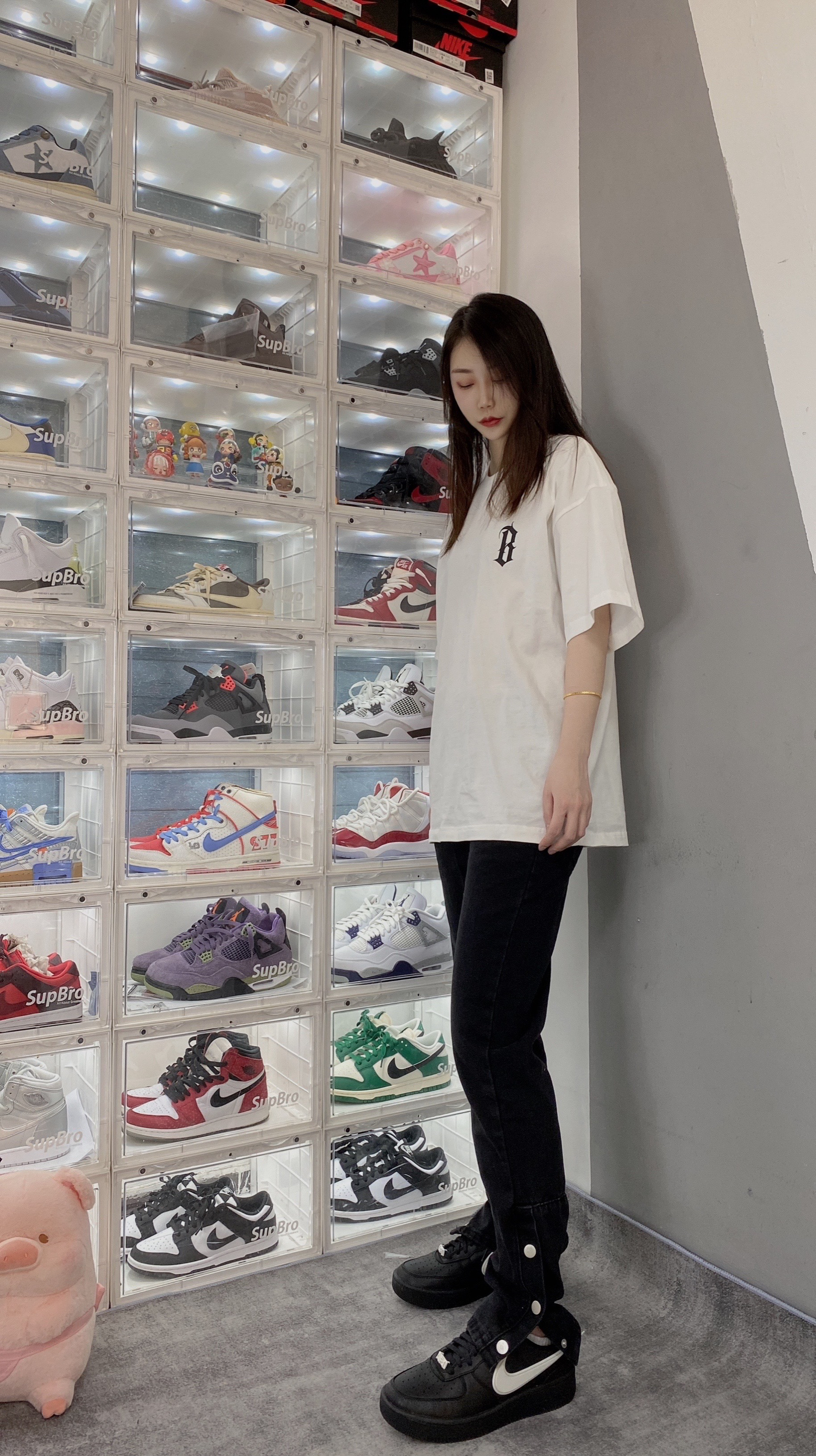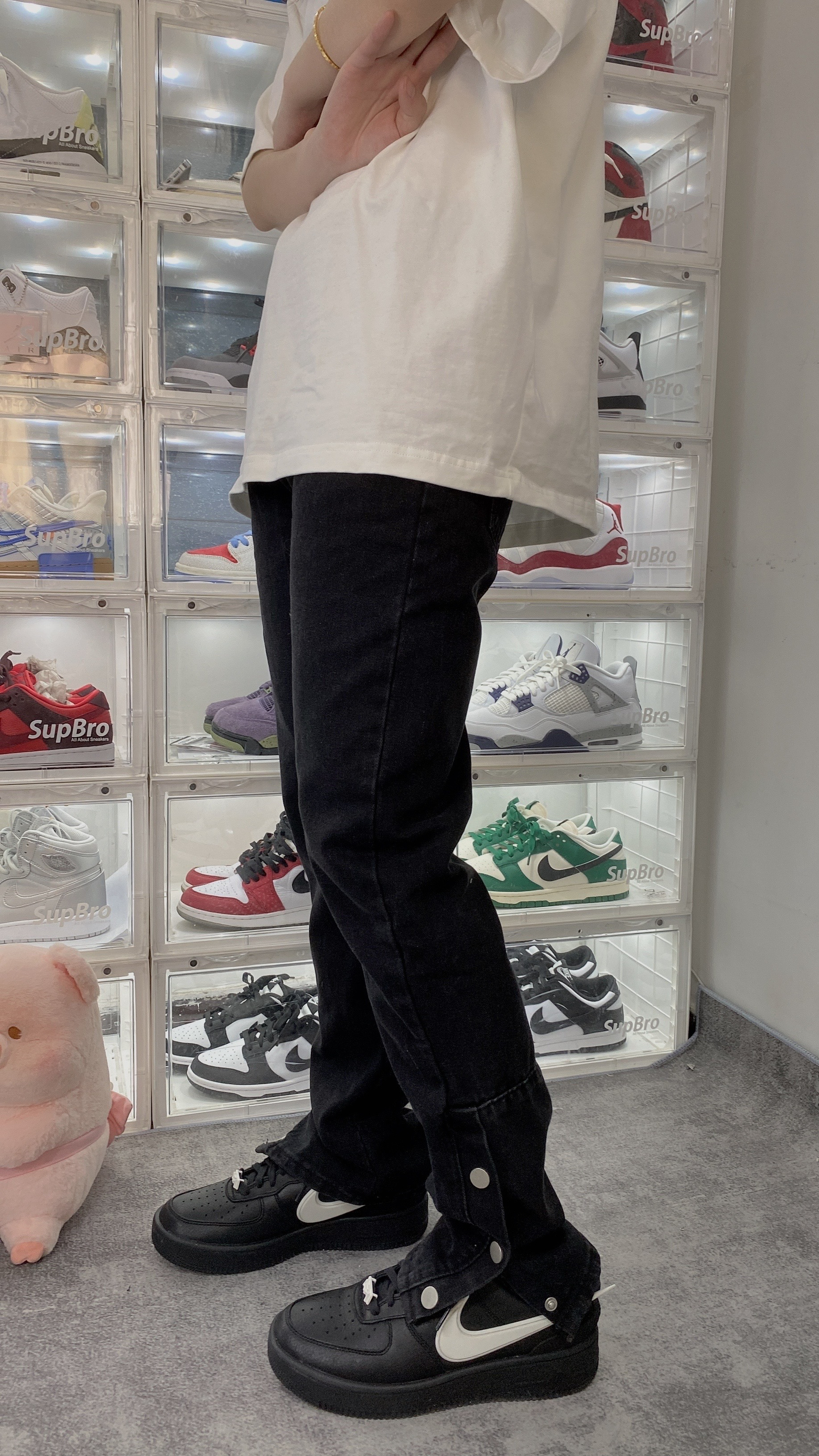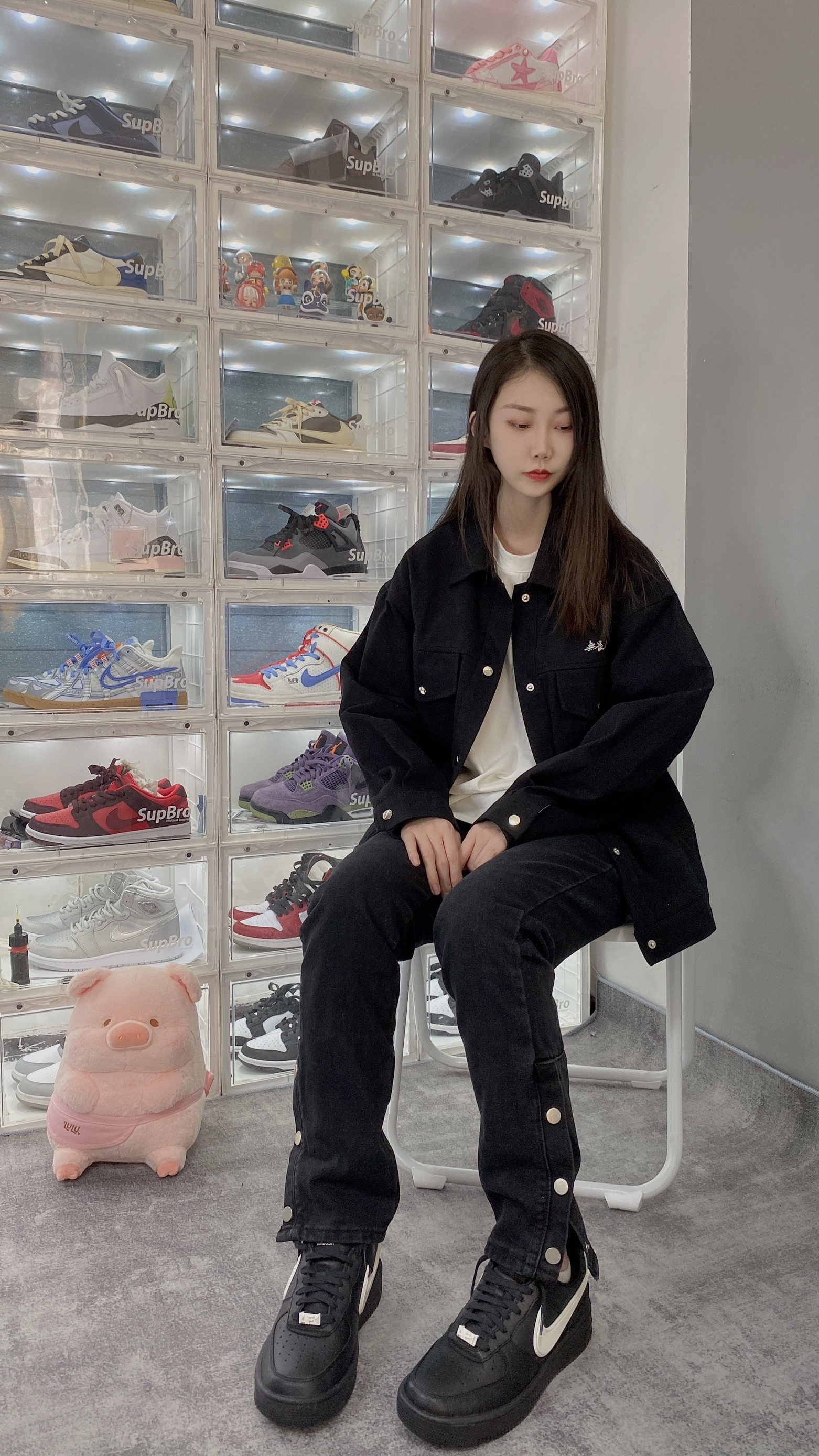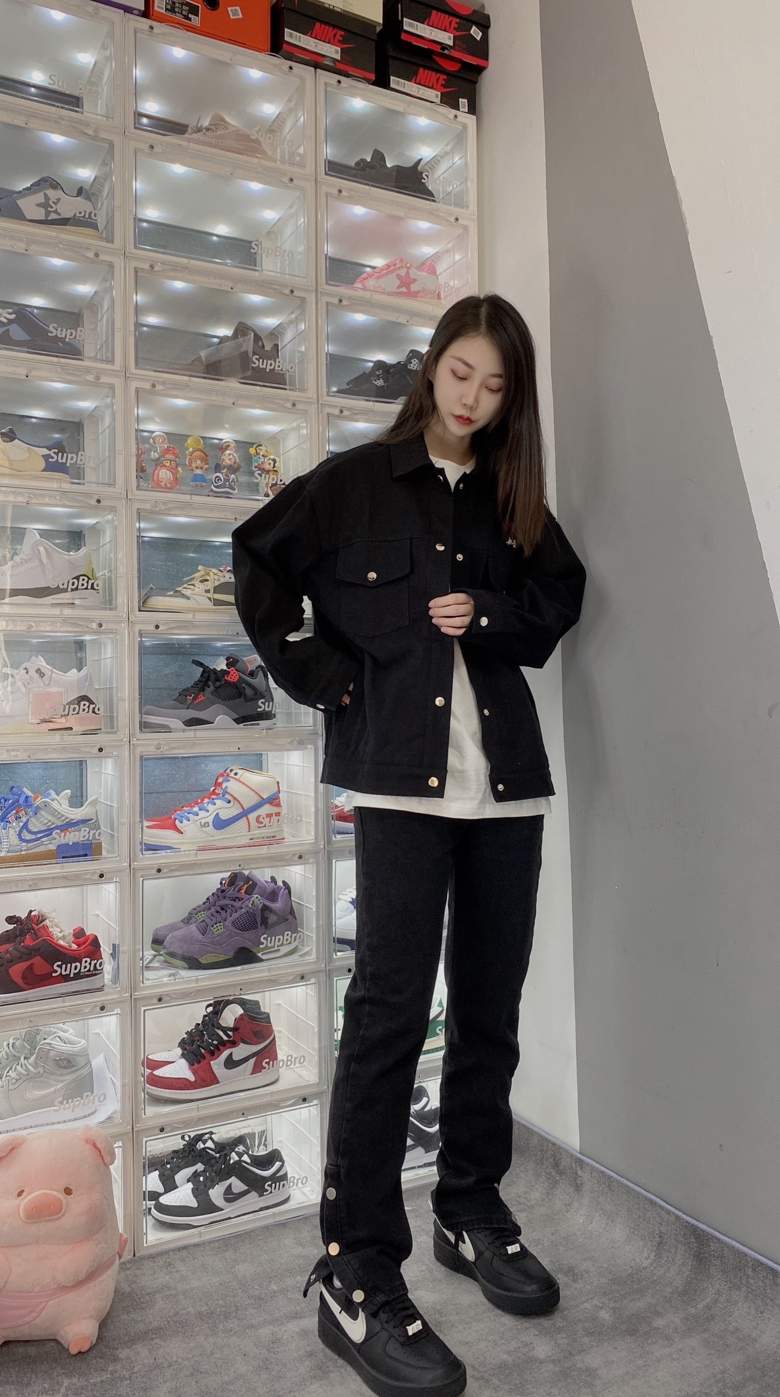 👟:Ambush x Nike Air force1黑色 不得不说这双AF1真的帅啊!穿一身黑也完全不会出错, 上衣就来一件黑色工装夹克,内搭一件白色短袖, 裤子👖穿一天高街vibe风黑色牛仔裤,搭配虽然简单!看起来也是真的帅啊!