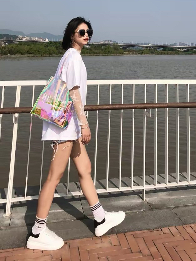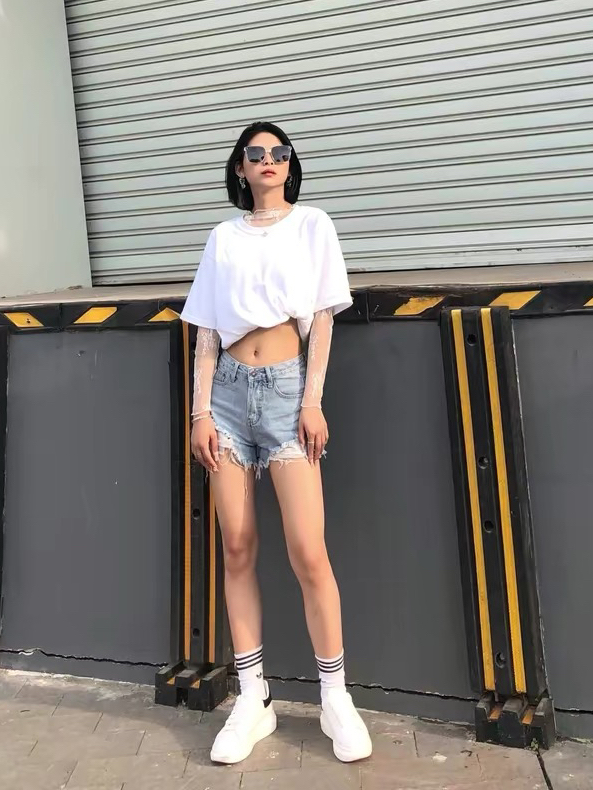 Champion品的基础款白色T恤, 一上身就干净简约夏天的味道就来了 很减龄也很百搭校园感满满~袖口有个刺绣小标穿着也很舒服~ 复古浅色系牛仔短裤 这个颜色也真的炒鸡夏天~淡淡的蓝色~ 白色T恤跟这种浅色牛仔短裤最搭配了一整个青春洋溢~ 日常分享~希望喜欢~ 图片来自网络