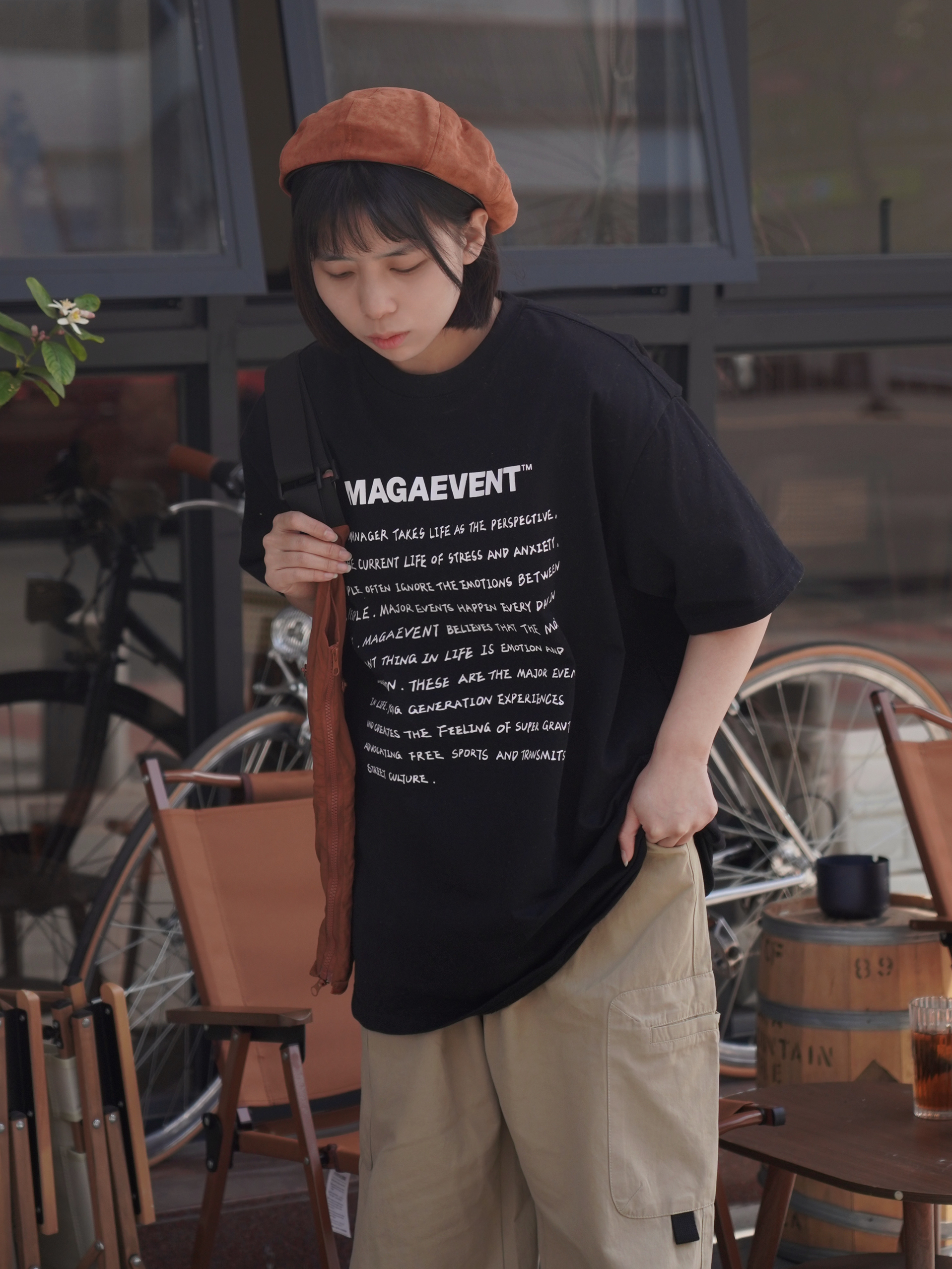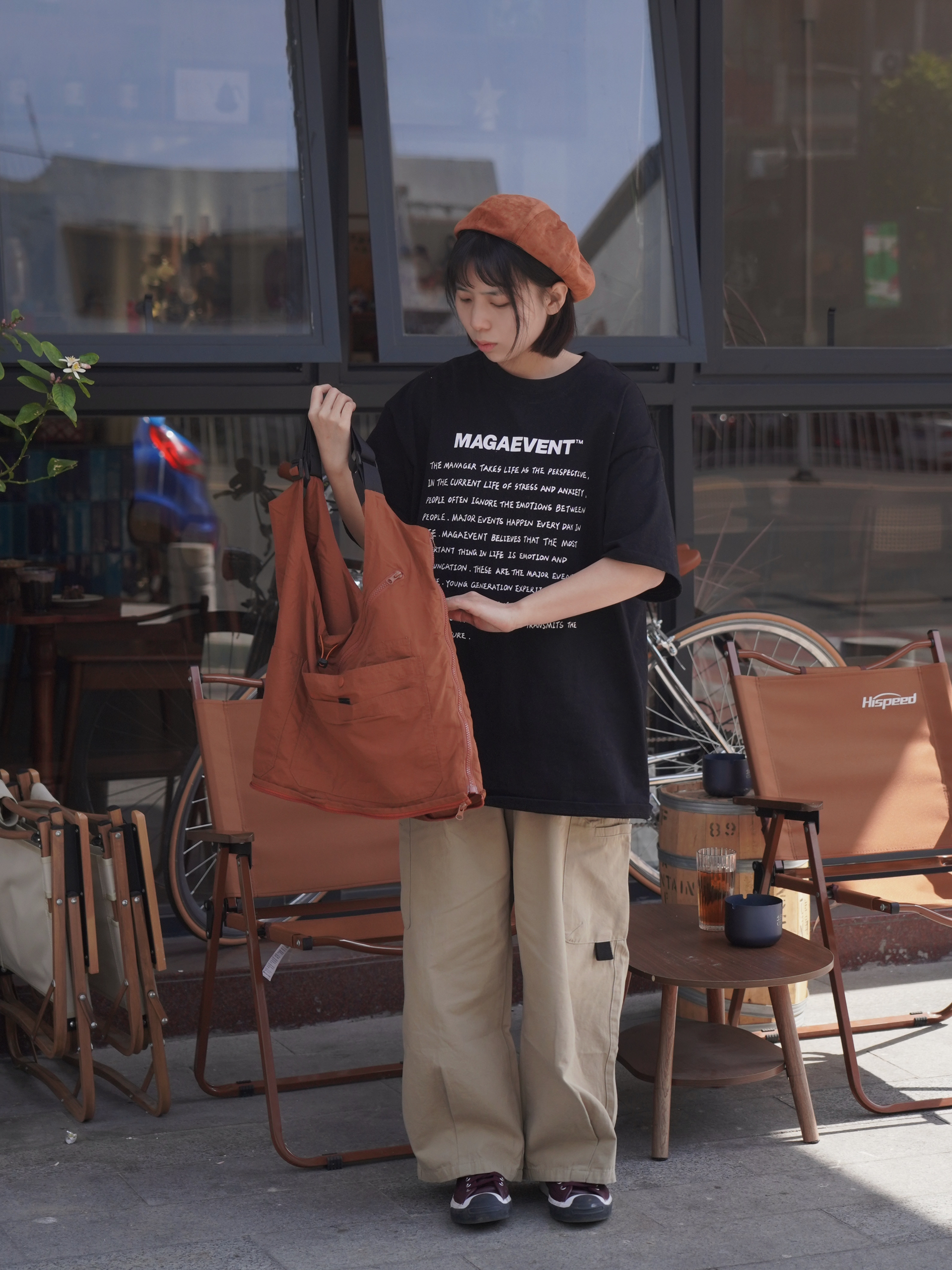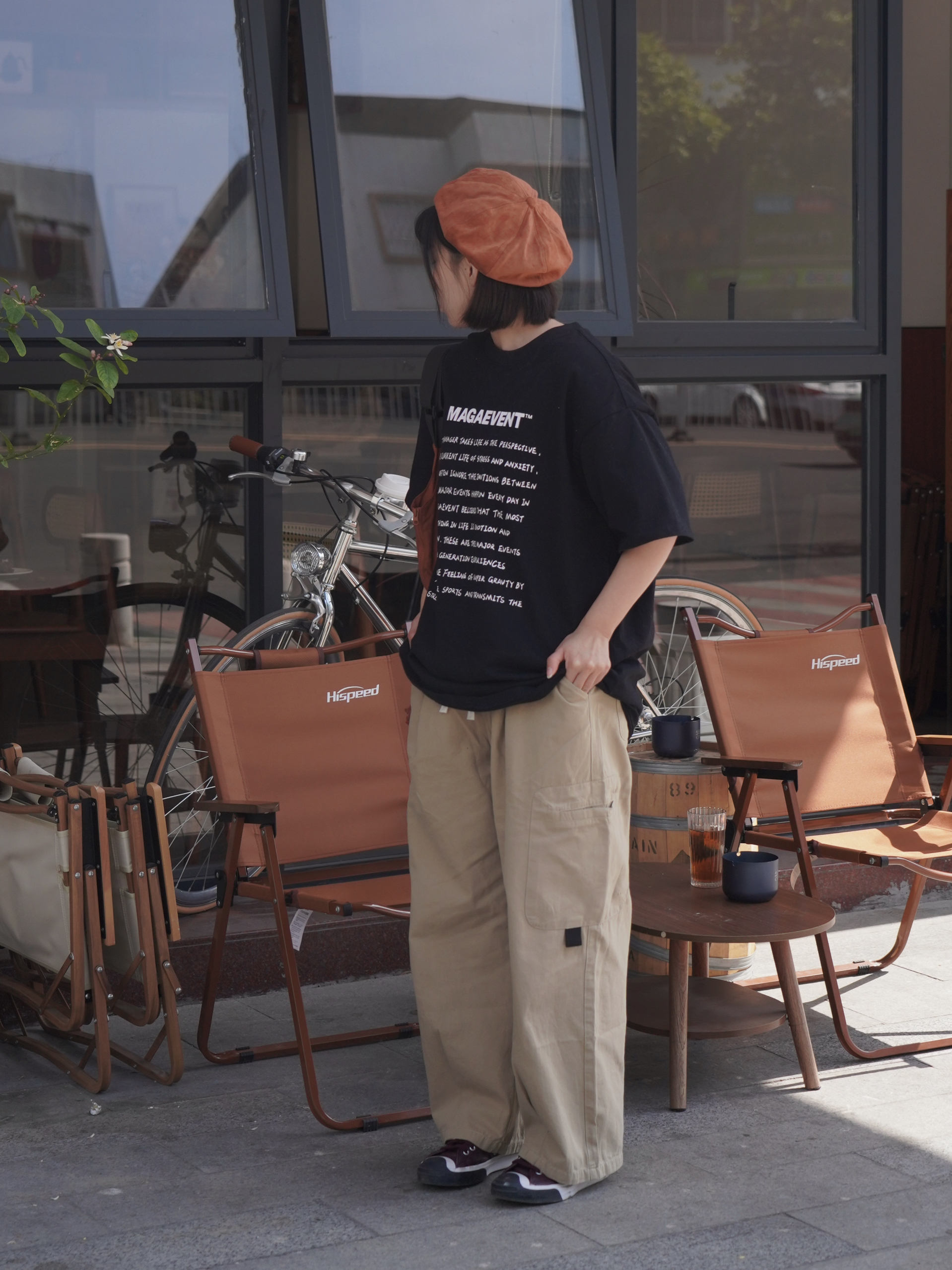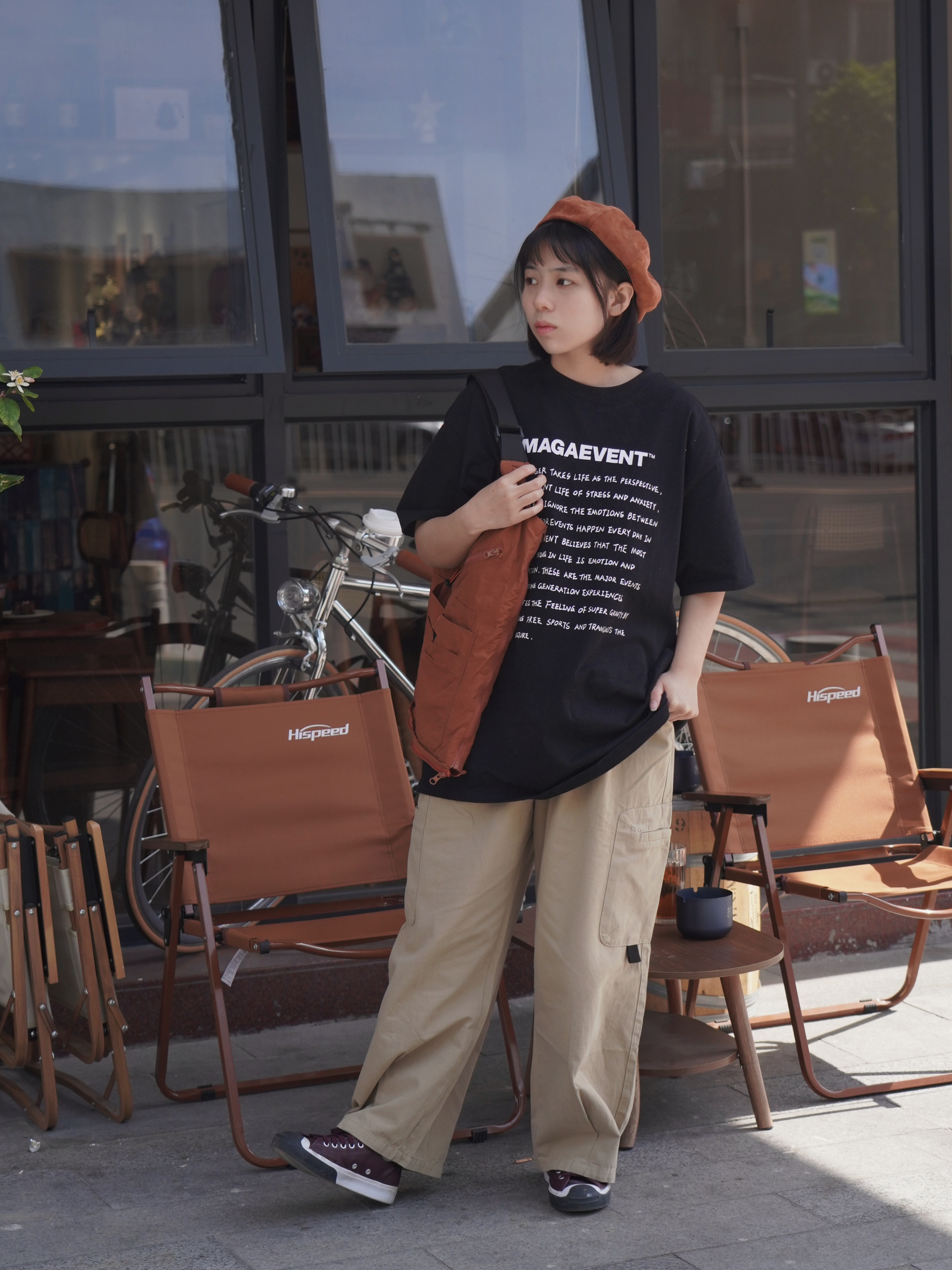 希望你我自由又灿烂 ———————————————————————— hello 大家好呀 欢迎来到我的穿搭频道 今天是春夏季复古日系的黑咖色搭配 上短下长是工装citygirl在这个季节的标配 黑色印花logo T恤搭配卡其色的工装裤 胸前的英文印花是对于如今生活的看法 在繁忙压力和焦虑中人们总会忽视一些问题 年轻人往往会利用穿着搭配传播自己的主流思想 下身选择的是多口袋的卡其色工装裤 就如不被...