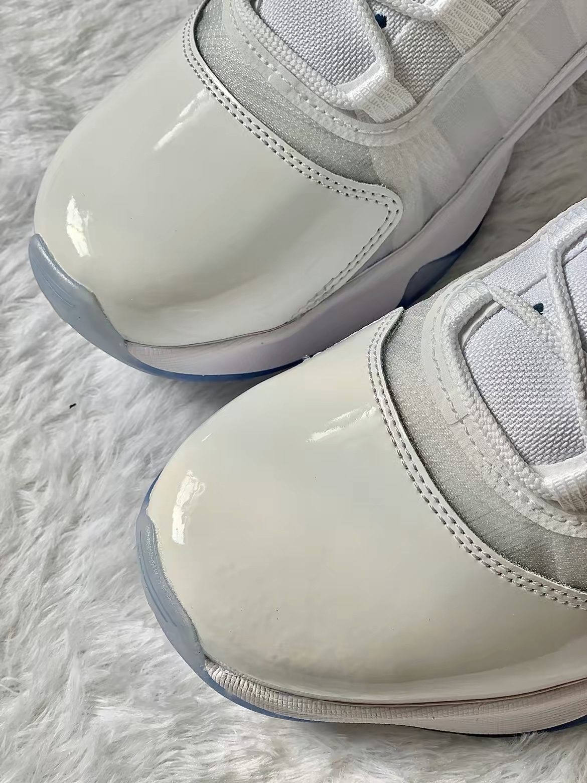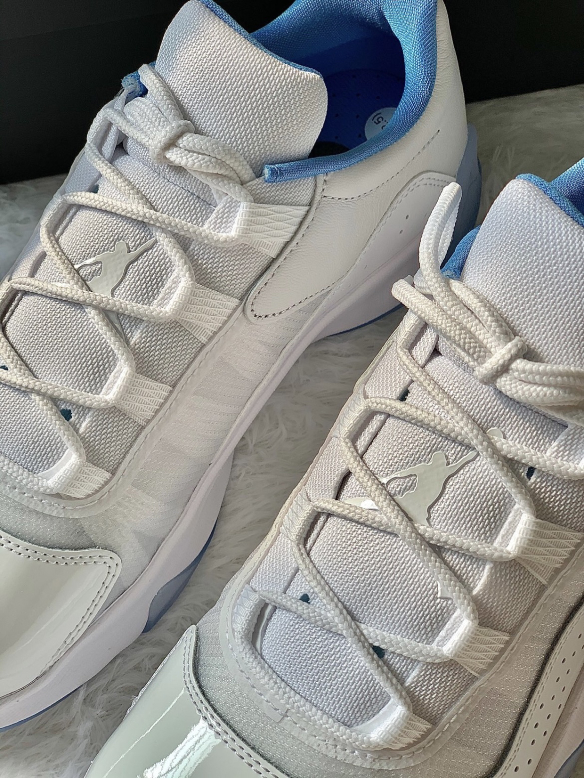 🌹球鞋名称 Air Jordan 11 CMFT Low (GS) 低帮实战篮球鞋 白蓝 🌹外观配色 鞋子主要采用白色和蓝色为搭配,颜色单调,但是非常耐看 鞋面真的很特别,看着像小牛皮材质,时尚感爆棚 鞋身为白色,鞋帮为蓝色,鞋底为水晶透明蓝色 鞋侧有很多很多小孔,透气性非常强,打篮球的时候再也不怕热脚了 鞋后跟有着一个黑色Jordan的logo,非常帅气 鞋带孔中间也有一个Jordan的10g0...