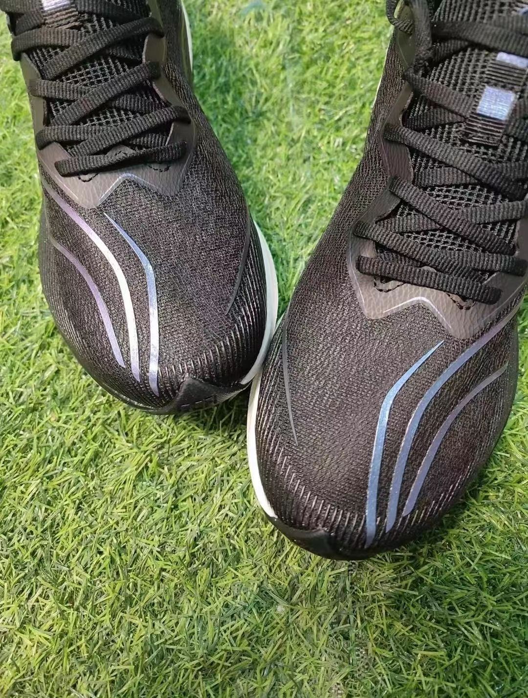 ﹣外观设计鞋身的设计延续了赤兔5pro的风格相似度极高大 logo 放在鞋头后跟有提环设计鞋身流线感不错前后掌有明显的高低落差黑紫配色非常低调耐看虽然不突出但是也很耐脏比较实用的配色! ﹣配置性能相比赤兔5pro可谓升级不少中底该用了大面积的材质作为缓震后掌保留一部分 lightfoam ultra 也比之前的 lightfoam 有了提升脚感更舒服耐久性更好鞋面用的是之前的夏季版 mono 纱材...