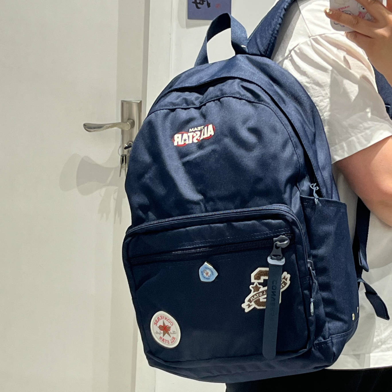 书包颜色太正了,爆裂纹设计YYDS,书包整体潮流时尚,红色镂空Nike Logo凸显,颜色搭配非常协调,颜值爆表! 书包容量很大,属于大号的那种,日常放书本以及笔记本电脑,都装得下,加上宽肩带设计,背起来不会感觉累赘。书包整体造型太适合春夏了,看上去给人一种眼睛一亮的感觉,出街回头率爆棚的,值得入手。