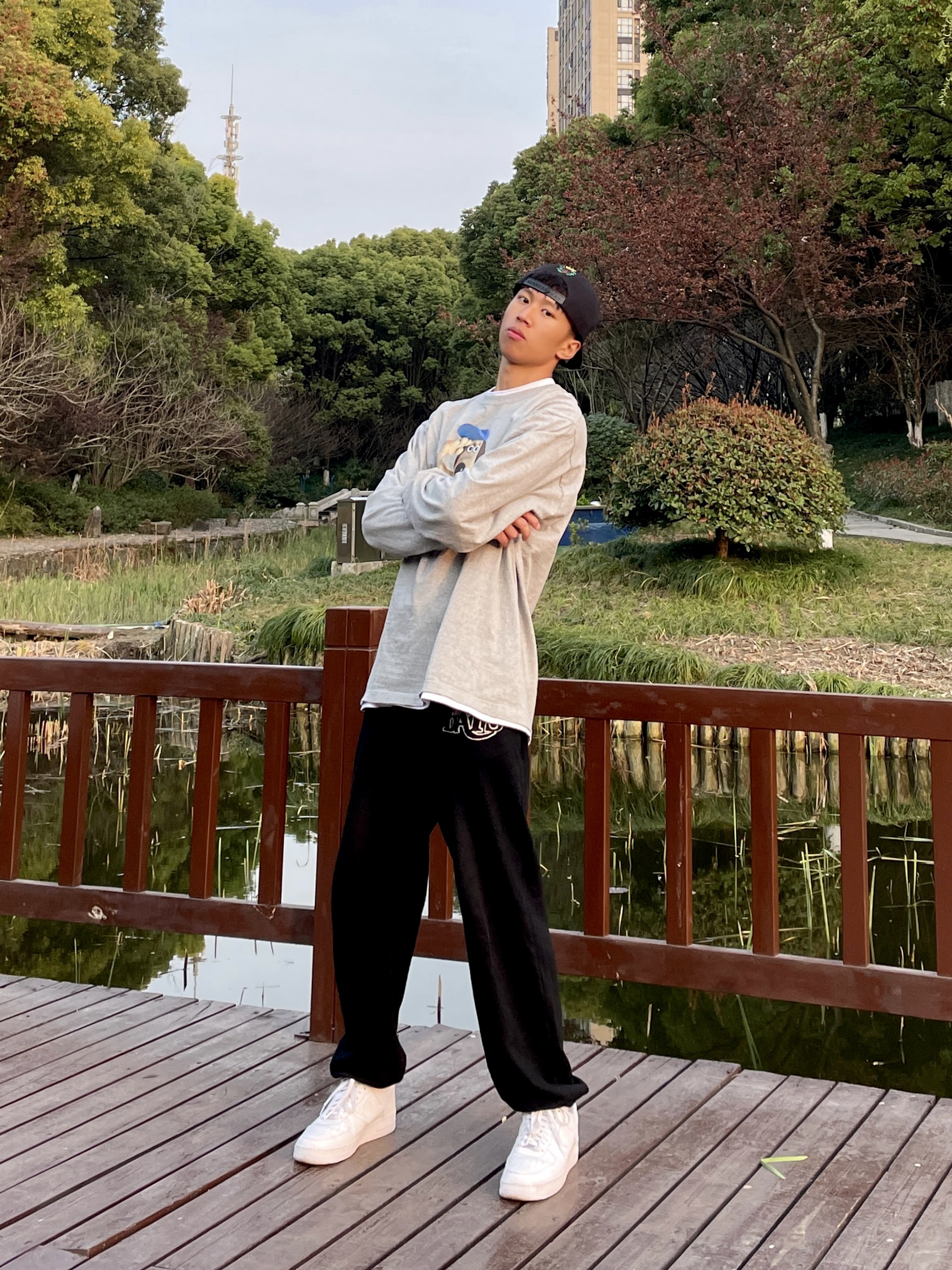 晴天最喜欢了 尤其是双休日 今天上身简单小狗长袖 👖:Battles 👟:AF1纯白 今日穿搭打几分👻👻