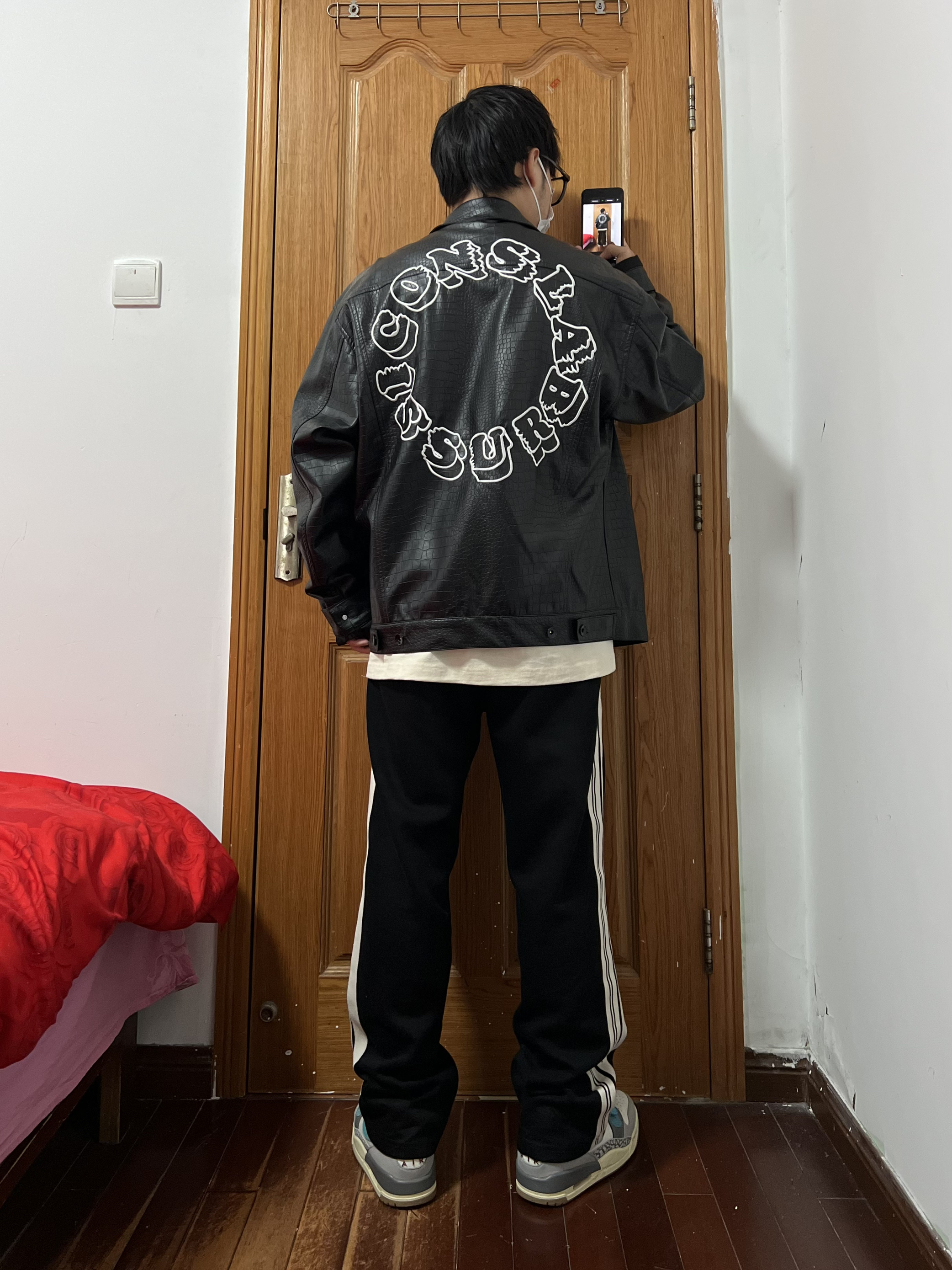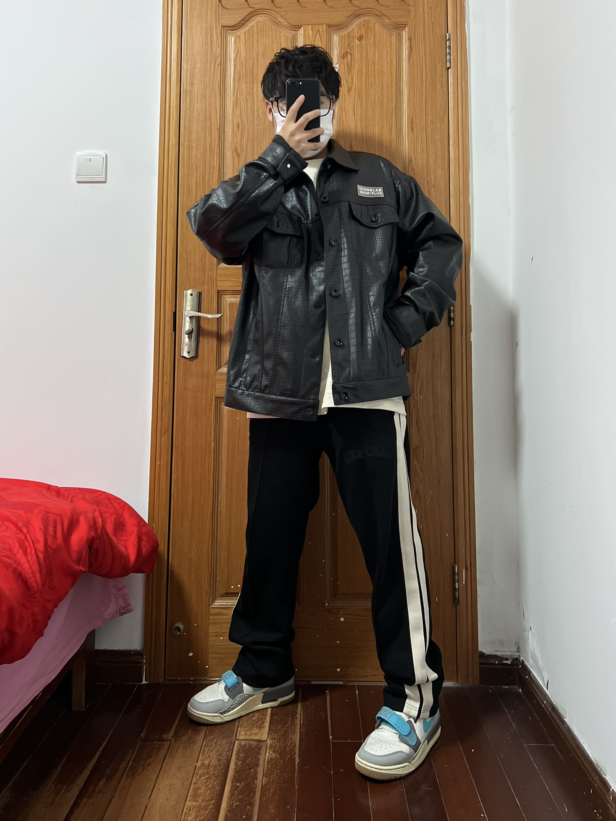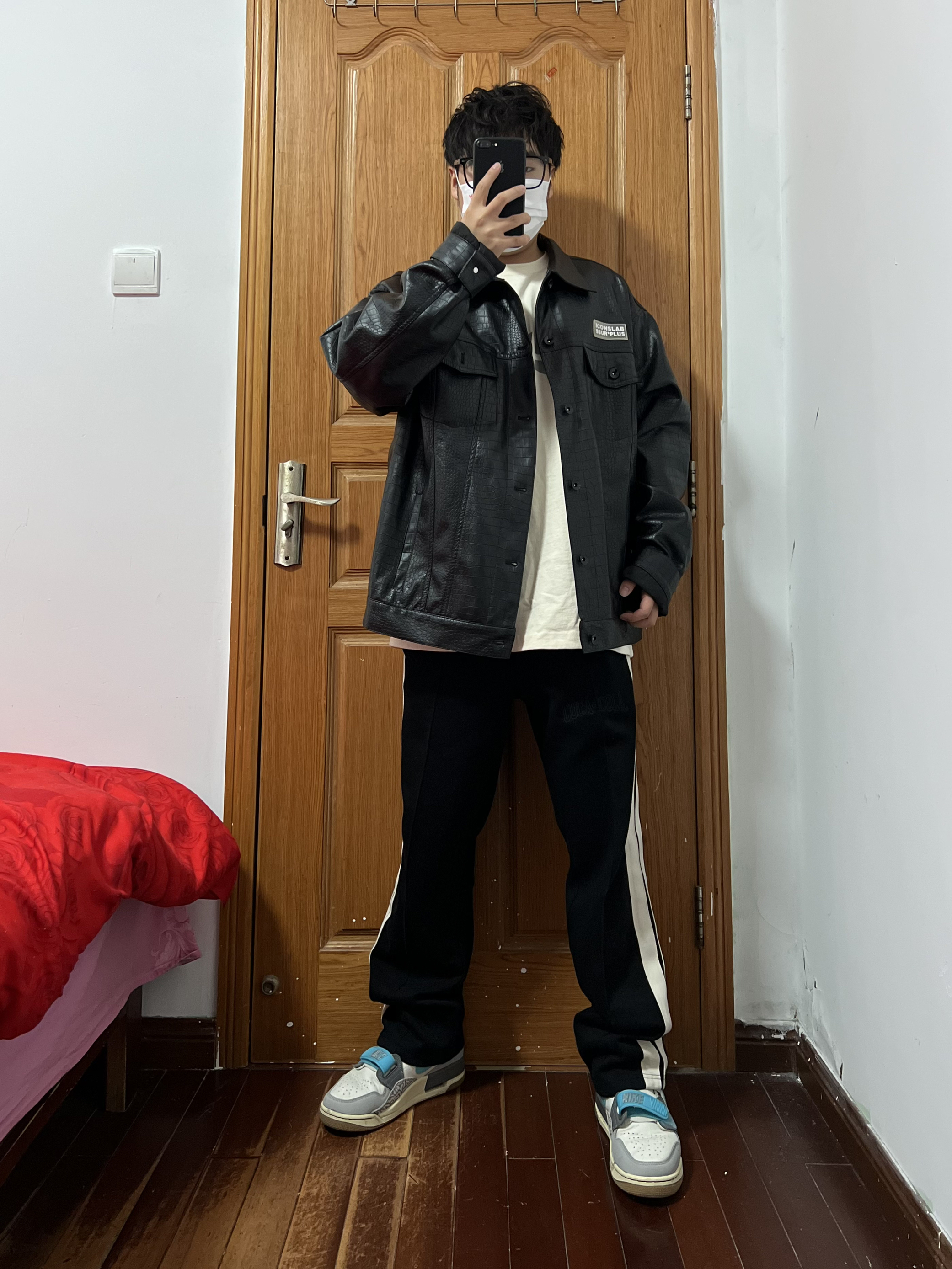 今日份穿搭分享🎉 iconslab皮衣外套 皮质真的很赞是那种类似鳄鱼皮的很有质感❗️ 前胸前一个方形小logo背后一环型大logo 整体简单明了大气设计,黑色我觉得很赞👍 在这个春天穿相当不错哦,内搭一件白Tee 袖子我觉得有点偏长可以挽起来穿着很有港风痞帅 裤子可以选一条黑色条纹裤搭配整体酷黑风格 一双AJ312白灰蓝很亮眼,很好搭这黑色系酷黑 小哥哥穿很酷,小姐姐穿更酷,没有很酷只有最酷 ...