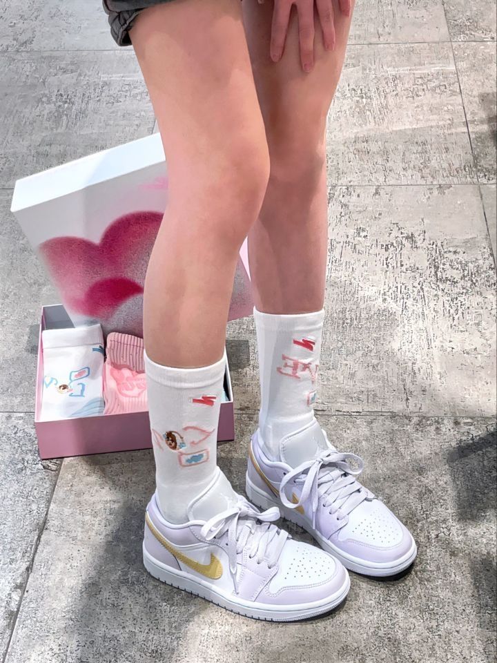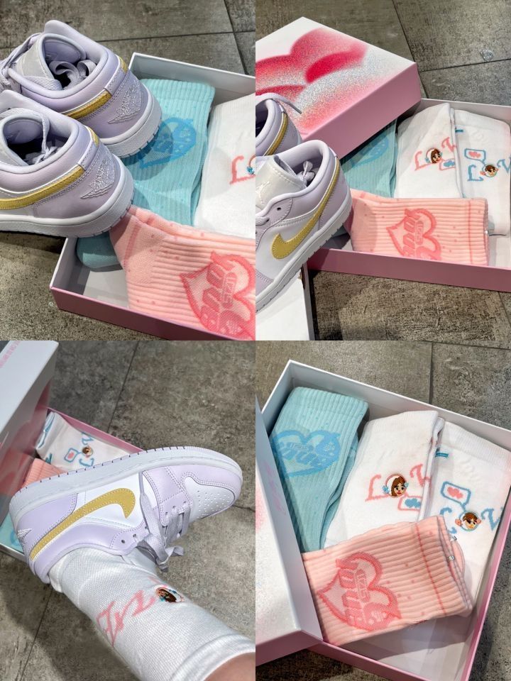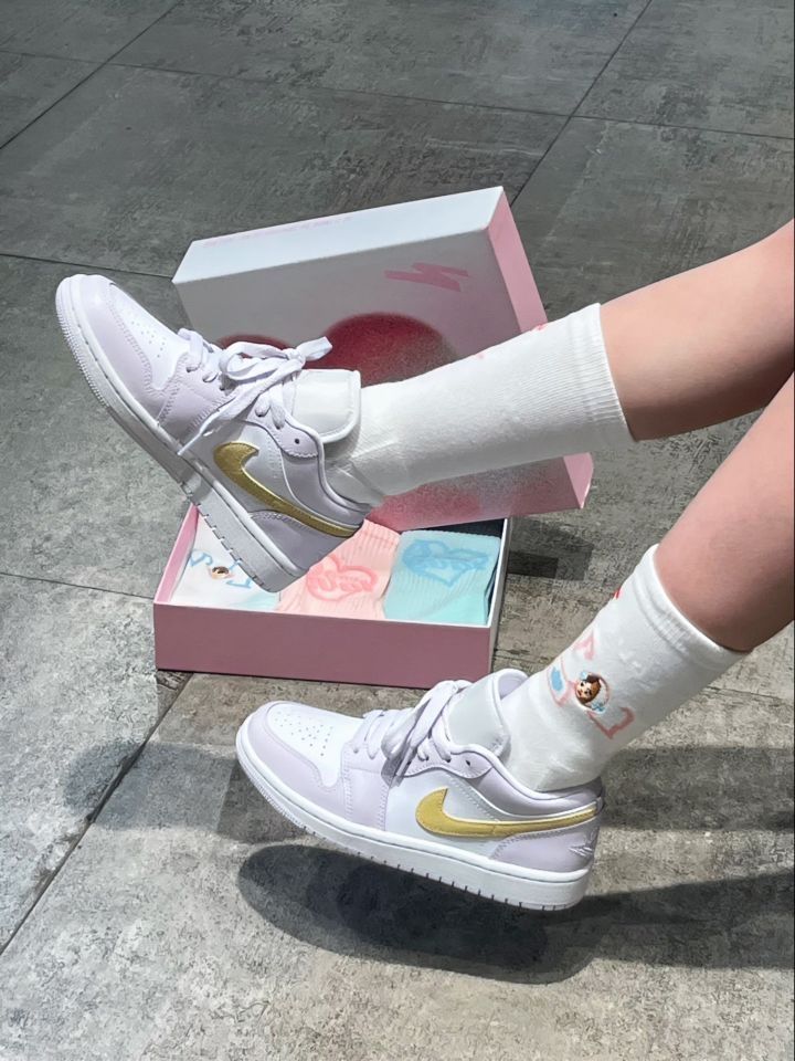 👟:Air Jordan 1 Low🦄白紫 香芋紫的配色好适合春夏⛅ 这双的配色一定会让你心动💗 上脚超级温柔 适合甜妹~ 侧面柠檬黄色点缀🍋 日常搭配是很百搭的