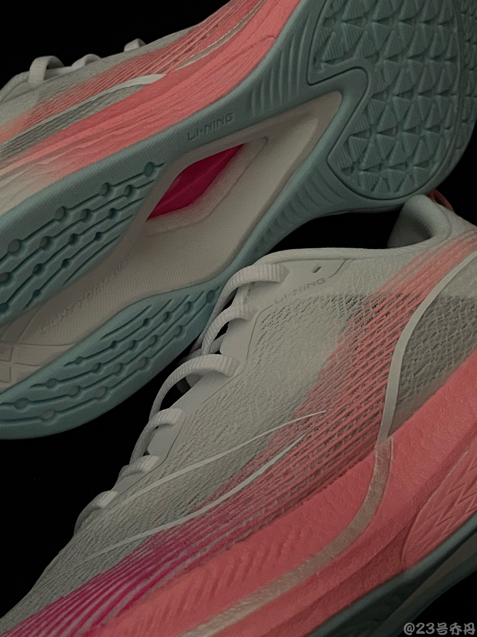 今天给大家分享这双颜值很不错的 LiNing李宁 赤兔6pro 樱花🌸 粉 整双鞋采用了白色和粉色为主色调 鞋面运用了轻薄透气的网纱材质 强度不错 缺点就是不太耐脏 中底搭载了全掌䨻➕后掌Light Foam ULTRA 脚感韧弹舒适 稳定性和耐用性到位 大底选用了白蓝双色的多纹路止滑橡胶底 这双赤兔6pro『樱花🌸粉』颜值与性能俱佳 日常通勤或者体测训练都挺合适 值得推荐‼️