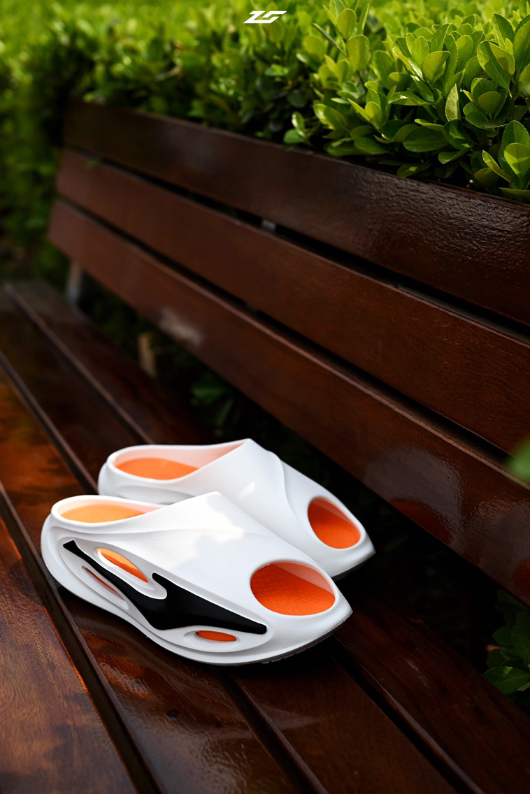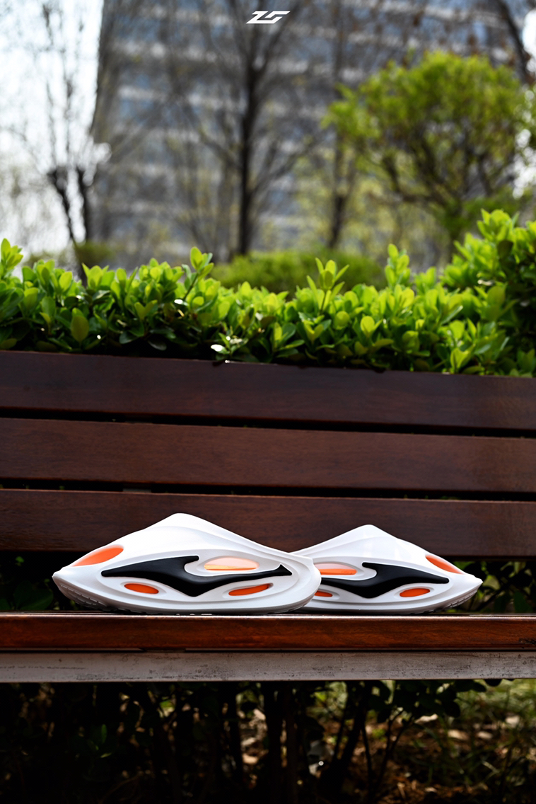 今年鸿星尔克的芷境跑鞋算的上是翻身之作了,直接让我对这个品牌的印象大为改观。 它另外还出了这双芷境拖鞋,入手体验一下。 选择了和跑鞋一样的黑橙颜色搭配,十分亮眼,和跑鞋还能搭配成一个组合。 设计语言和芷境跑鞋相同,侧面放大的LOGO贯穿整个鞋身,流线型的孔洞很飘逸,个人觉得整体效果比跑鞋的融合度还要高。 中底使用奇弹科技,脚感有韧有弹,并且上附防滑纹路,具备按摩功能,体验相当不错;鞋底厚度应该是在...