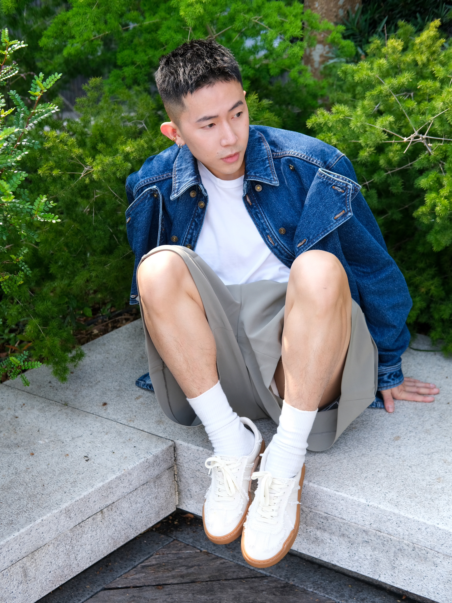 牛仔衣搭西裤已经是一些经典元素了,最近刚好天气回暖,所以短裤马上拿出来穿了,穿上俺的小白鞋出门踏青去! 德训鞋一直都是我的出门首选,舒适之余又百搭!这两年吧,除了牛仔衣裤以外,鞋子也有须边工艺的制作了,满足了我这个须边控,这一身我是i了! - 今日穿搭|男生发型|CITYBOY|国潮 德训鞋|FOOT INDUSTRY足下工业|白鞋|香港