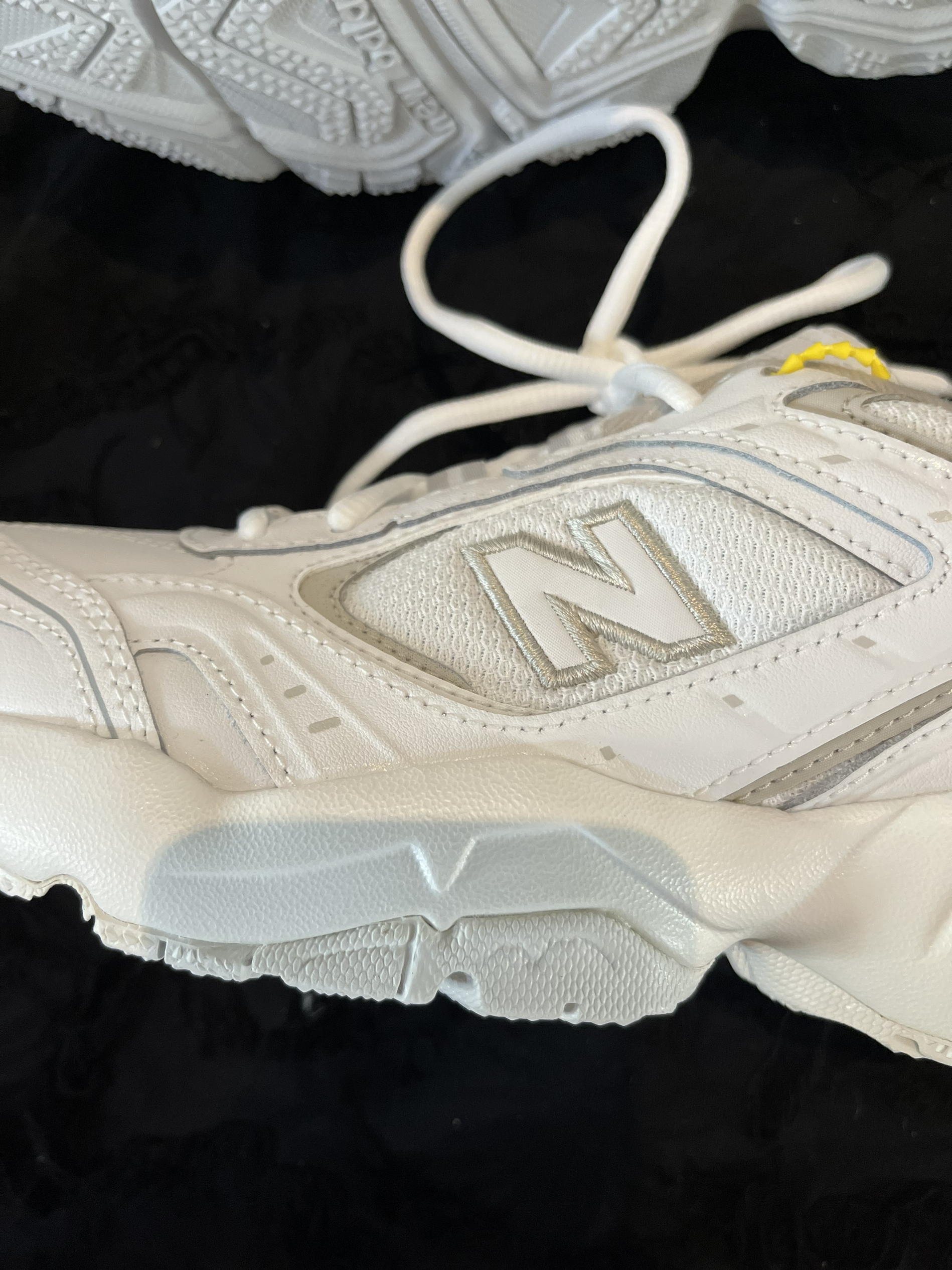 东毒西鞋今日分享: 👟球鞋名称: NewBalanceWX452白色女款D宽#送礼推荐 🔍分享理由:鞋面采用白色为主要颜色,少许银色进行点缀,外观简洁美观。 鞋面采用网布合成革的设计,质感和透气性也不错。 较高的中底也有点增高的效果,橡胶大底耐磨防滑,脚感很不错。 🤔整体感受:不错的鞋子