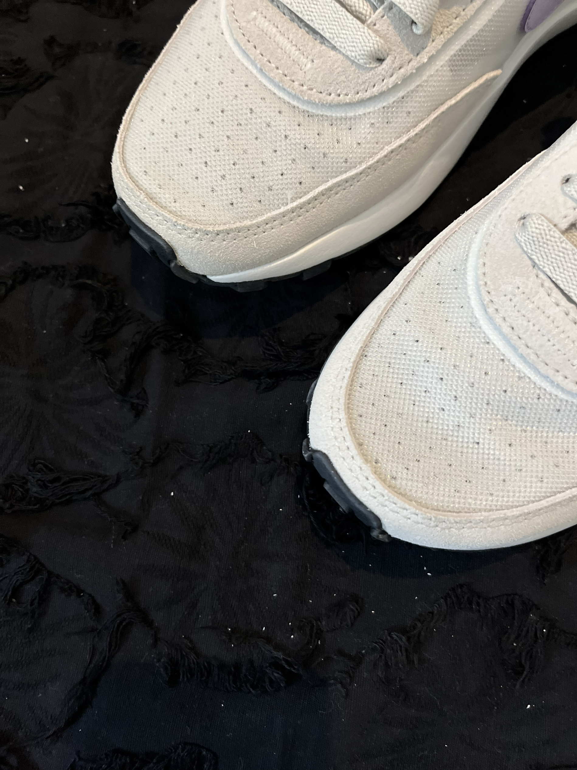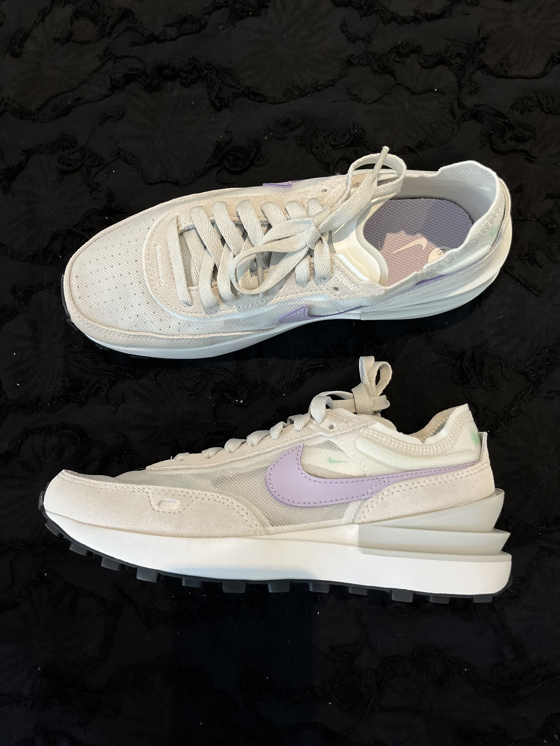 东毒西鞋今日分享鞋名: 👟球鞋名称: NikeWaffe One"InfniteLilac米白紫女款 🔍分享理由:鞋面采用米白色为主要颜色,紫色白色进行点缀,鞋子很简单干净。网布反毛皮的鞋面材质,透气性很不错,很适合夏天。 黑色点状式的橡胶大底耐磨防滑很不错。 🤔整体感受:不错的鞋子