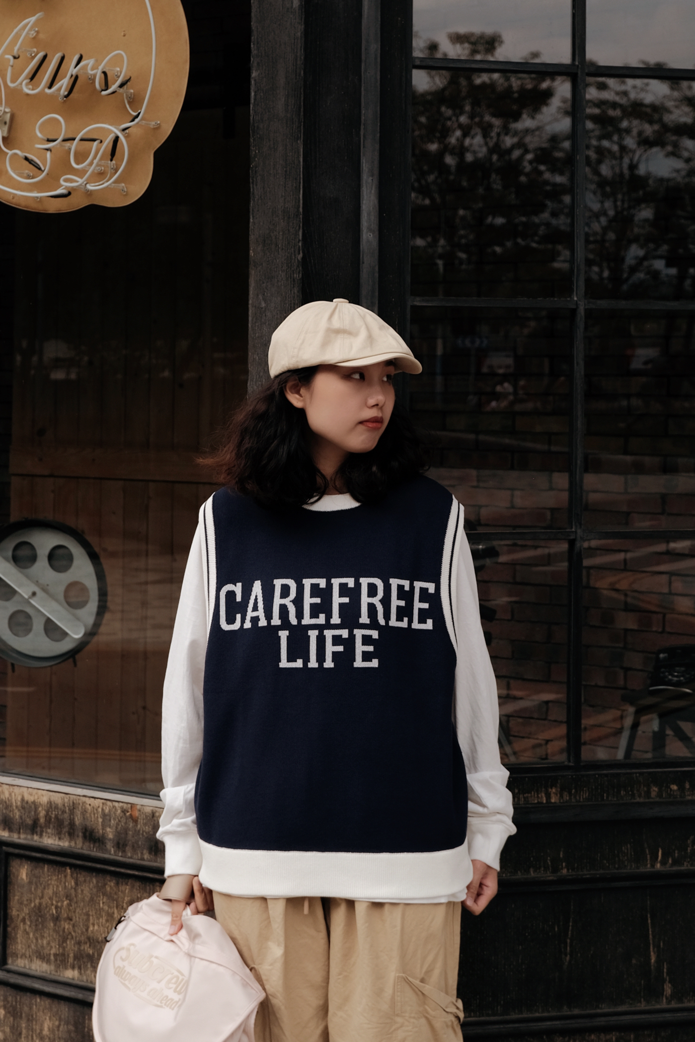 降温了降温了🧊 今天穿上马登针织🦺马甲 内搭件白T恤 然后简单穿条卡其休闲裤 我搭配了浅卡其色的包包 加上针织马甲就很有学院风的感觉 - 🧍♂️ 穿搭风格:学院休闲风 👔 上衣:马登工装 👖 下装:马登工装