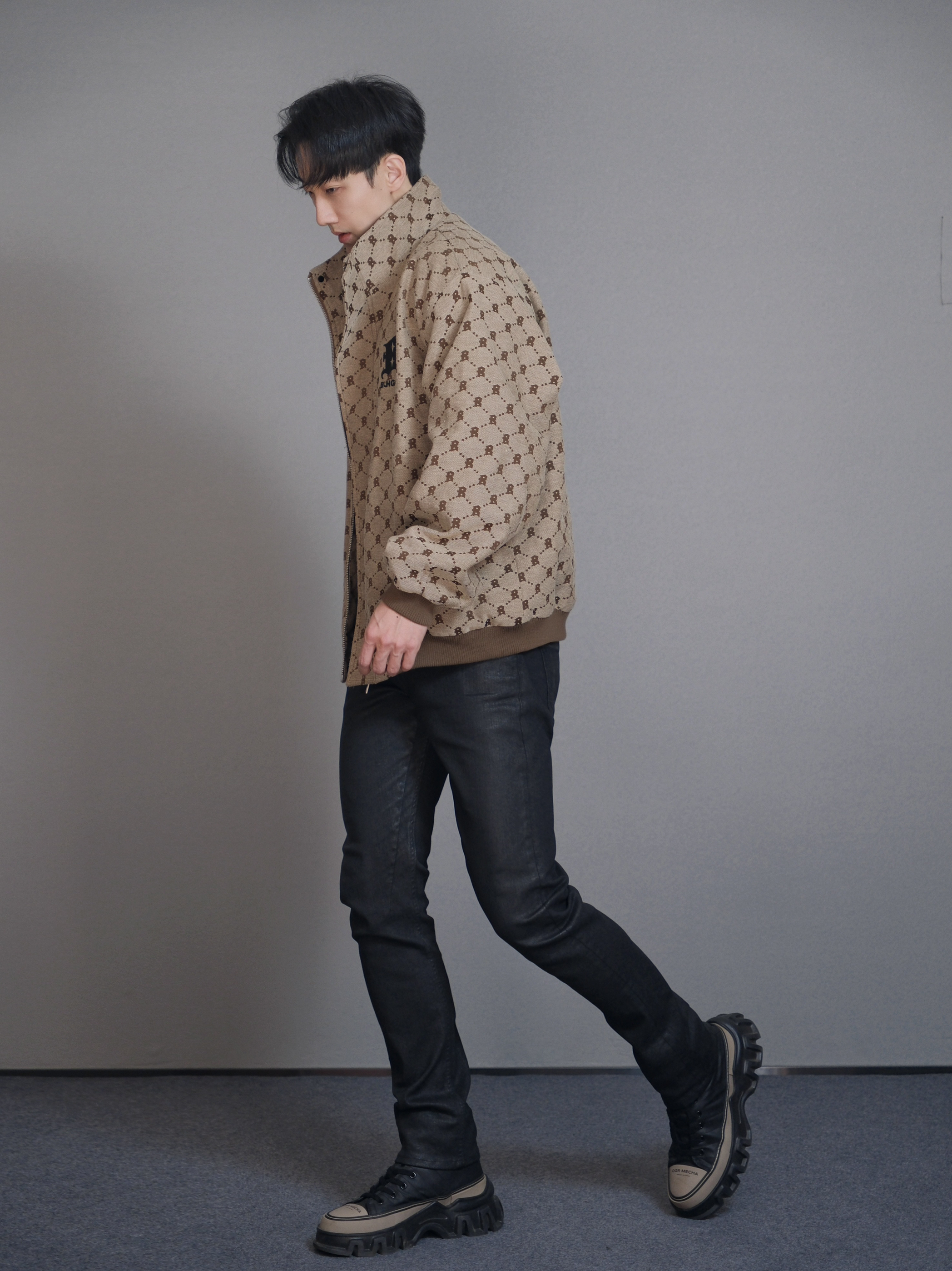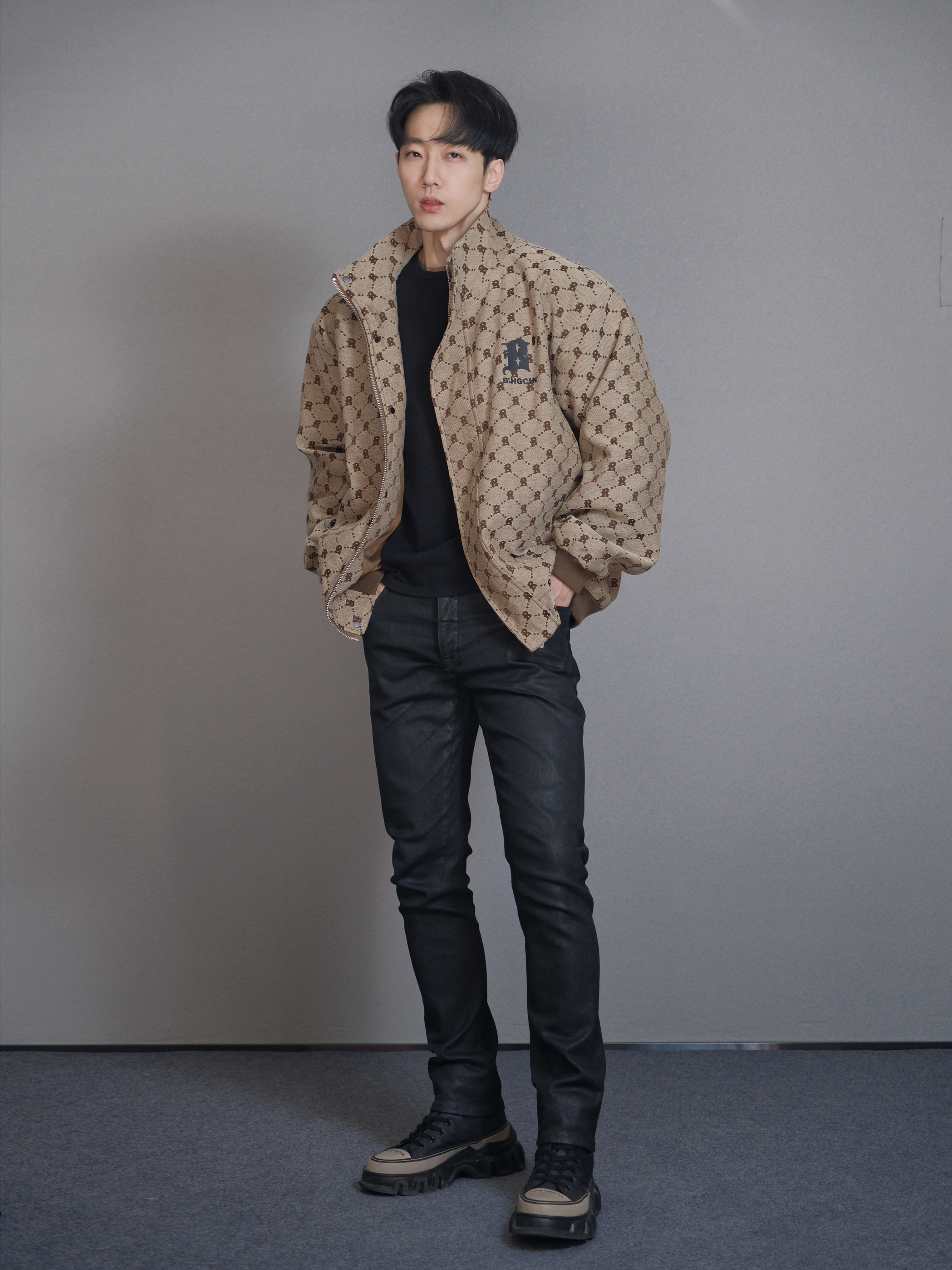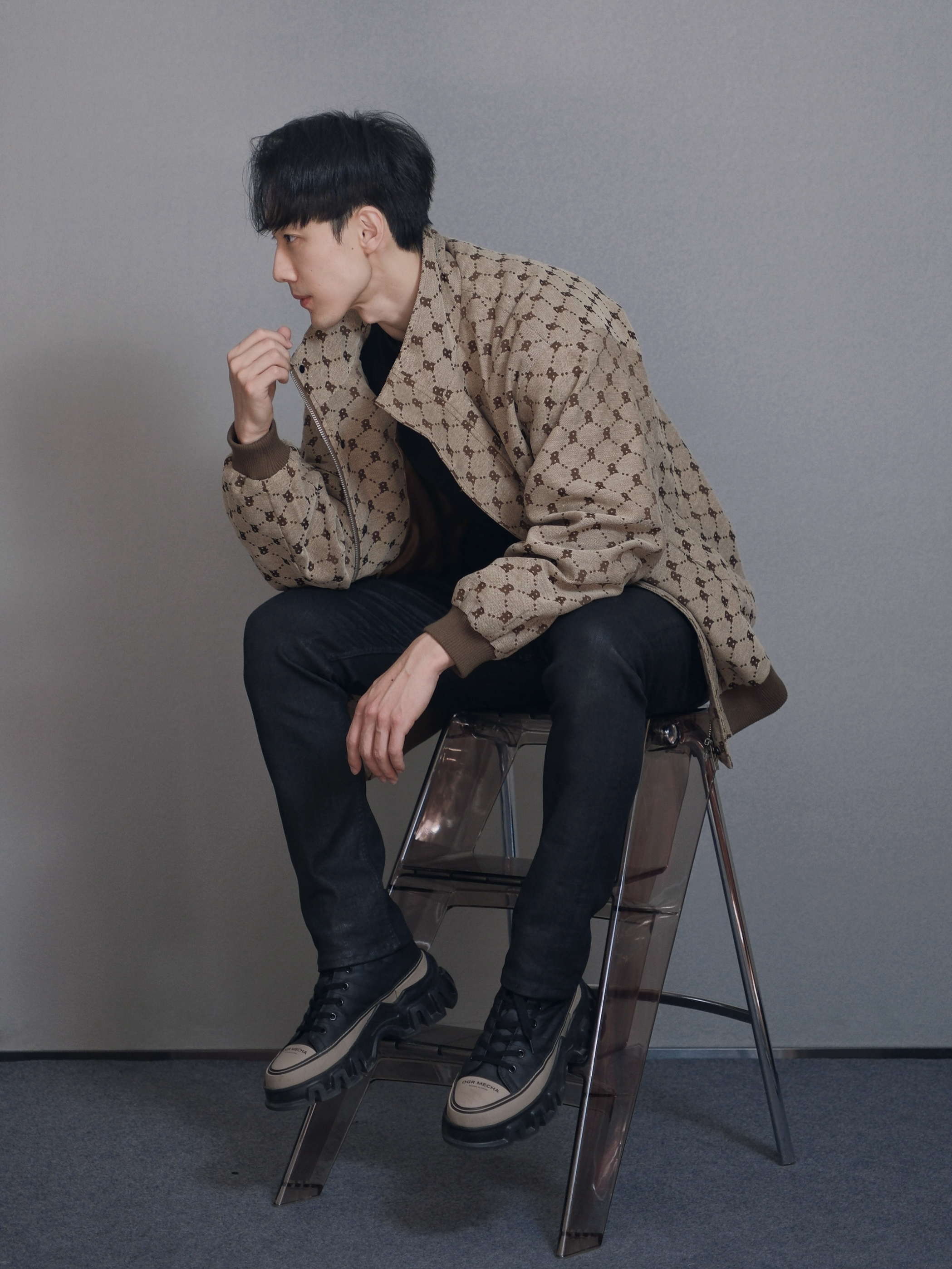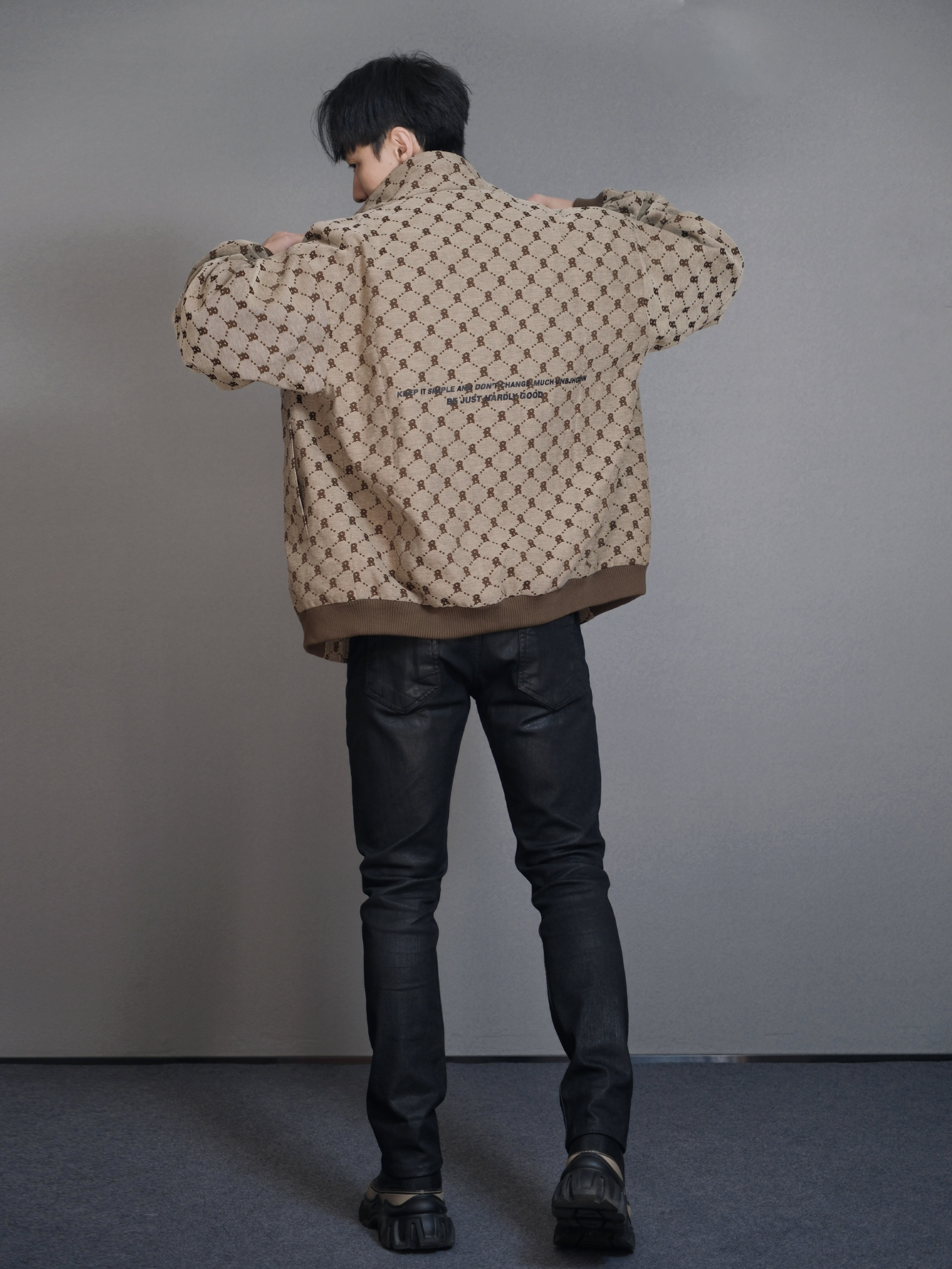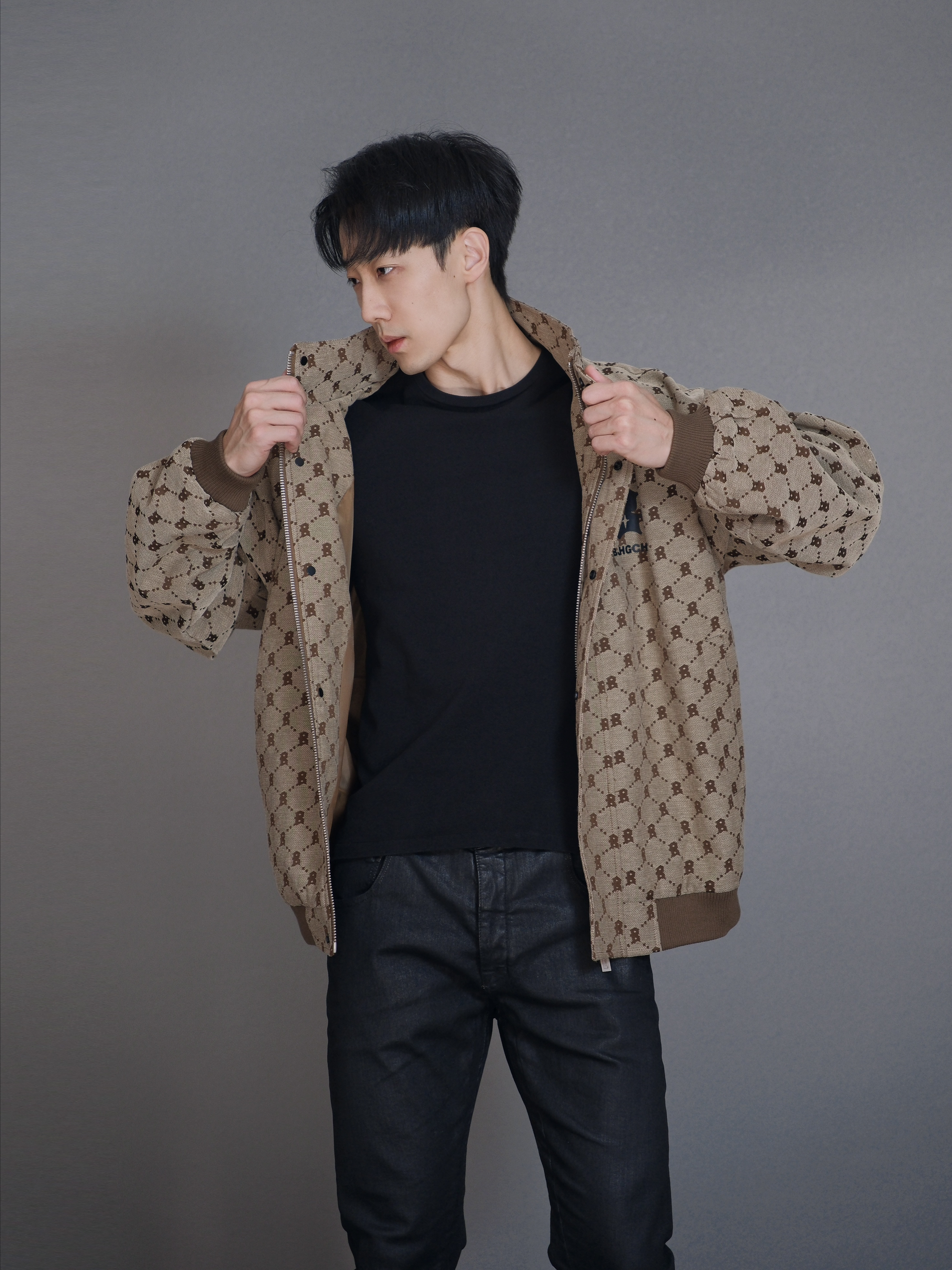 哈喽 小叔又来喽🙋🏻 今天的风格有点复古,同时也极具时尚元素,一身黑外搭老花夹克,效果棒棒的👍 搭配心得:因为老花夹克属性比较突出,所以内搭和裤子我选择纯黑整体,看上去人的比例会更好,同时还不会喧宾夺主,鞋子上的🏾色跟夹克呼应,但不会跳脱出整体的配色。
