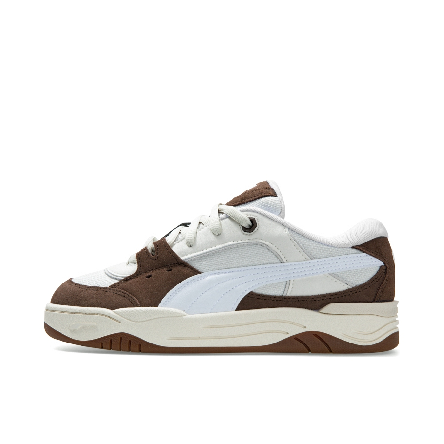 此次puma 的 是以 咖色 组合白色为主体 牛剖层革的翻毛皮 质感不错 搭配网状织物料 清爽透气 puma 白色logo则是 合成革规格 尺码方面 正常入手就行了 氧化白中底 搭配的 咖色 大底 防滑耐磨 价格定位也很适中 有兴趣的朋友可以入手尝试下