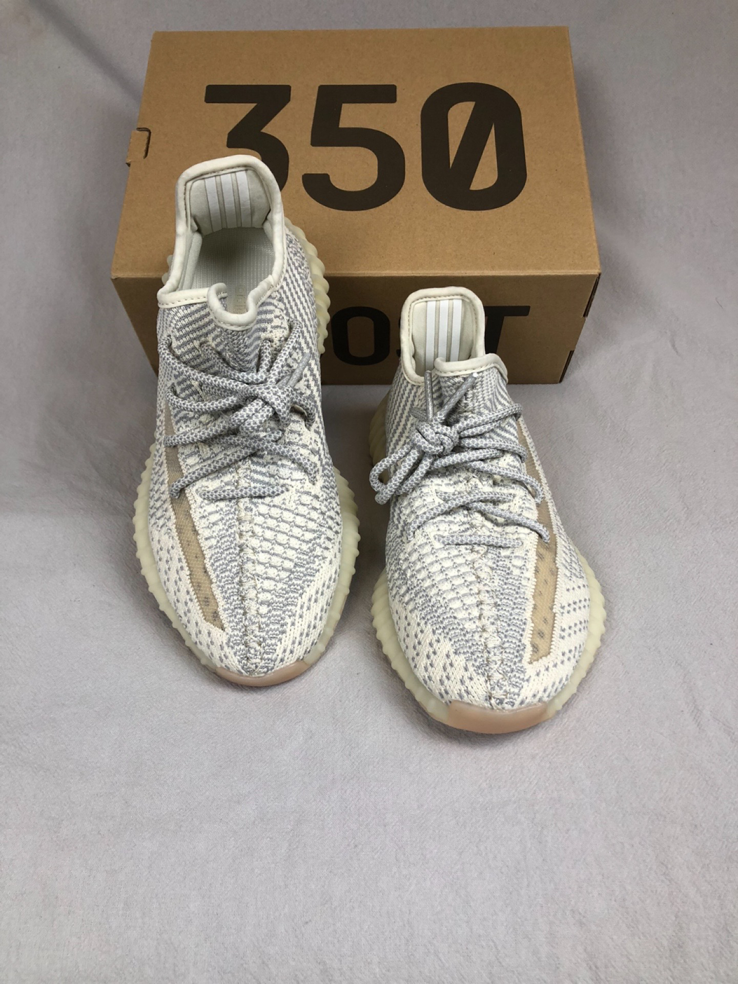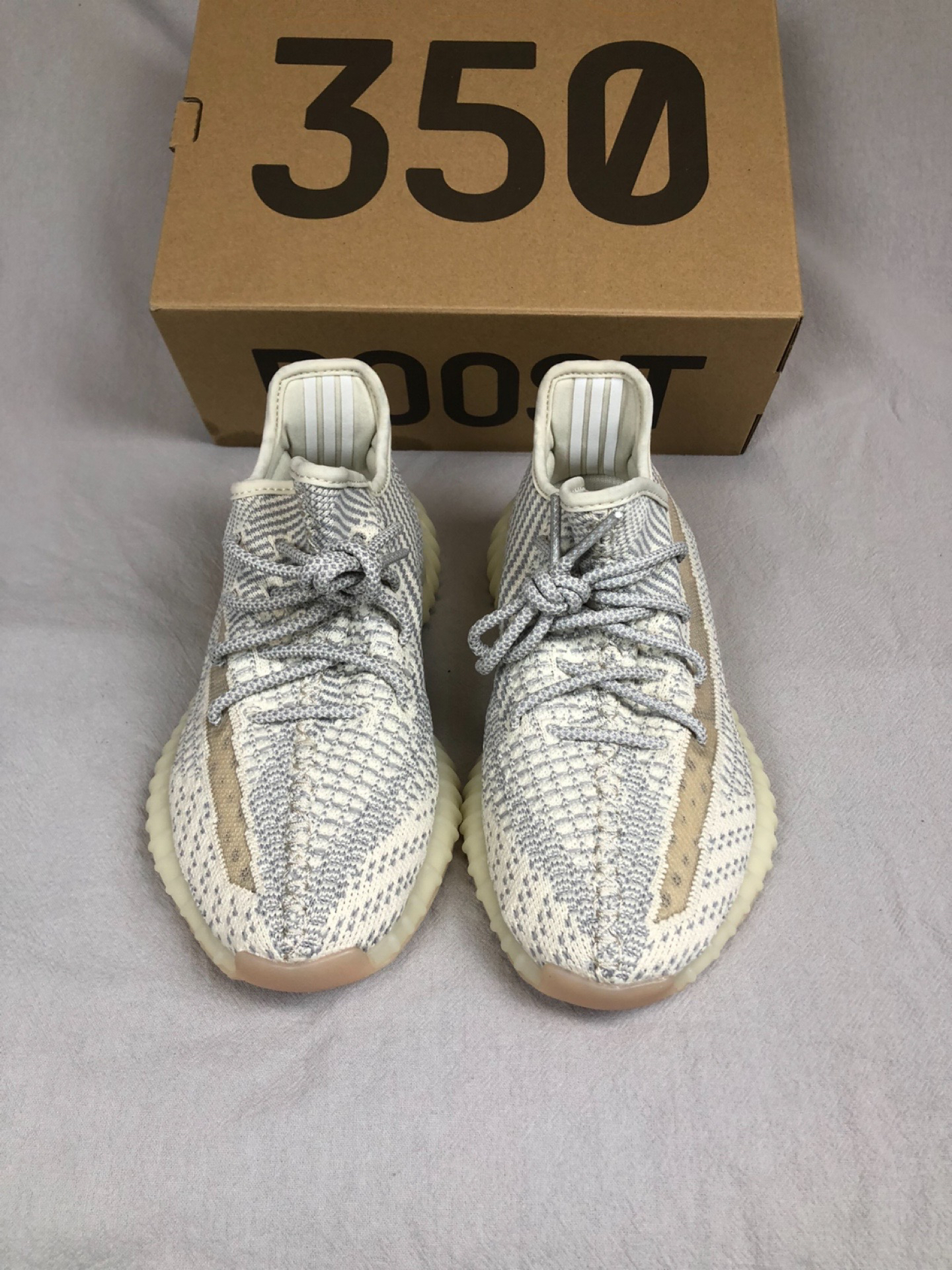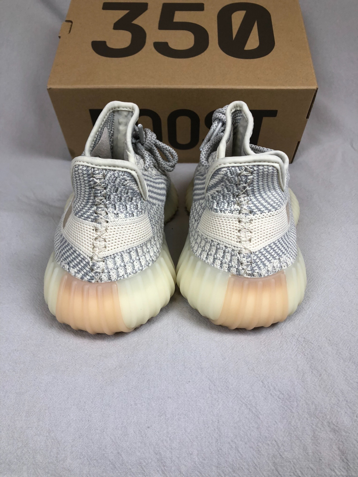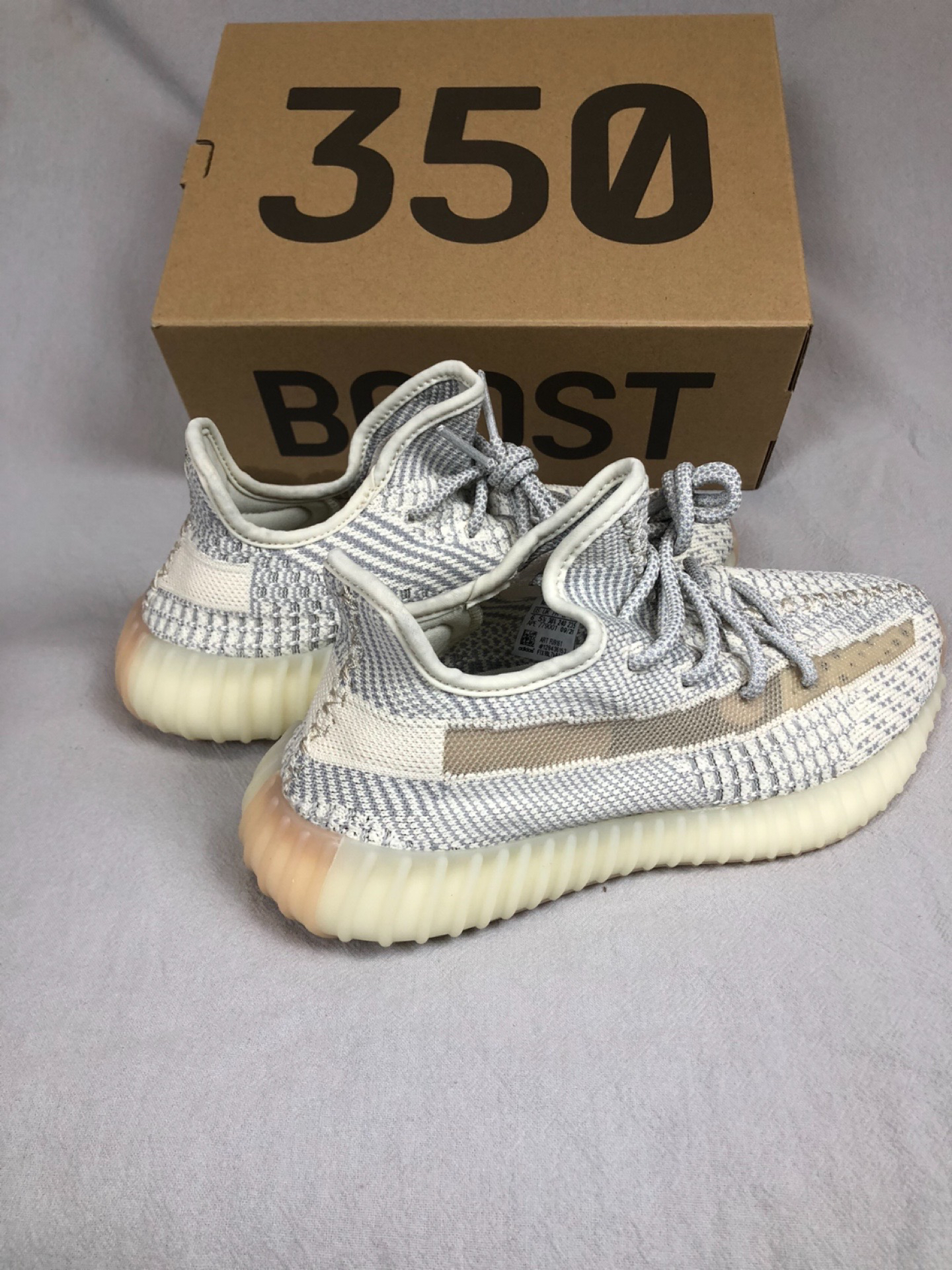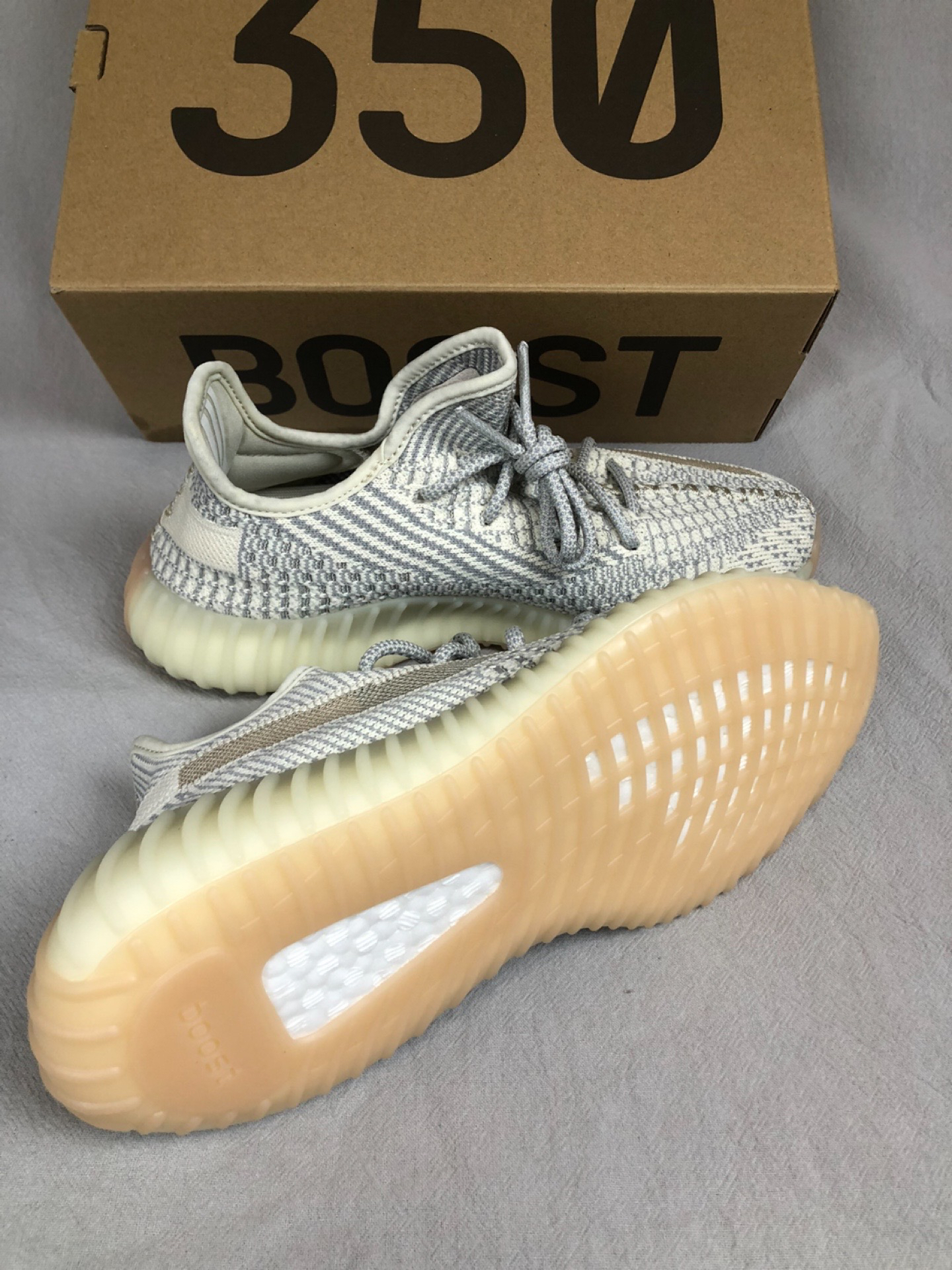 这款芝麻白美限天使真的好百搭呀! 整体采用灰色搭配燕麦黄打造,鞋面采用编织技术打造,鞋带还可以反光哟,大底采用Boost打造,脚感舒适,上脚百搭好看,怎么搭都好看。