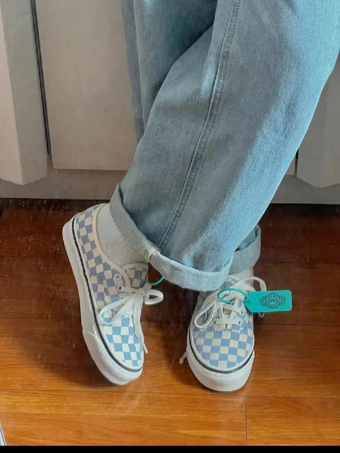 我永远沉迷于万斯的奶蓝配色! 海盐奶味冰淇淋配色vans蓝白棋盘格 心动就在一瞬间 远远就一眼看中的款 迫不及待要过夏天啦OVans 👟:Vans Authentic 44 Dx棋盘格 奶蓝色