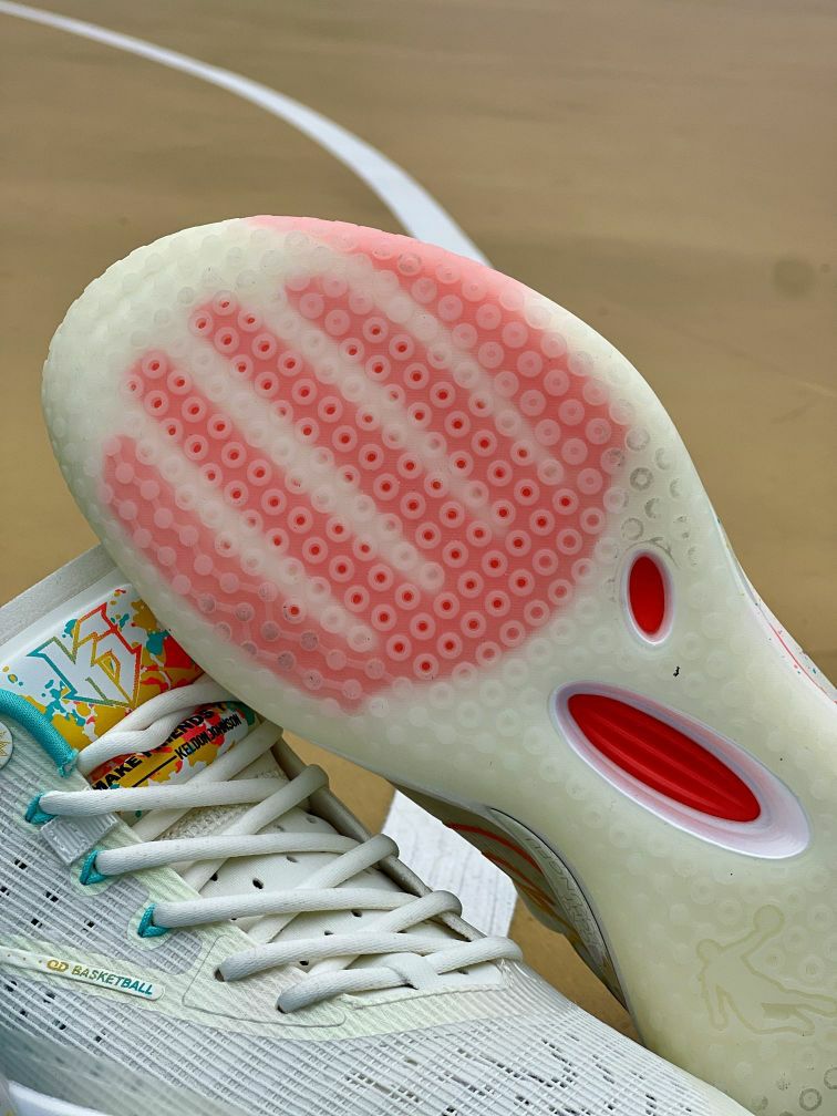在锋刺6PRO专为速度型球员打造的基础上,推出为速度爆发型球员设计的全新产品锋刺RISE; 先说说这个巭立方中底材料系统,简单来说,就是在不同位置搭载不同科技,为上脚者带来更好的实战体验感; 鞋身很轻,刚拿到这双鞋快递的时候,我一度怀疑里面没有装东西; 鞋面透气性能做得不错,复合工程网纱设计,透气和防护强度都有; 防滑、耐磨性能非常好,用得是颗粒化纹路大底; 最让我想重点提一下的是,中乔...