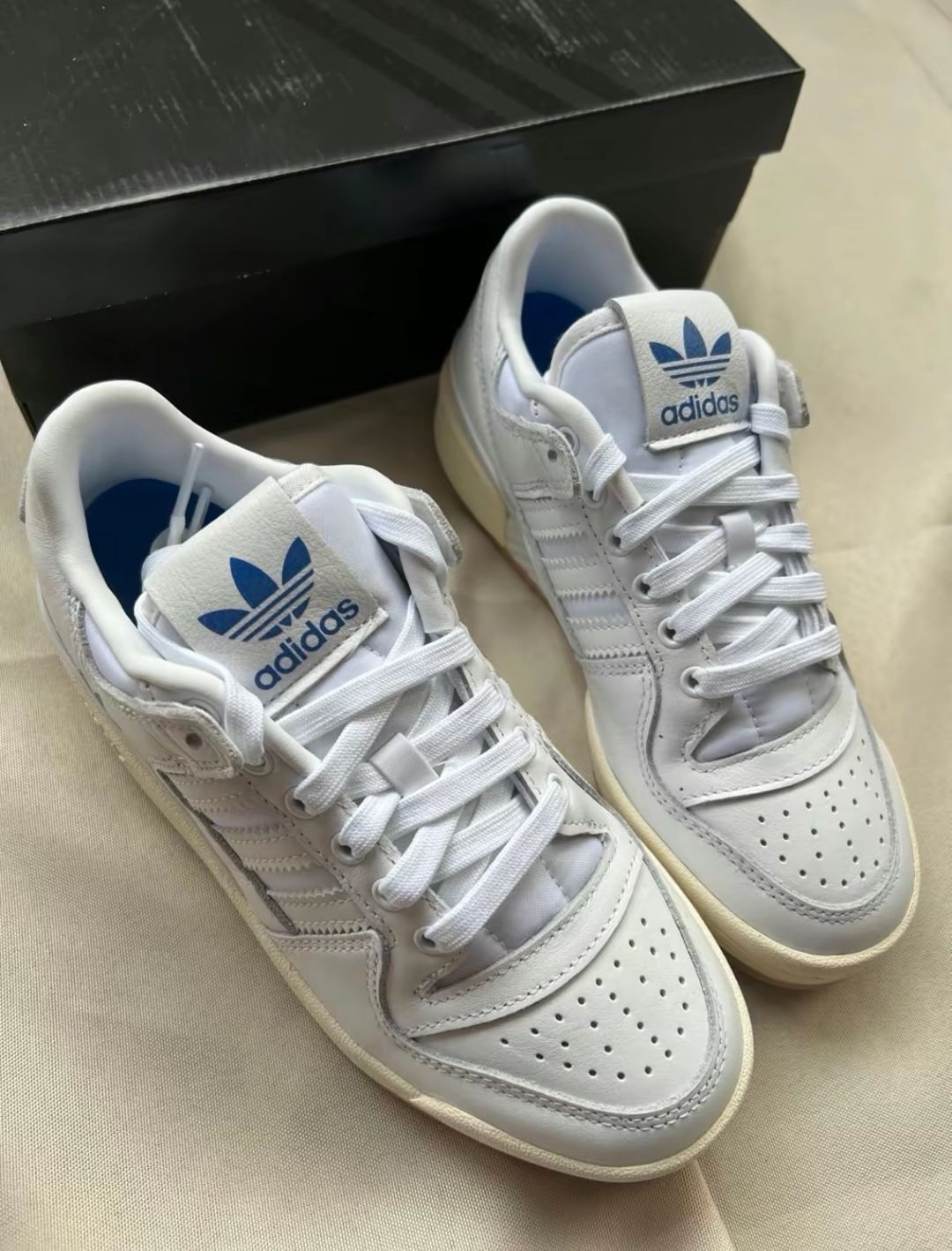 本篇笔记关联了adidas Originals Forum 板鞋 轻便复古防滑时尚魔术贴篮球风 白色/蓝色/米黄色等商品,为用户提供真实的使用体验和购买参考。