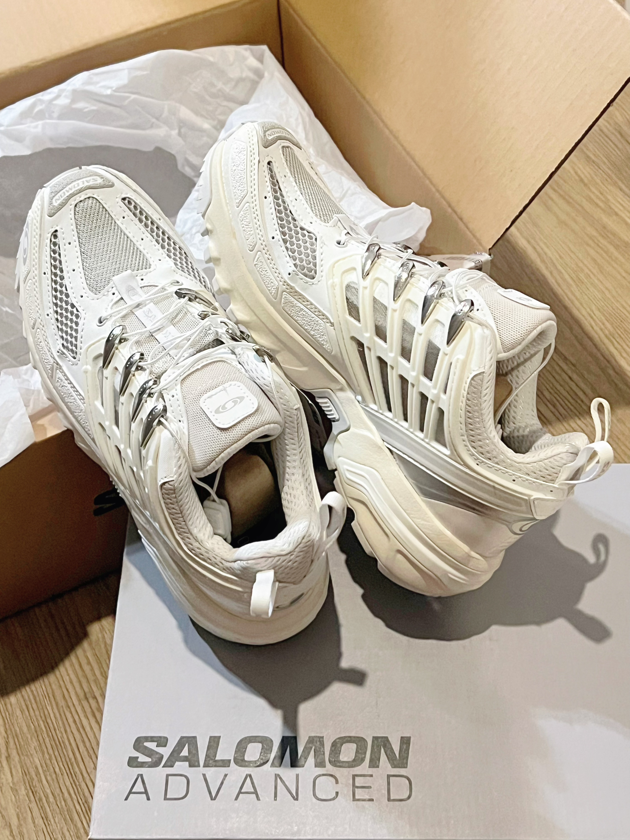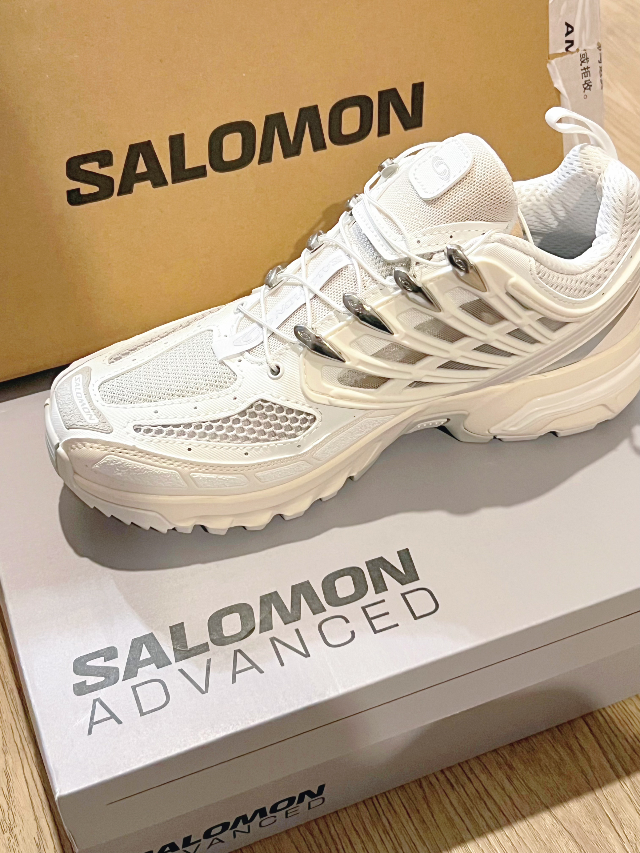 奈何蹲不到银色 第一双SALOMON入了 ACS PRO ADVANCED 纯白 很干净清爽的配色,可甜可酷 最近天气变热了刚好可以穿