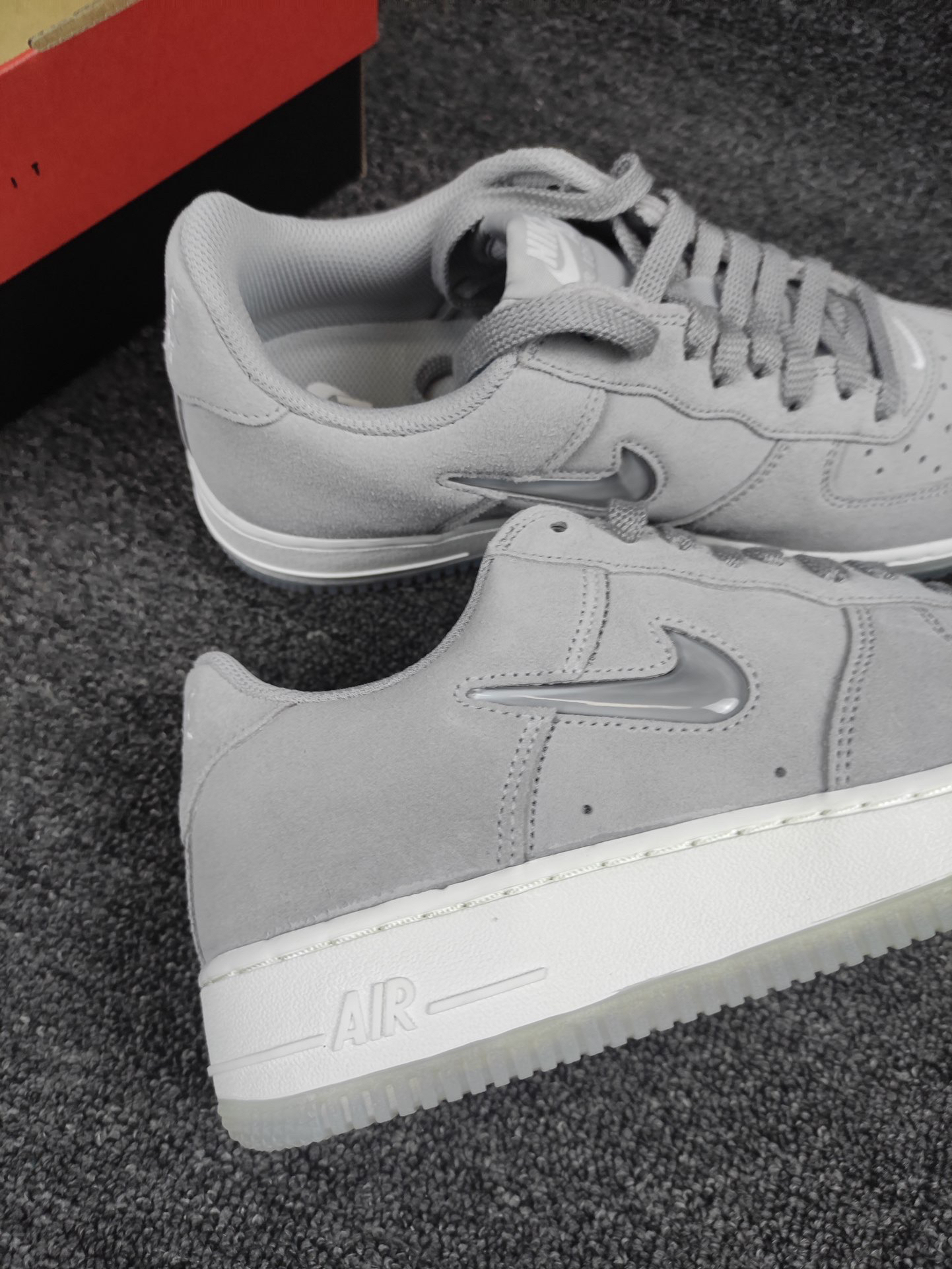 这双AF1不仅配色百搭而且质感出色。 大面积的灰色麂皮打造,搭配鞋身透明小Swoosh,灰色系百搭又高级,真的绝了。