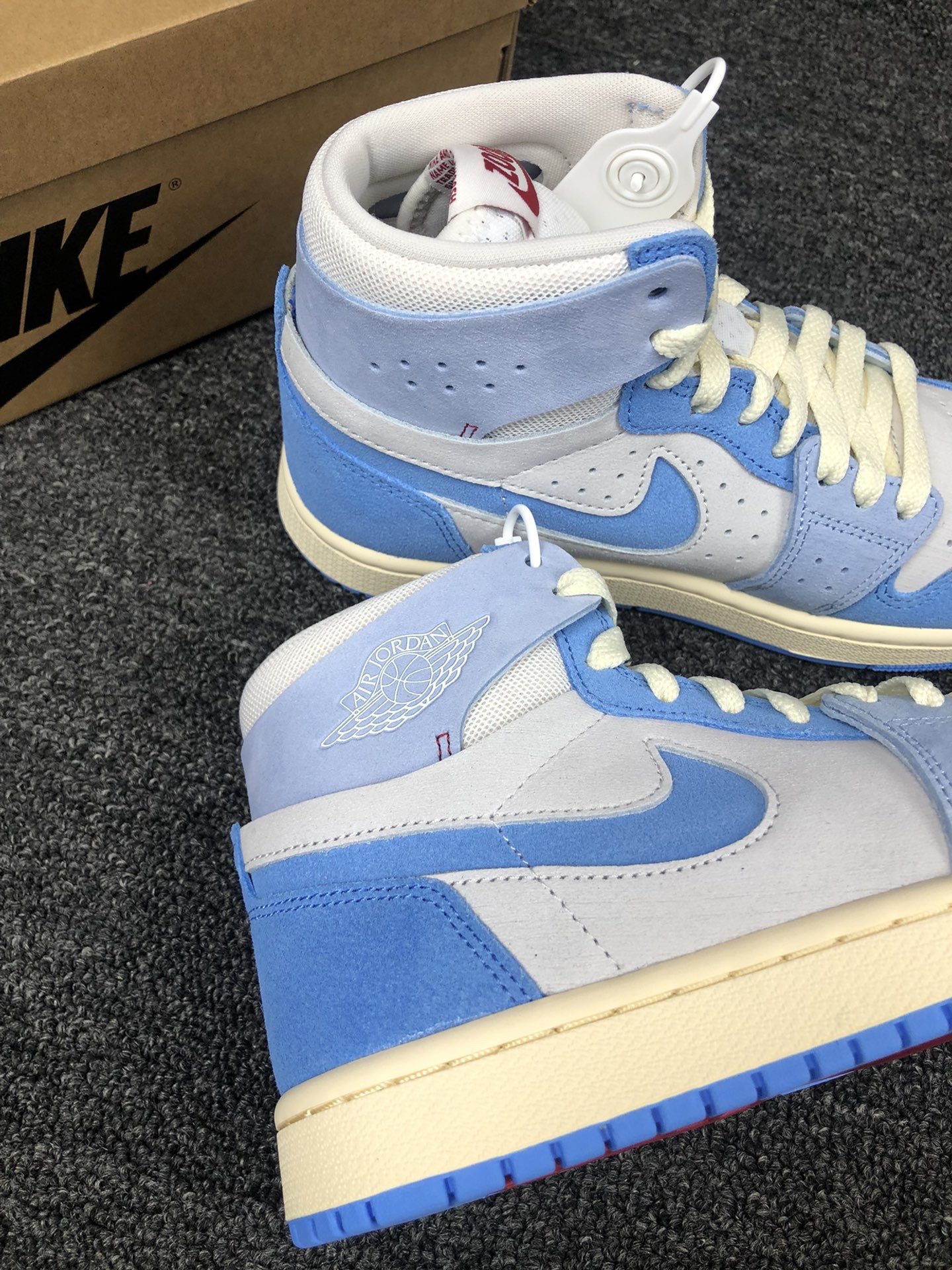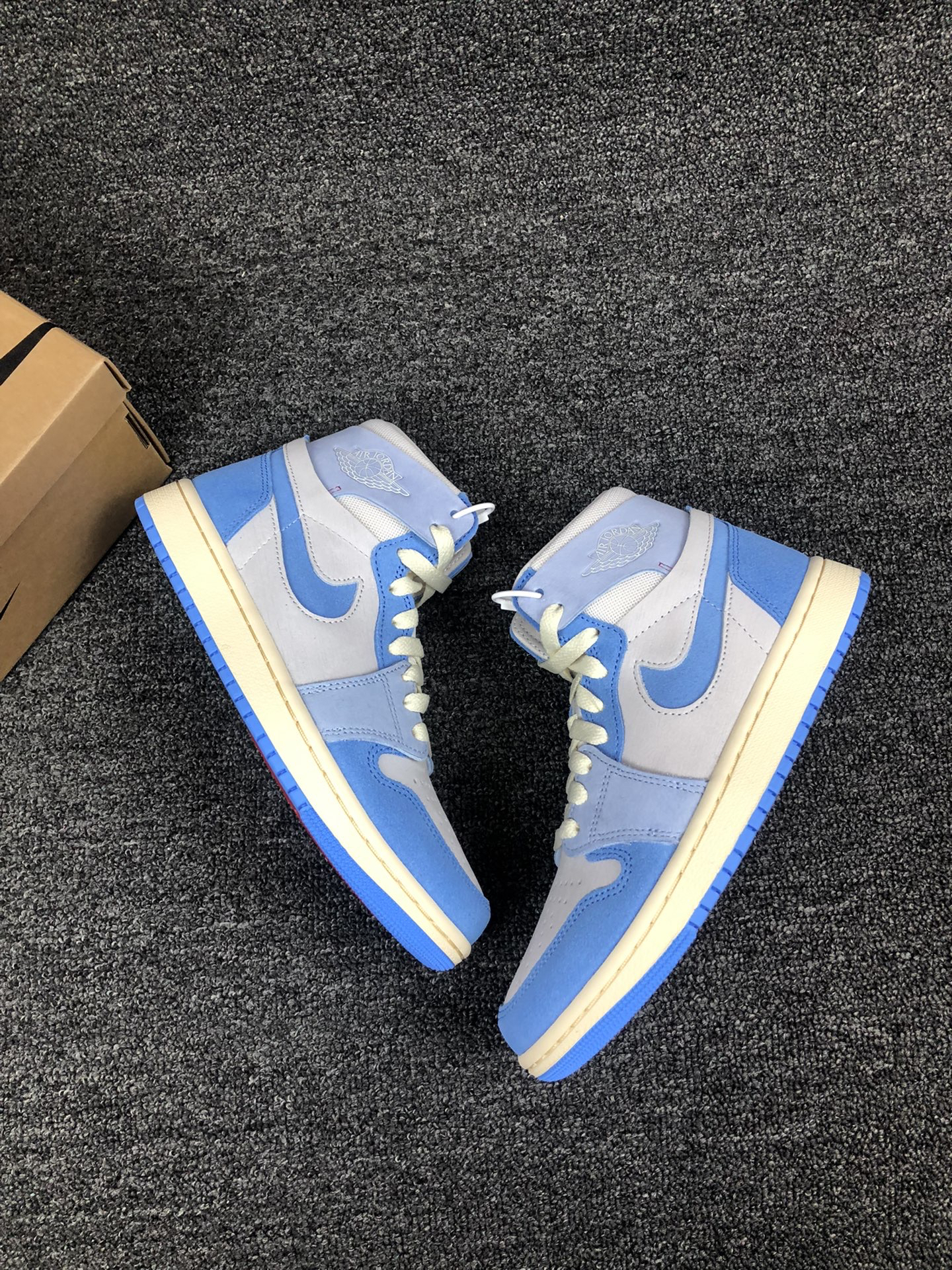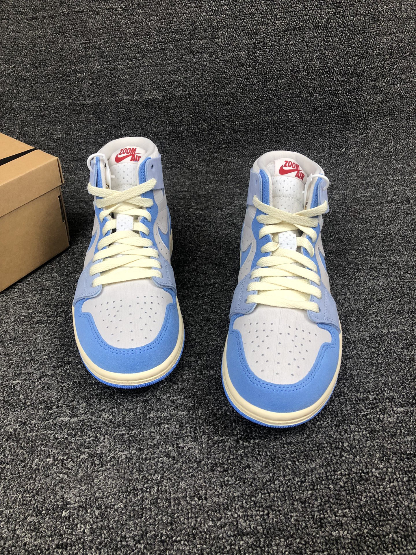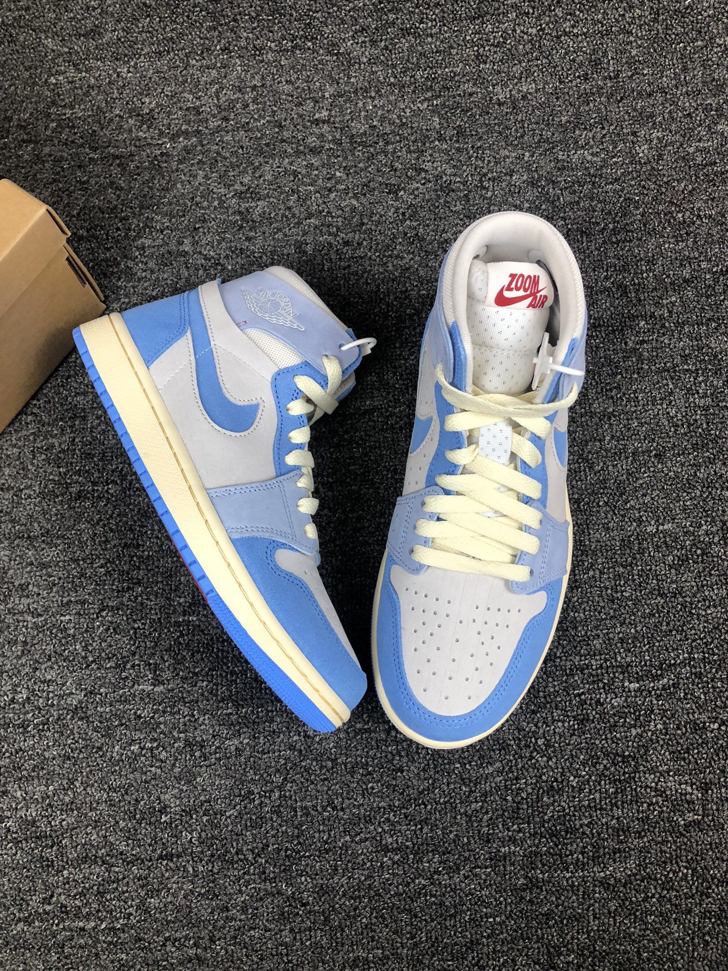 这双蓝天白云配色的AJ1 Zoom颜值真的高。 灰蓝白打造,麂皮搭配网眼材质打造,内置Zoom,颜值在线,脚感在线,配色很适合开春。
