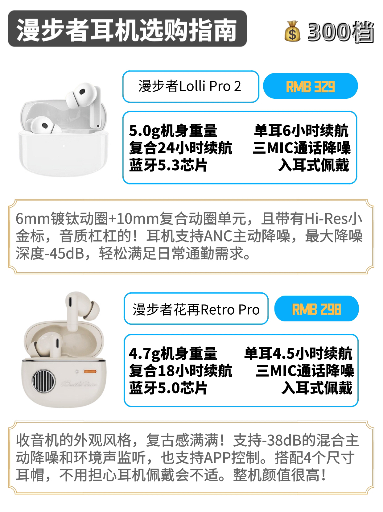 之前给大家推荐过一些漫步者的蓝牙耳机,看大家的喜爱程度还挺高的,今天就做一期漫步者品牌耳机的合集,分享六款100-300价位性价比比较高的真无线蓝牙耳机~ - 漫步者作为国产专业的音频品牌,旗下有很多系列,比如主打性价比和高颜值的「漫步者花再」系列、主打电竞的「漫步者HECATE」系列、主打高端的「漫步者NeoBuds」系列等等。 - 今天选出的以下六款蓝牙耳机主打的是性价比与高颜值,可以参考下~...