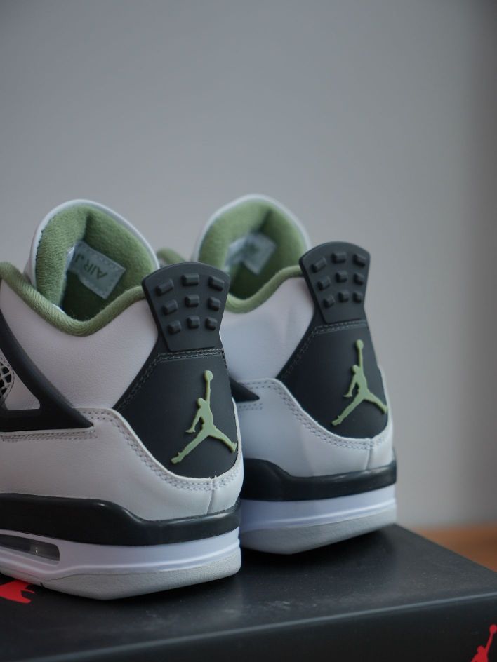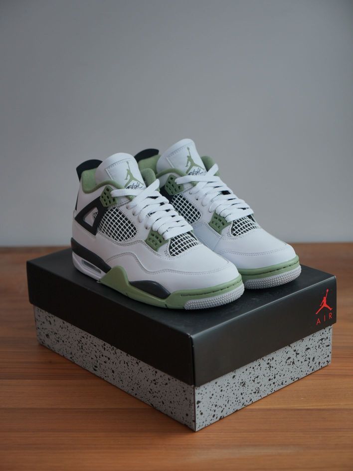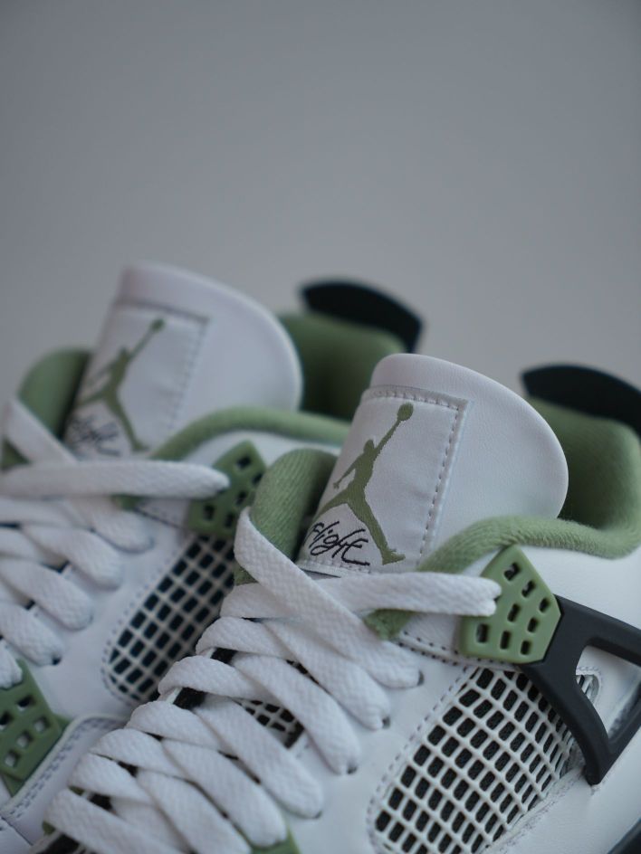 说是鼠尾草配色,但我个人觉得更像牛油果! 在最早谍照爆出来的时候就已经被这个颜值吸引! aj4经典鞋型,配上大面积的白和少量 绿黑的点缀!让这双的可搭性,层次感更加强烈! 刚好配上春天,清新简约! 开春必备这款! 反正我入手了!