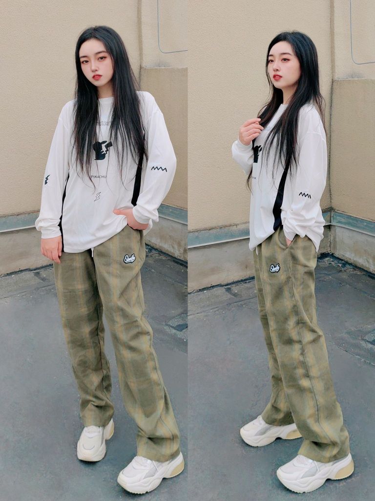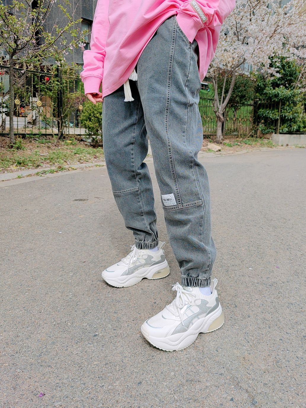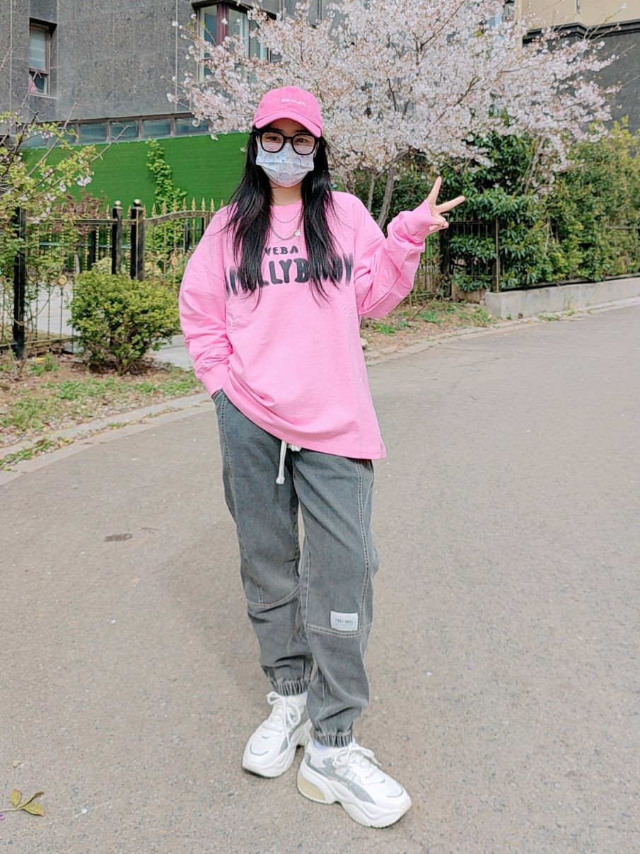 🌞160cm/46kg/L码 ↓ 跳舞不够好💃🏻也可以穿搭来凑呀! 分享❤️今日搭配思路: 上面选不带束边的圆领卫衣, 下面搭配宽松束脚牛仔裤👖, 松垮一点👌🏻然后长度在裤脚可以堆叠, 看起来就会比较hippop~ 这条裤子我觉得还挺带感的哈, ⭕黑灰色L码, 穿着酷酷的😎而且腿粗腿弯都看不出来, 嘻嘻街舞女孩加分~