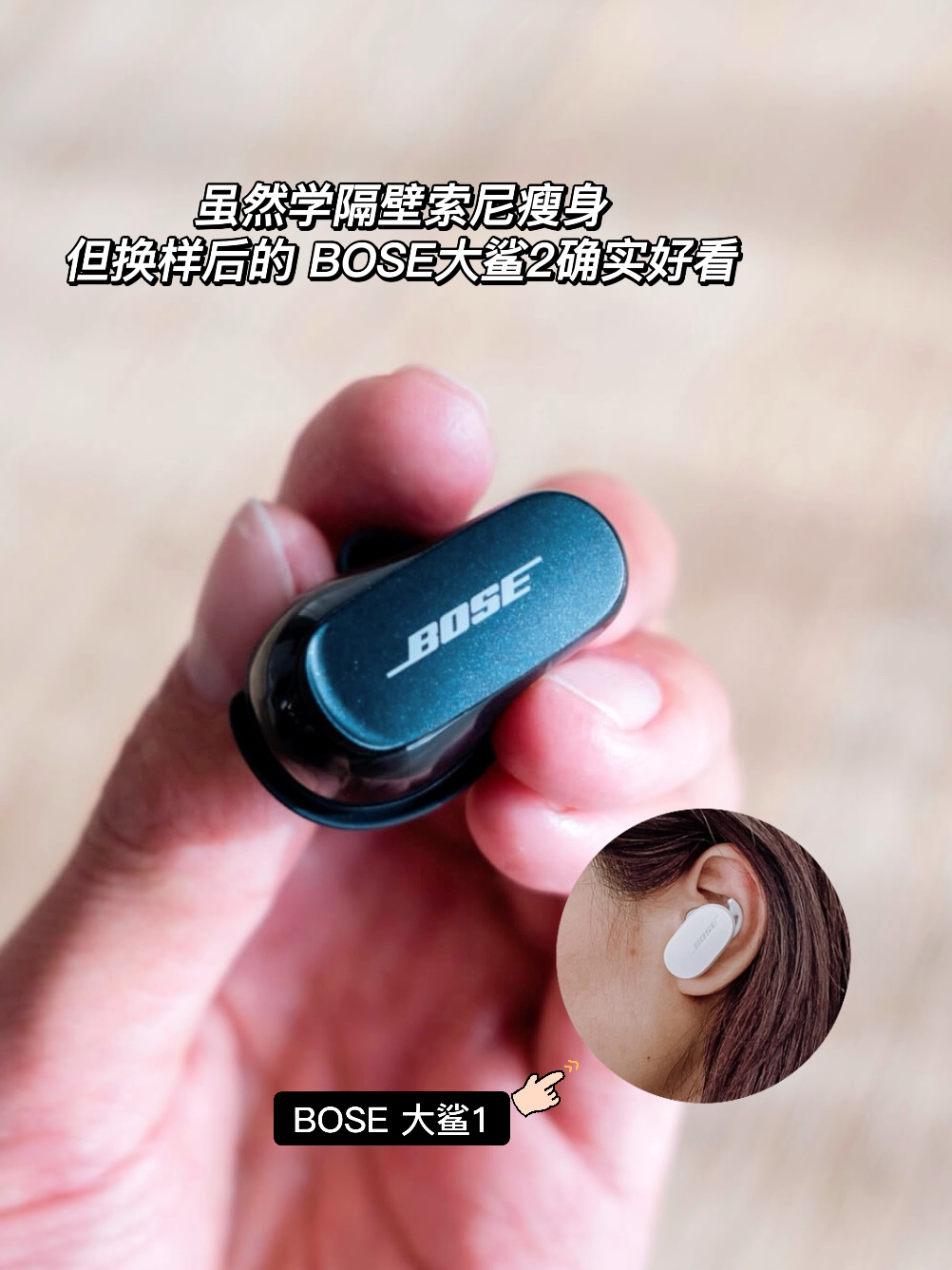 看到HXD的BOSE大鲨2后心里咯噔一下 😅“BOSE你向索尼致敬的气息太浓厚了吧” BOSE大鲨1和索尼WF-1000XM3 一样的大只一样的沉 索尼WF-1000XM4换造型后 BOSE大鲨2也跟着换 . 🌟但讲真,对比大鲨1,BOSE大鲨2不但变瘦也超轻了 再也不用塞着2颗石头在路上🚶😂 👂几乎没有负重感,耳机有稳固环支撑固定 贴合耳形,不用担心被碰撞后耳机掉落 实际佩戴舒适感还行 . 🌟...