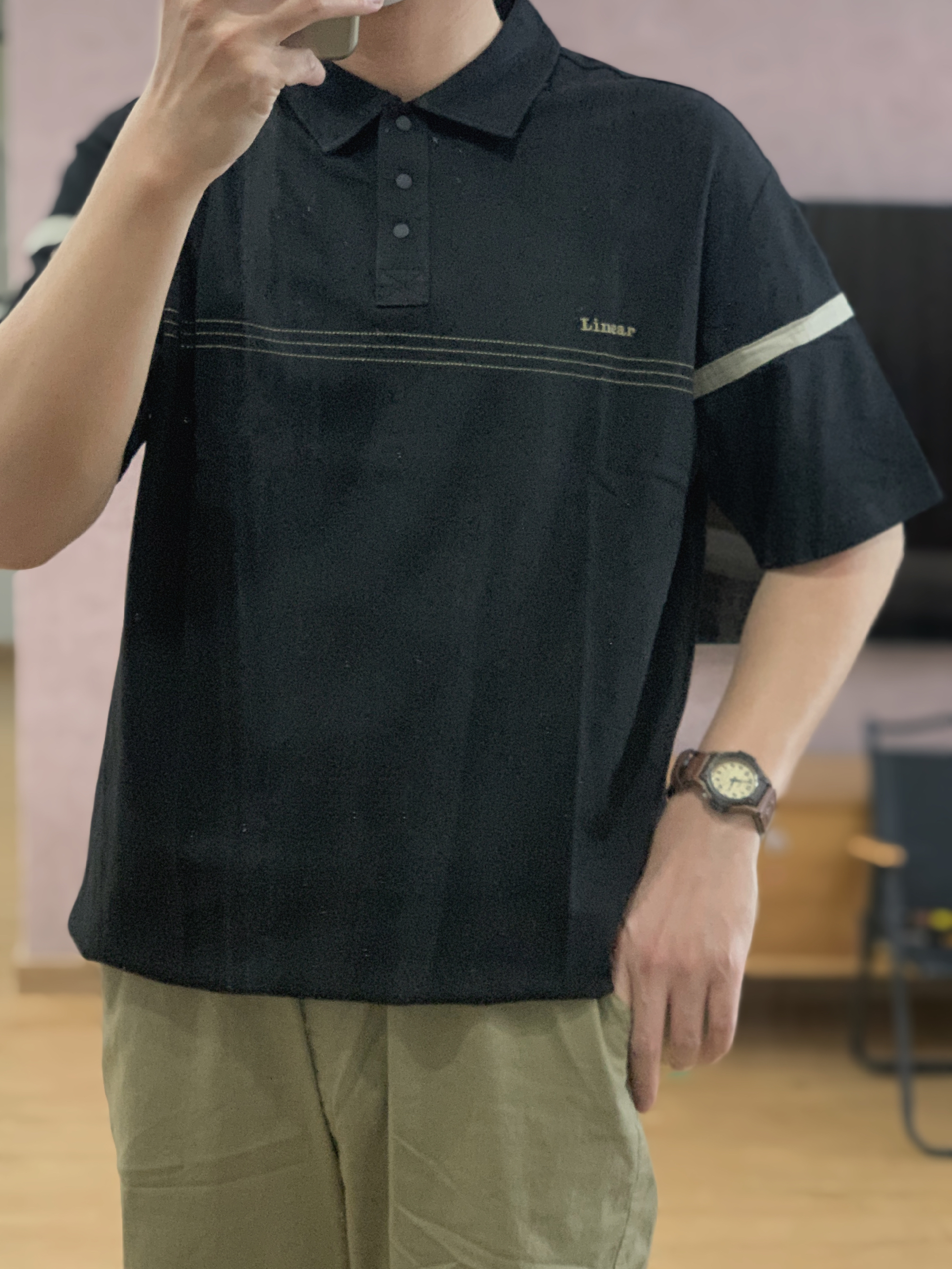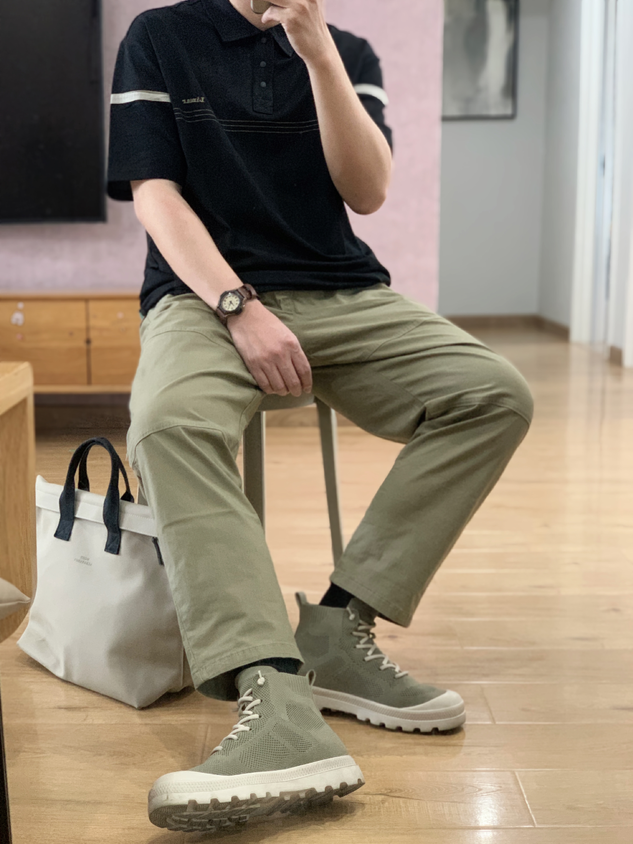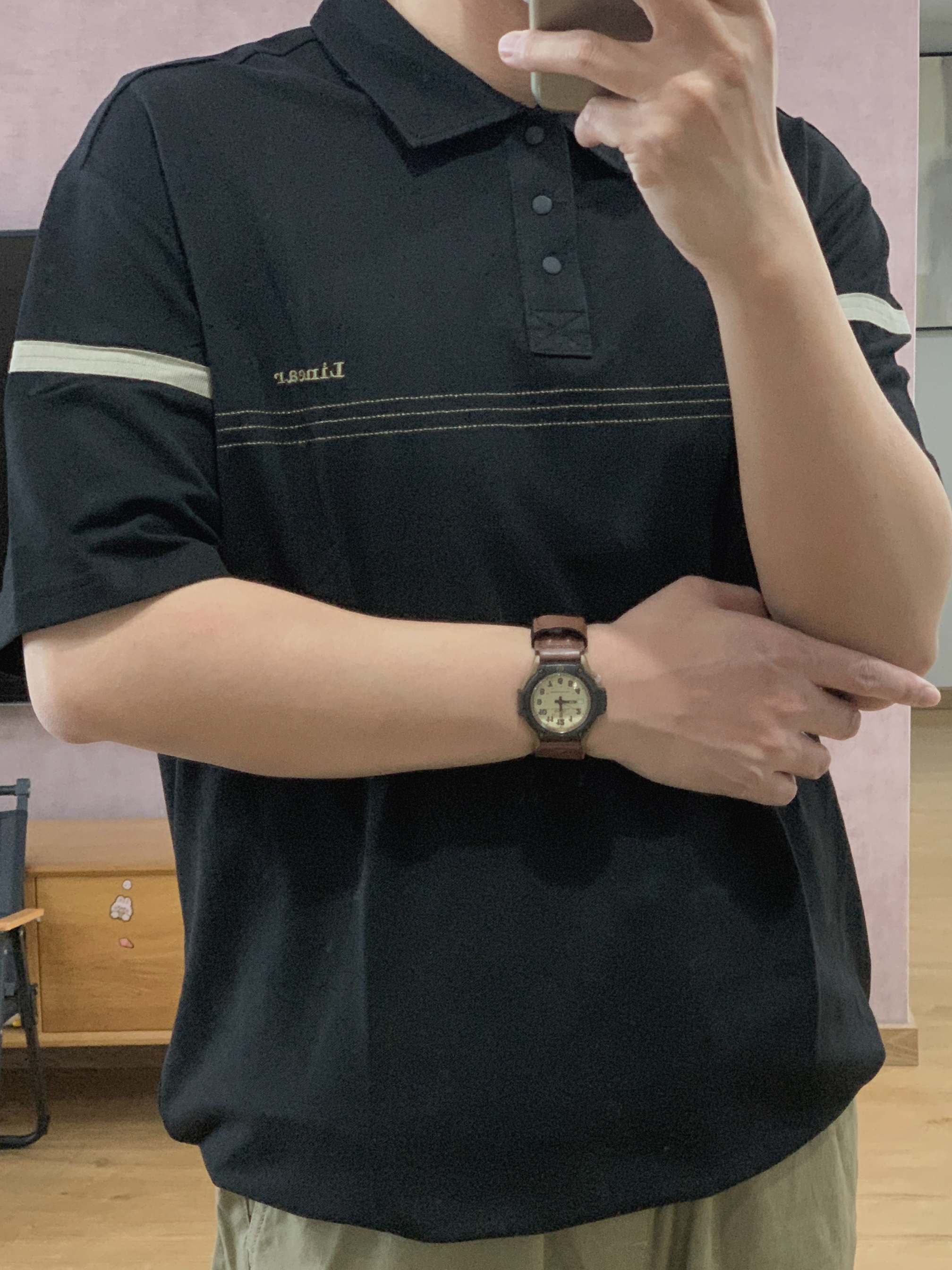 😘hey 这里是每天记录穿搭的社畜日记 📏合身版型的polo衫 微锥的休闲裤更加利落 🎨三色穿搭:黑色+卡其+军绿 整体配色 低调内敛适合通勤 🤔穿搭巧思 卡其裤子跟军绿色的鞋子去搭配黑色polo 同时颜色也呼应了上衣拼的卡其色 手表选择相同色系的森林人 背包也是卡其色的手提包(好爱这个包) 黑色polo+卡其休闲裤+军绿袜鞋 🙏以上都是我的个人拙见,欢迎交流讨论