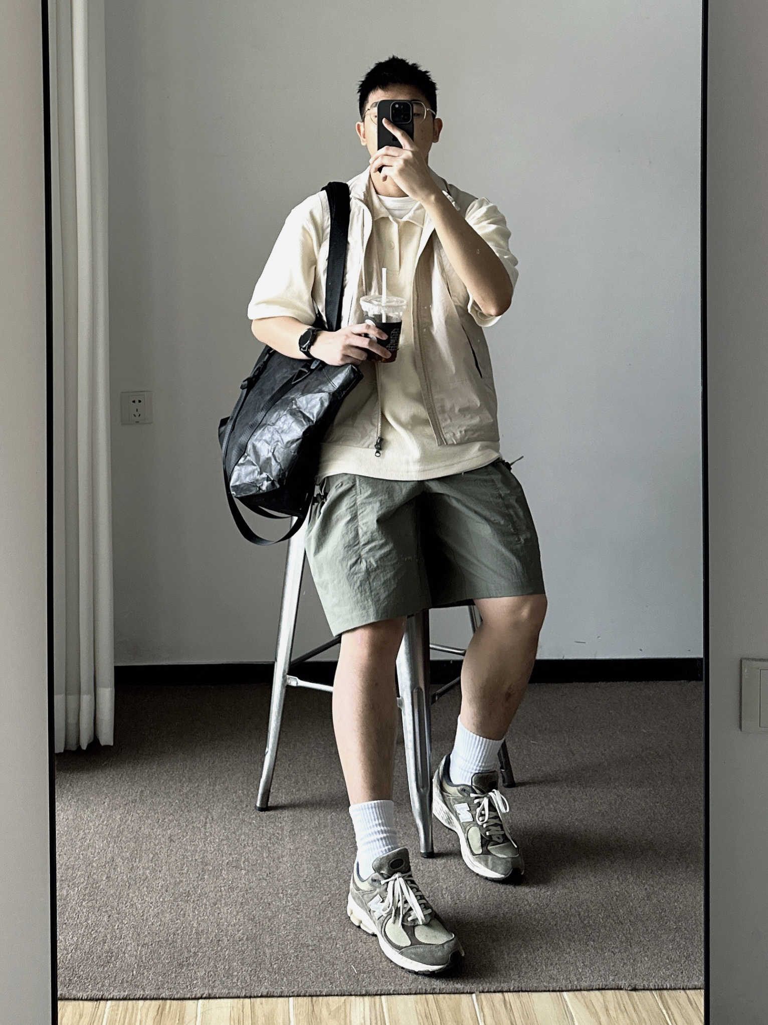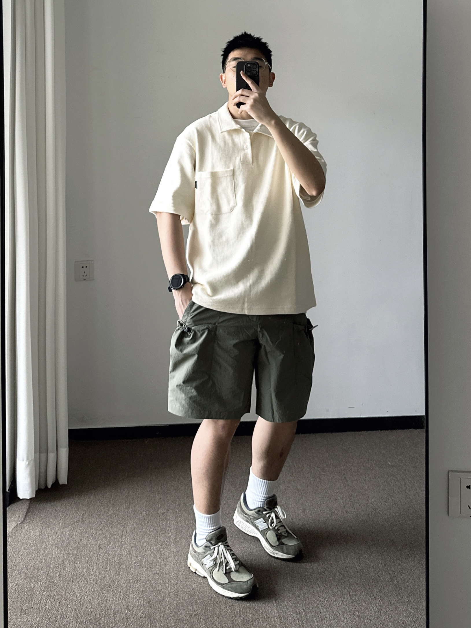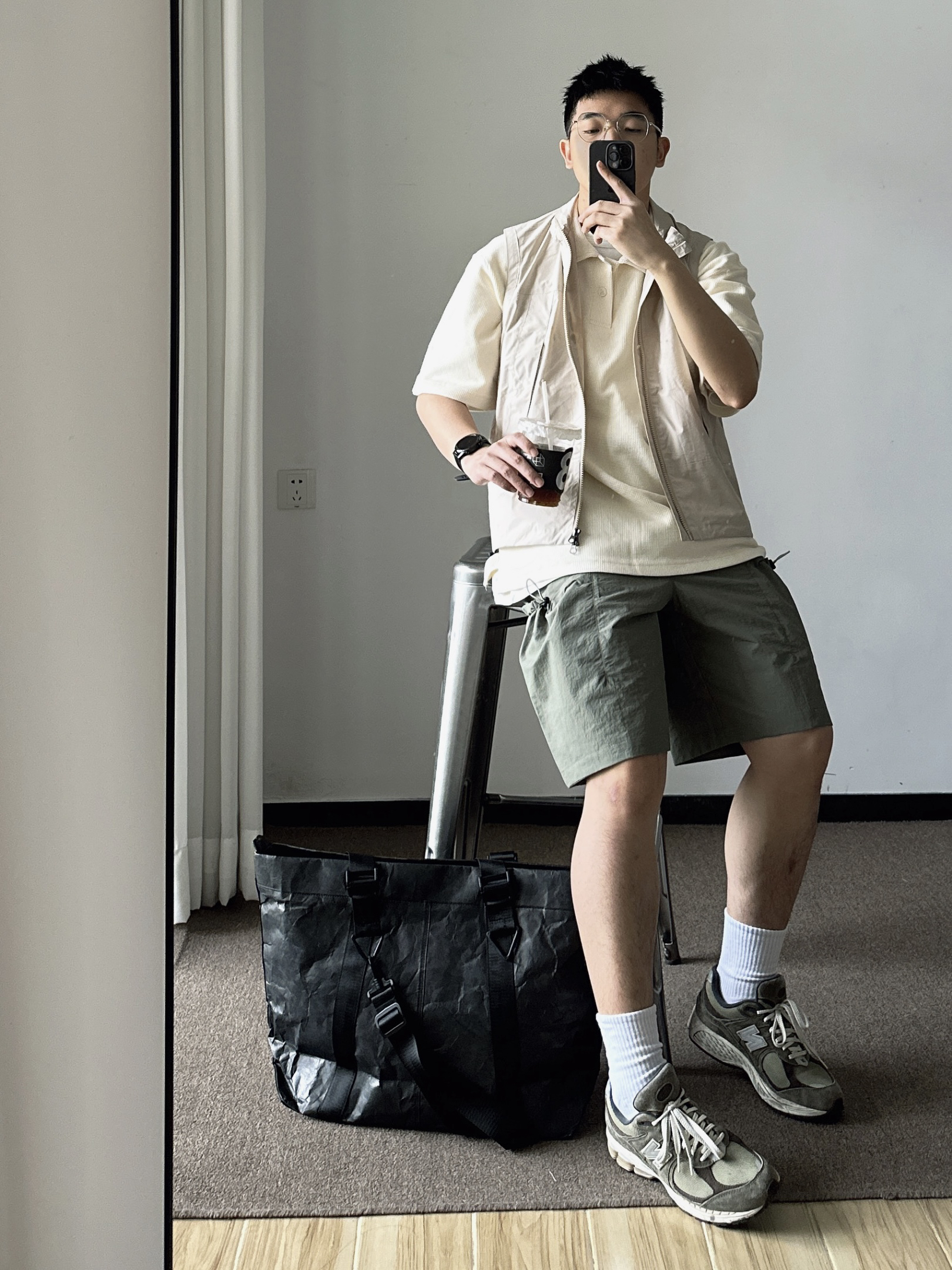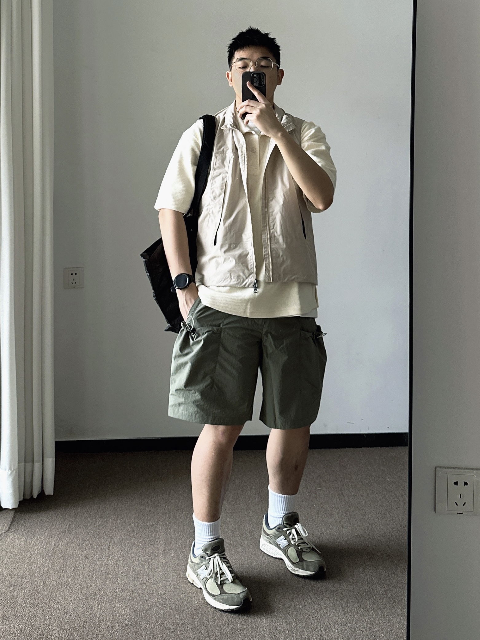 素人也能好看系列~ 174cm/65kg 🧥-奶油色叠穿,宽松的日系格纹polo,米色钓鱼背心,今天就是户外露营风。 👖- 两侧的大裤兜既有实用性也能调节裤口大小,适应不同腿围。 👟- 2002RHN 👜- 流行的大容量包包,能斜跨也能单肩,可调节肩带长度,这个点赞。收纳能力不错,应付通勤没问题。