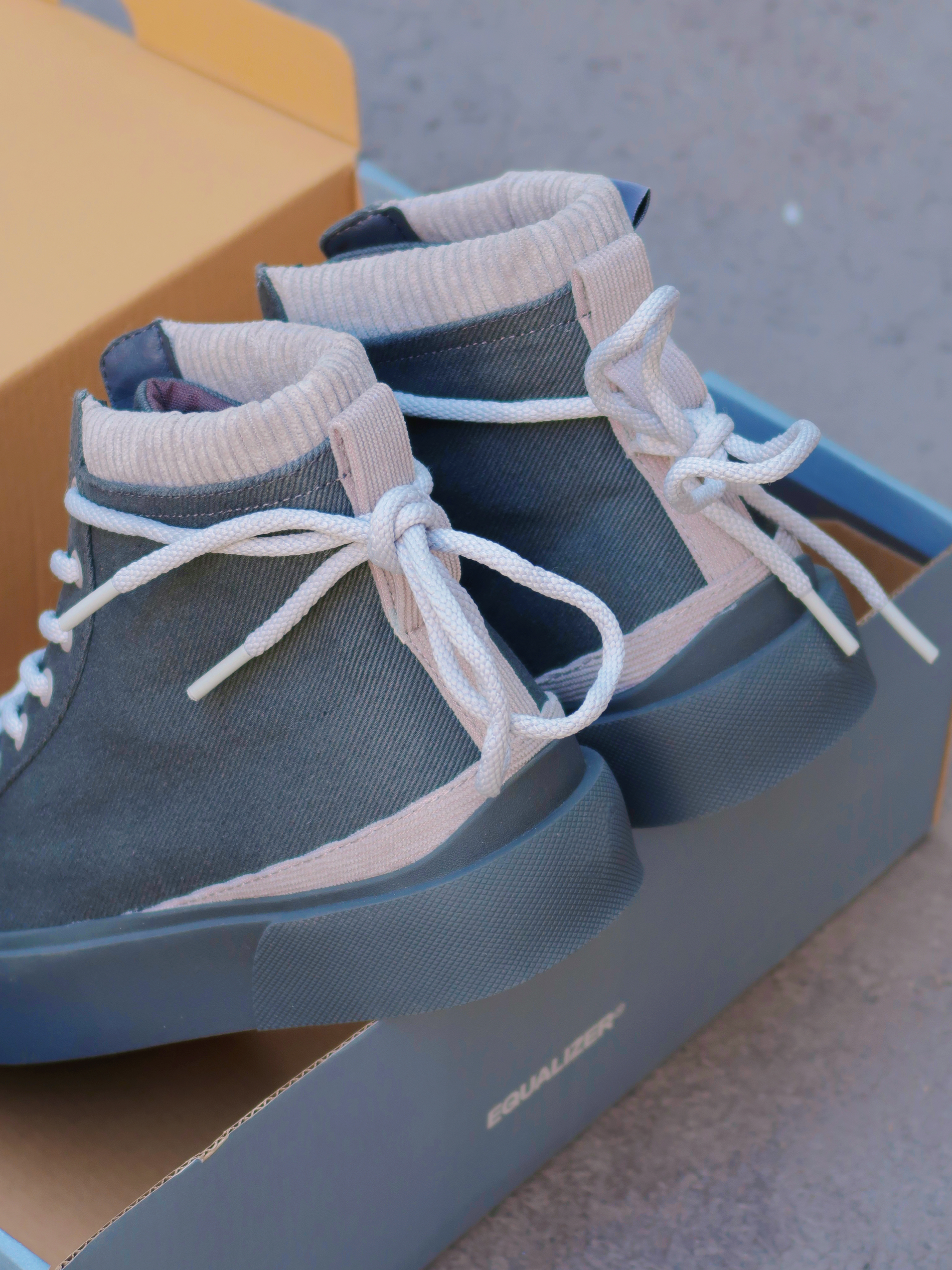 这双EQLZ高帮板鞋真的好像FOG!!! 设计感超强👍还特别的耐脏 我穿的时候特别喜欢把鞋带向后系~ 非常的个性时尚、小众又显大方✌️ 鞋身材质主要采用的是帆布材质 打理起来也还是比较方便的 上脚以后的脚感也很不错,非常的轻盈舒适✅ 穿搭方面特别适合极简复古风格 尺码方南建议选大半码或者一码👏 而且优惠真的特别大~才200左右就能入手😬