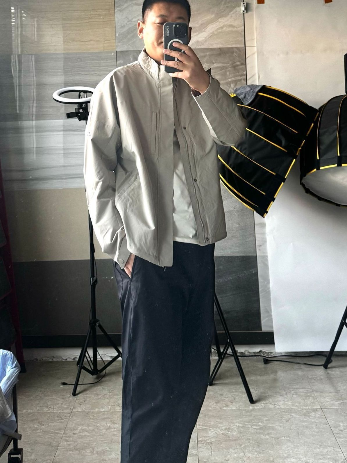 🌸今天是楼道look 心心念念的衣服回来了 今天买的春装回来了,对比当初的尺码表,我买了偏大一码 为的就是穿出这种感觉,给人一种拽姐的感觉哈哈哈哈哈 🌷衣服非常轻便透气,真的很适合现在的天气穿,衣服裁剪也很到位,下摆很宽松,真的可以买大一码 可以当短款风衣的。 (图来源于网络)