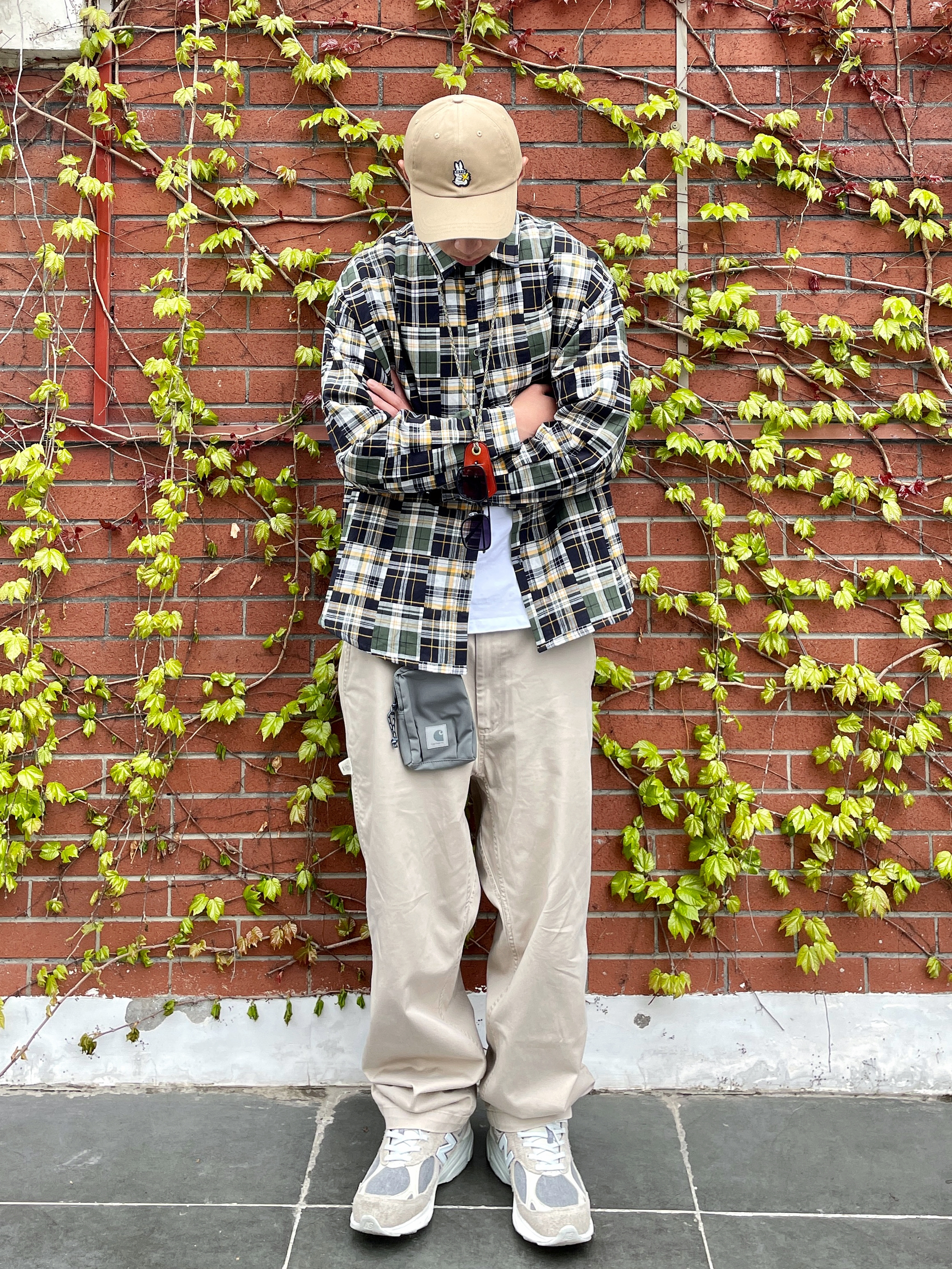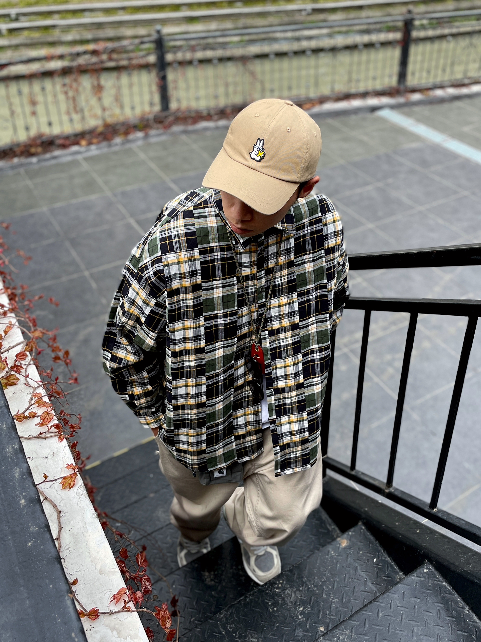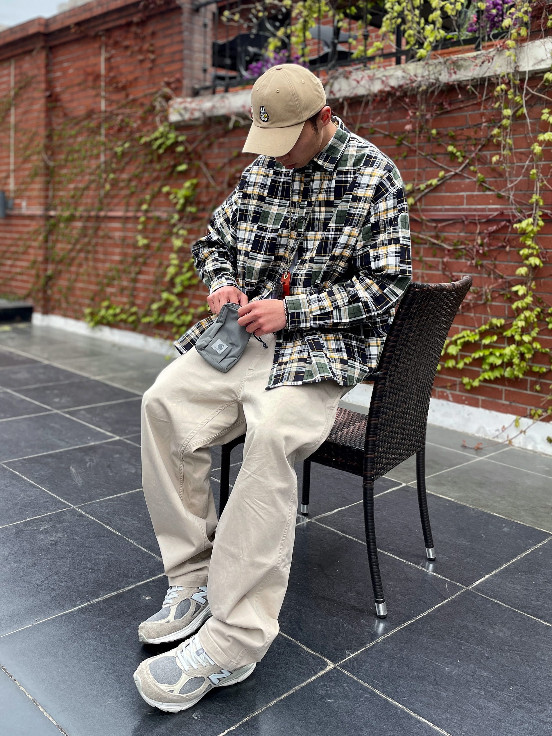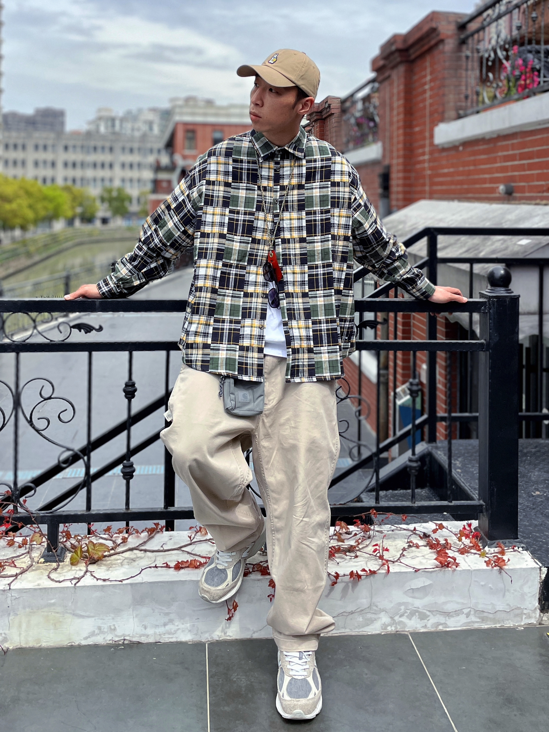🐠 182 丨 68kg 丶喜欢随性休闲的@4SuperJ 今日份开春look丶日系中的常青藤,卡其裤配百家布衬衫~春秋季穿不腻的组合,简单大方还好穿不挑人~ 下装基础休闲的浅卡其色工装裤搭配复古慢跑鞋,上衣只要选择宽松单品的话就轻松拿捏CityBoy的感~今日上衣选择了白T外搭【百家布】衬衫~复古的黄绿撞色以及百家衣的拼接元素,也太适合开春穿搭了吧~ 🔗 丨 🧢 帽子 丶 Xotic 🔗 丨...